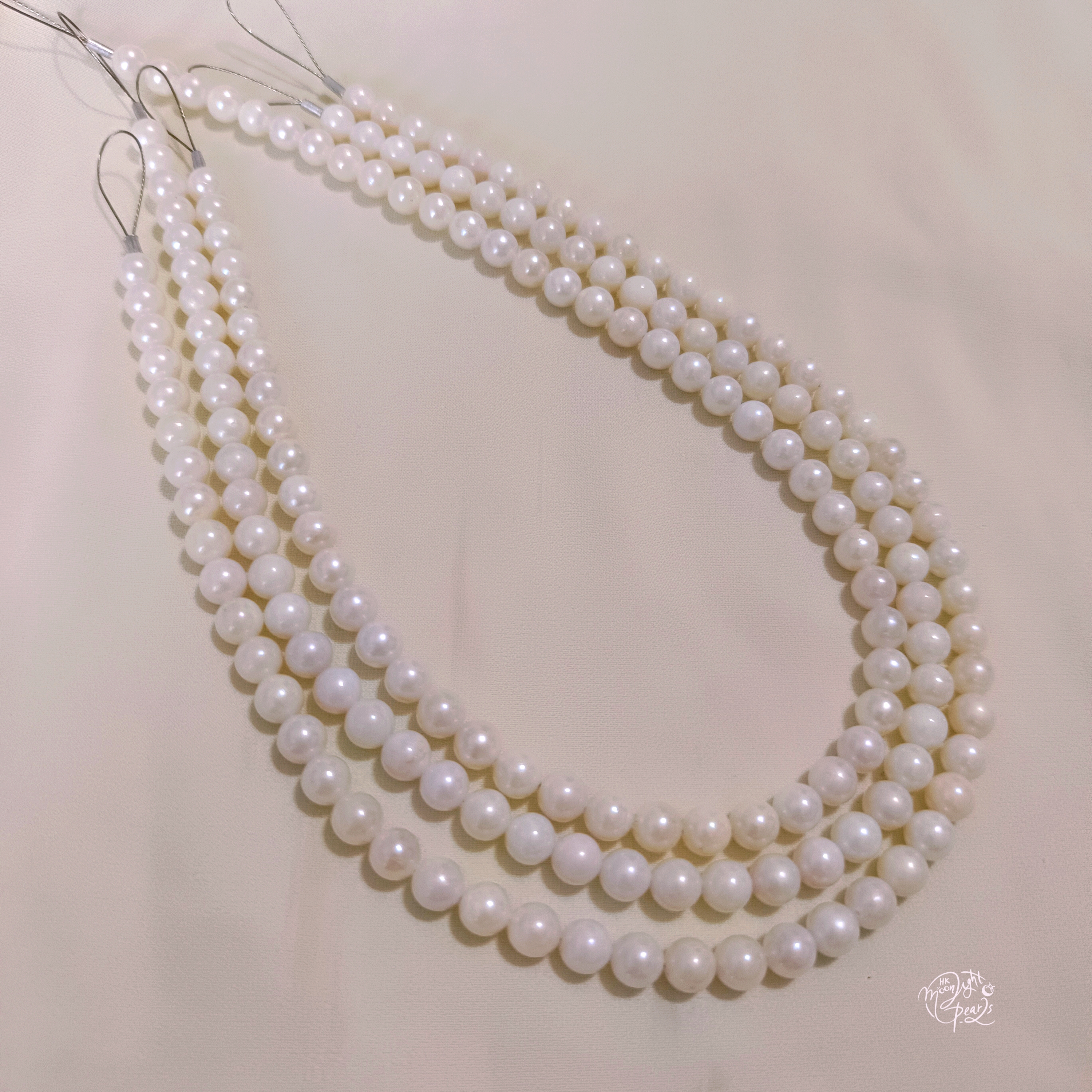 珍珠尺寸7-7.5mm 鍊長40cm 日本akoya海水珍珠,正圓珠光弱,珠層薄,基本無瑕疵,可自由DIY。
