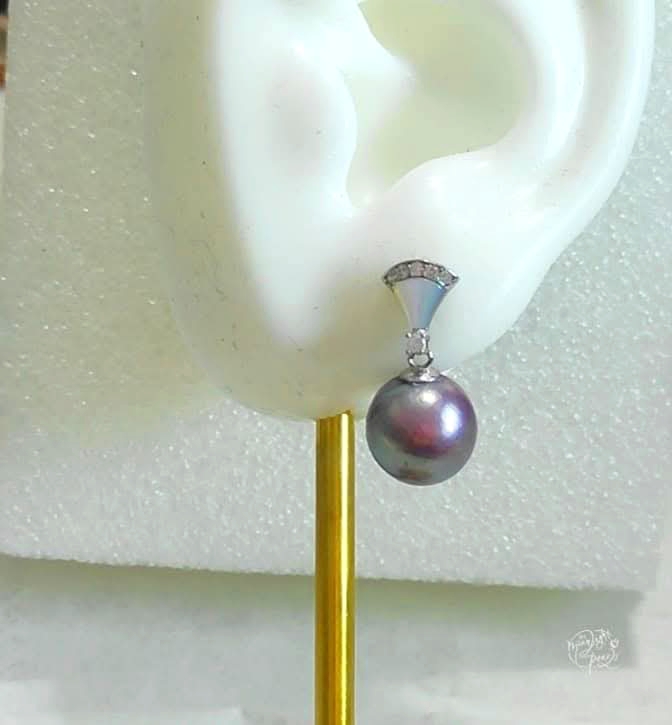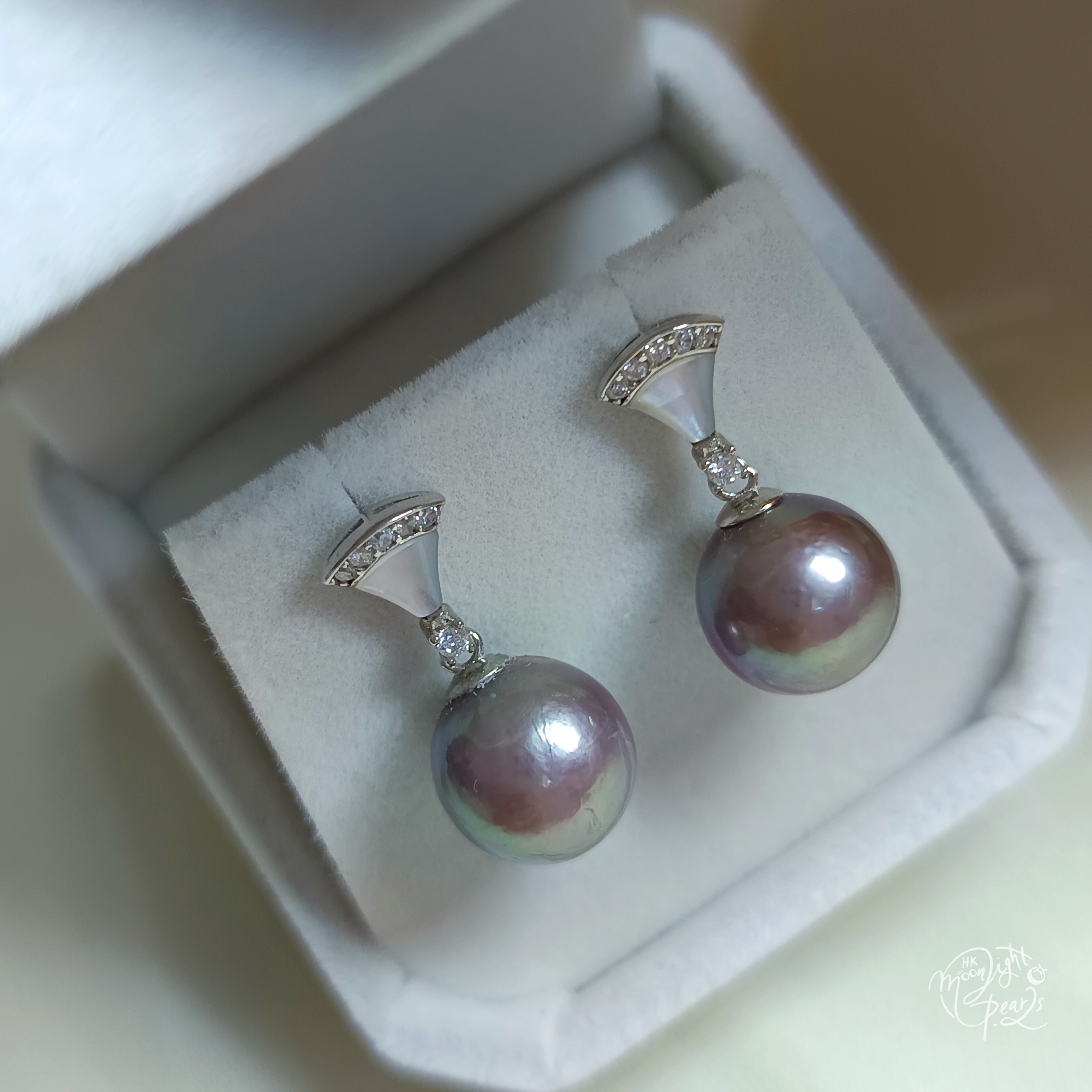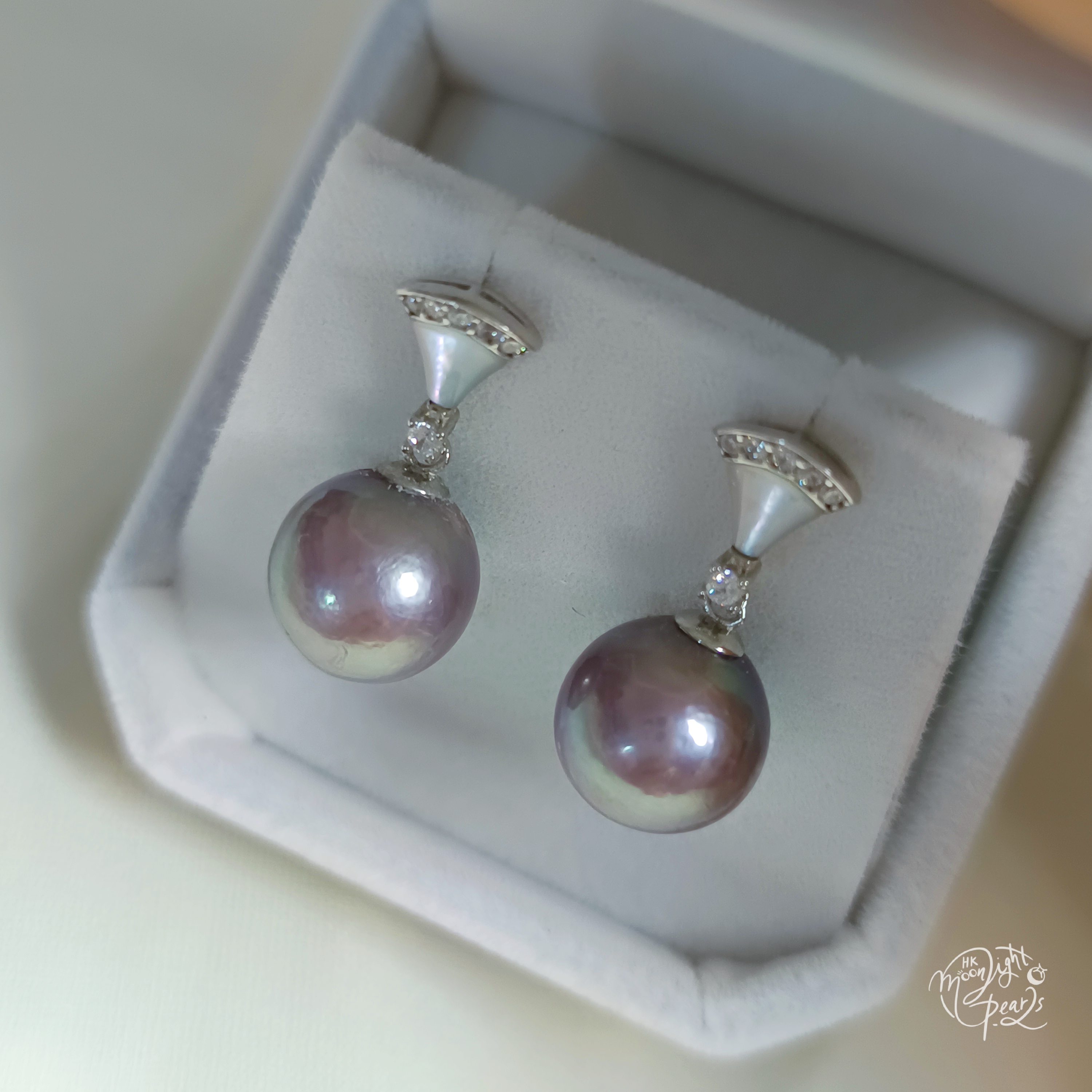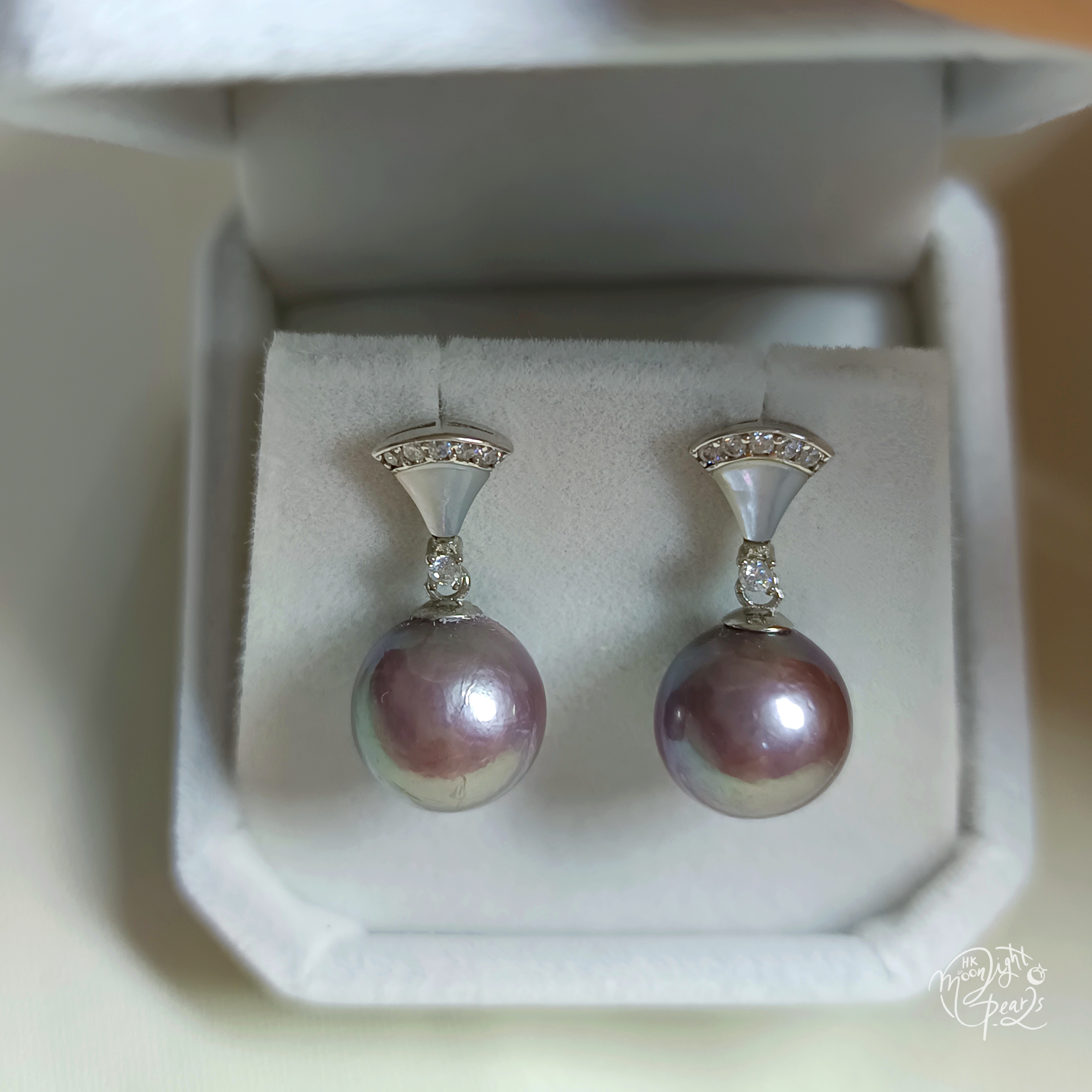基本正圓極光愛迪生金屬綠光紫色珍珠精工s925微鑲母貝鋯石小裙擺耳釘