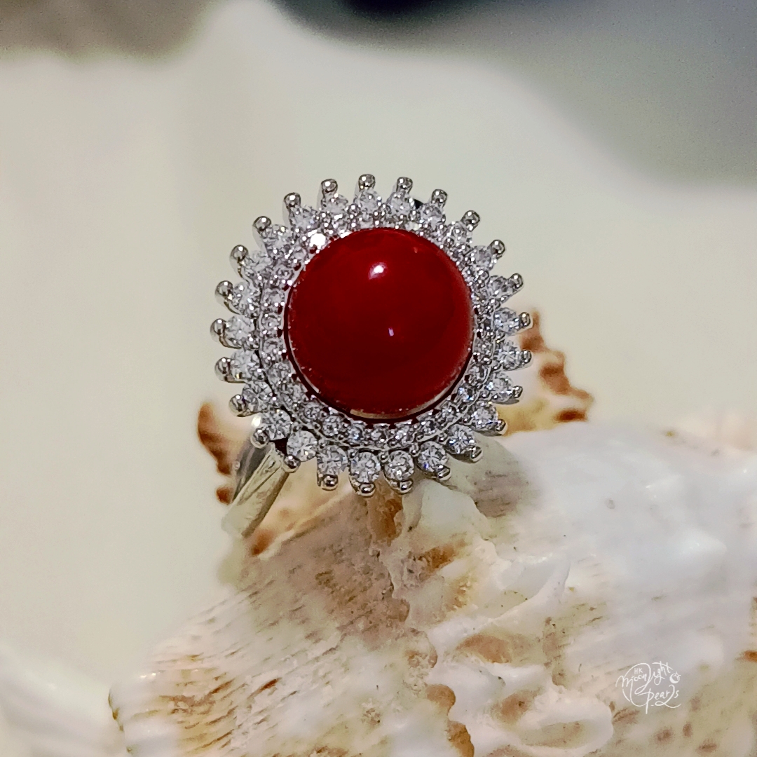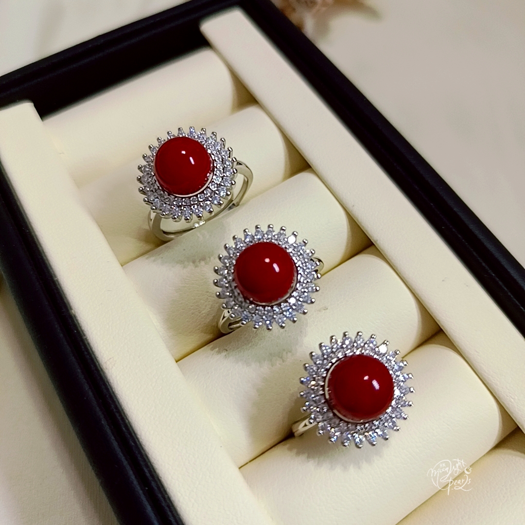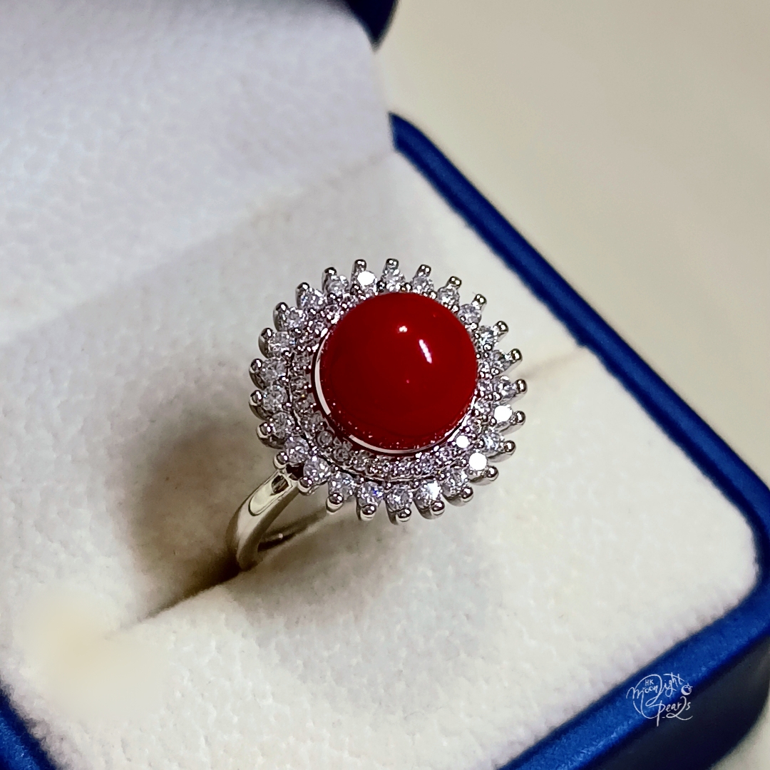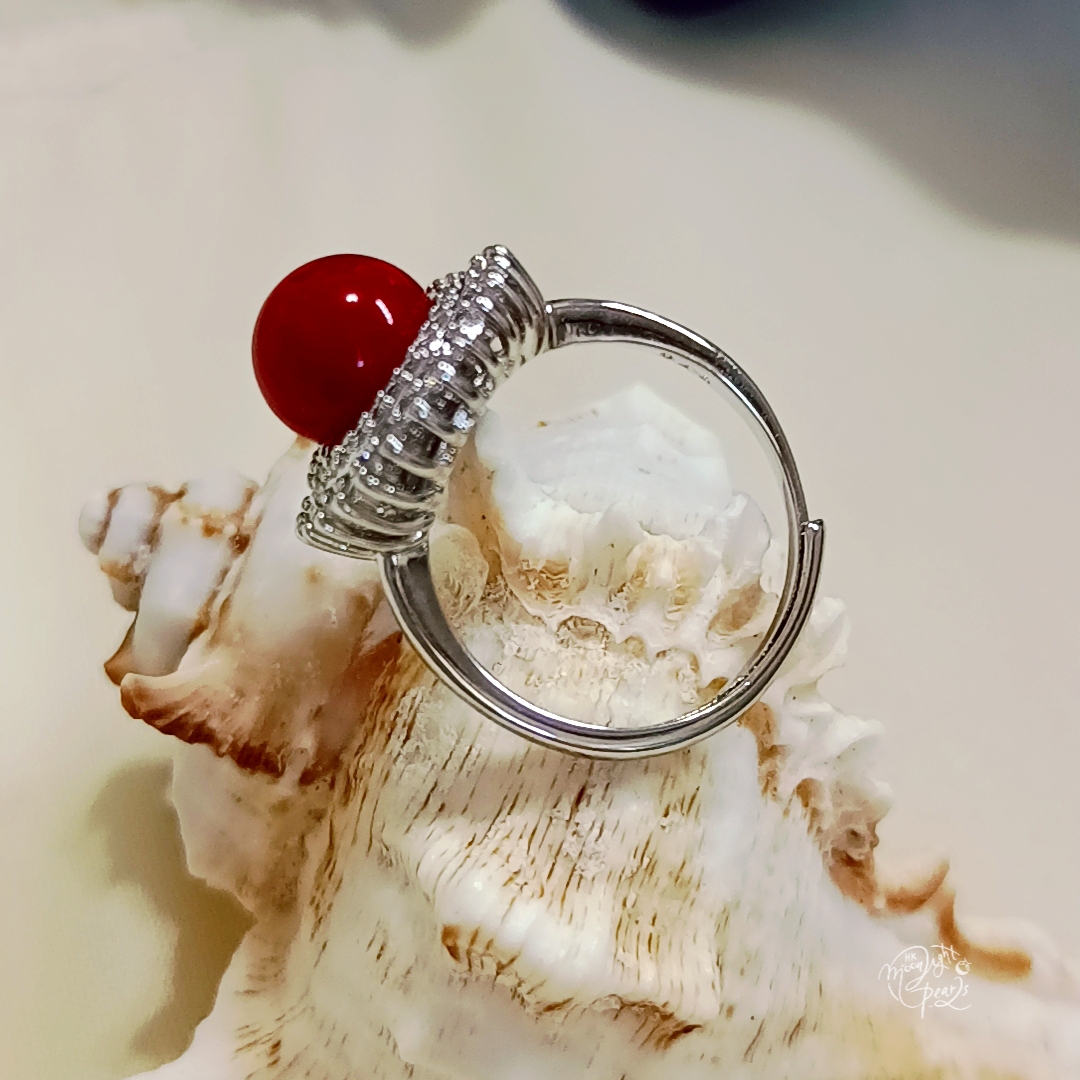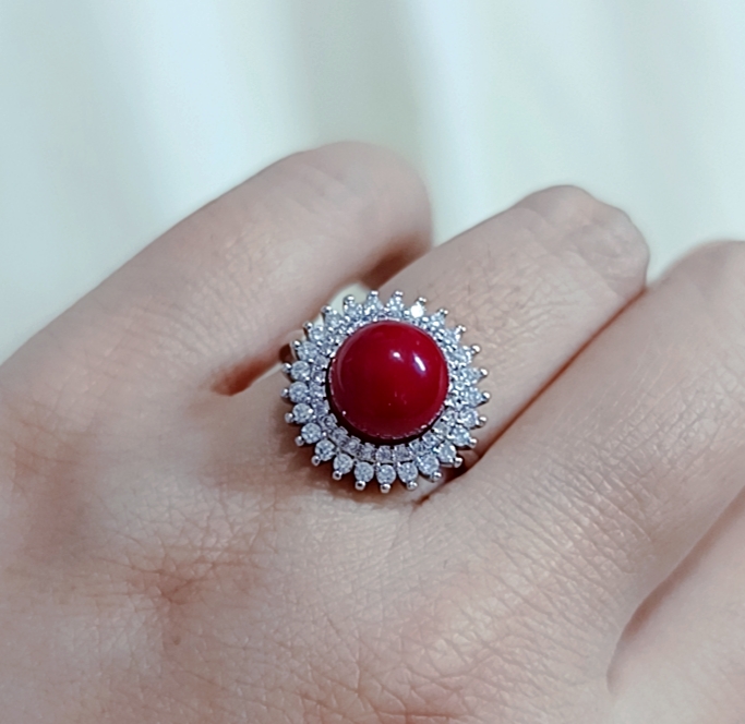 珊瑚尺寸9mm 天然海竹珊瑚珍珠戒指,阿卡牛血紅替代品,平價靚貨,佩戴時尚甜美氣質