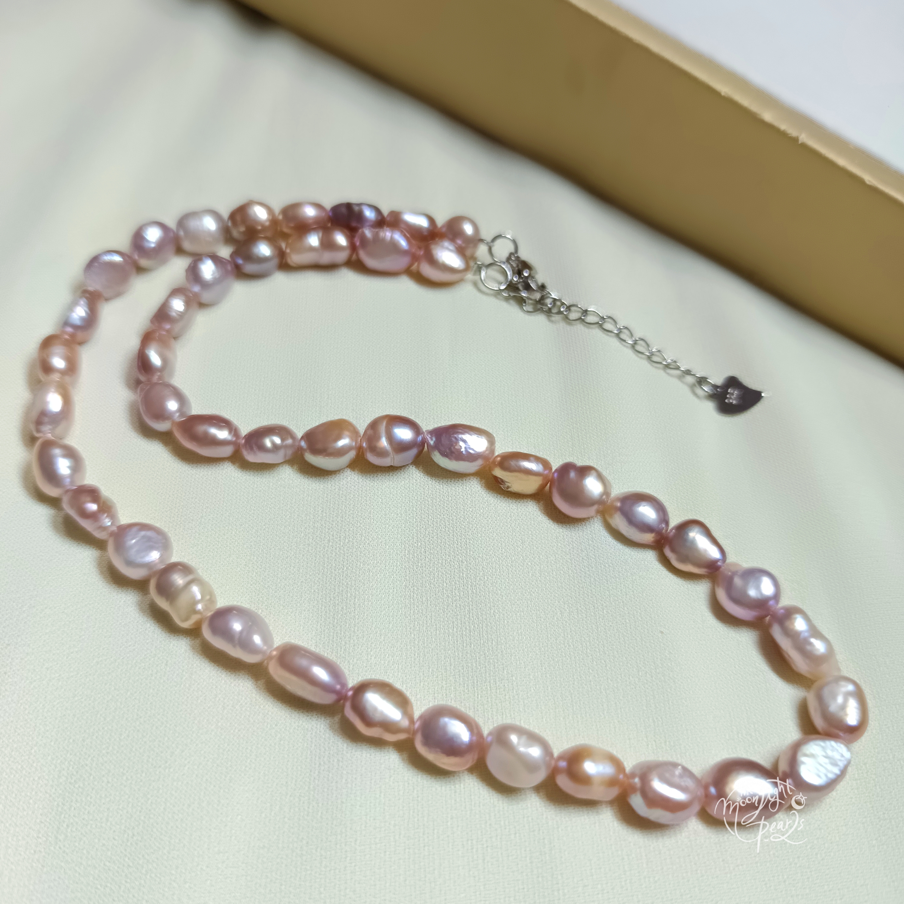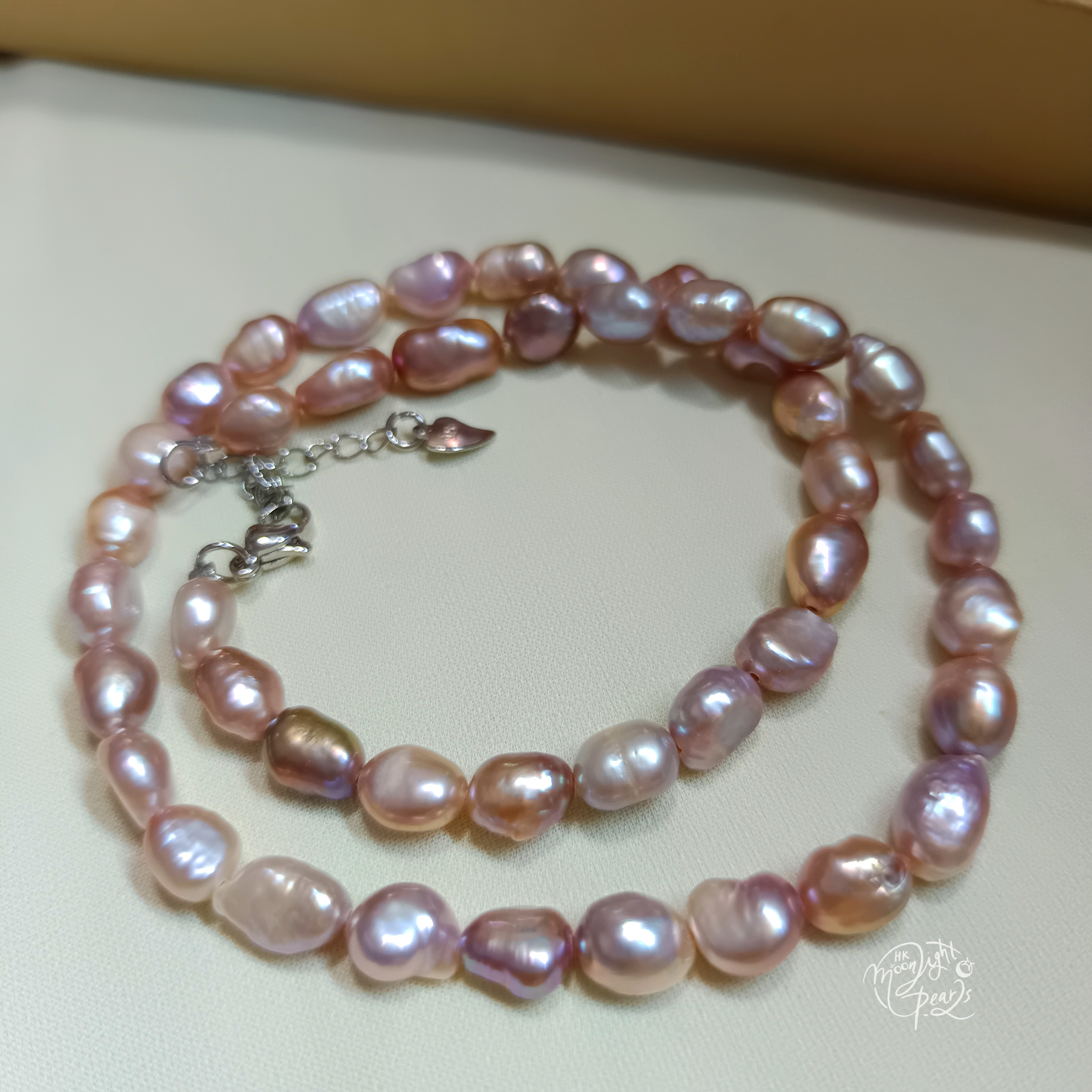 珍珠尺寸6-7mm 項鍊長度40+5cm尾鍊 強光淡水金屬炫彩巴洛克紫珍珠,偶有細微生長紋/瑕疵,佩戴時尚個性氣質,小價位精品靚貨