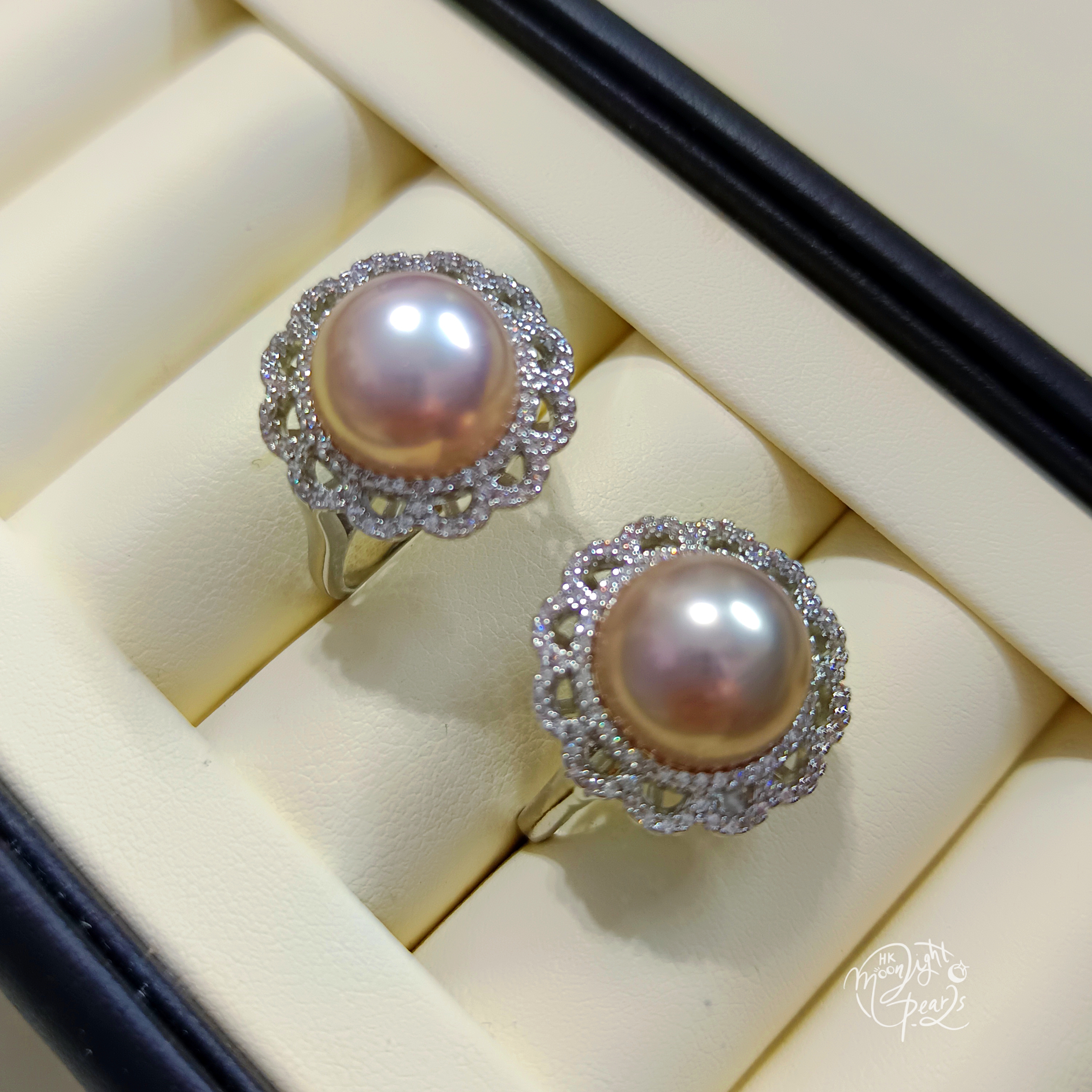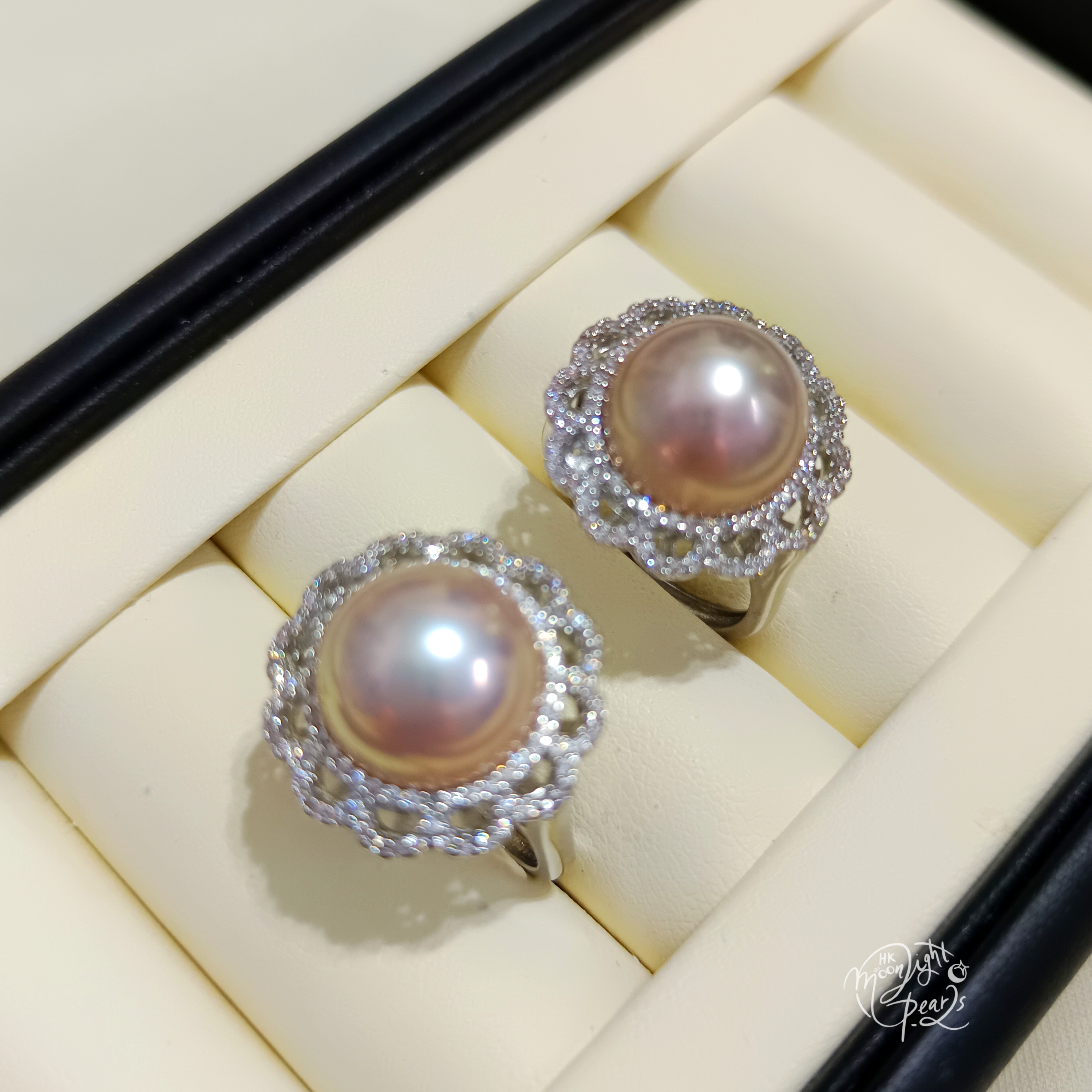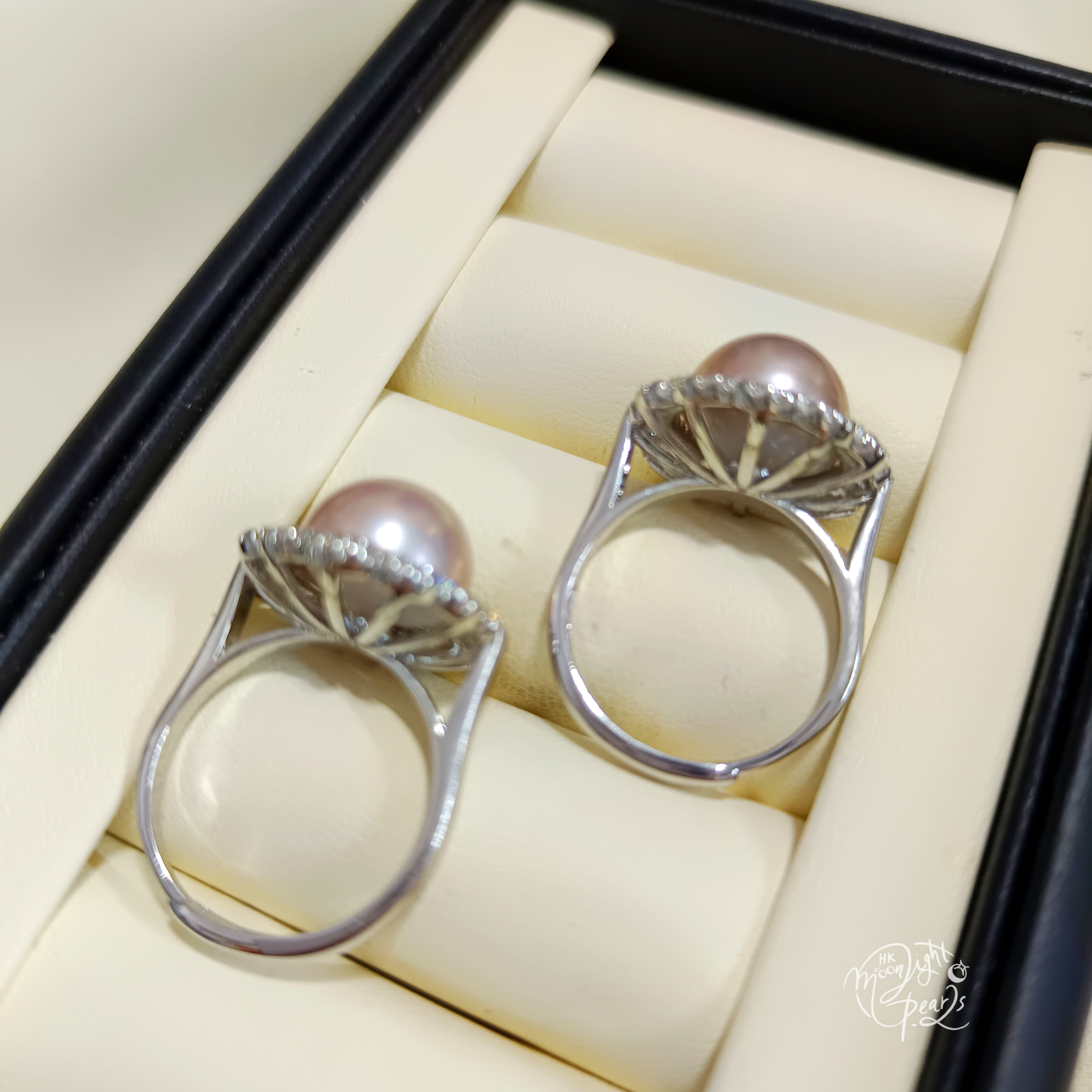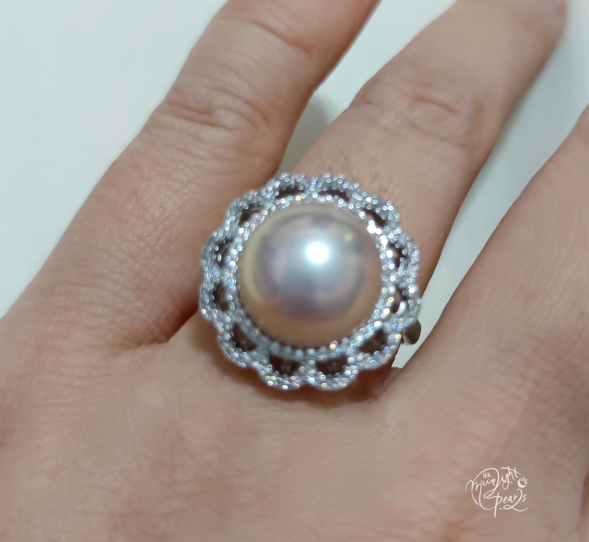 愛迪生金屬極光炫彩馬貝珍珠注白金開口戒指