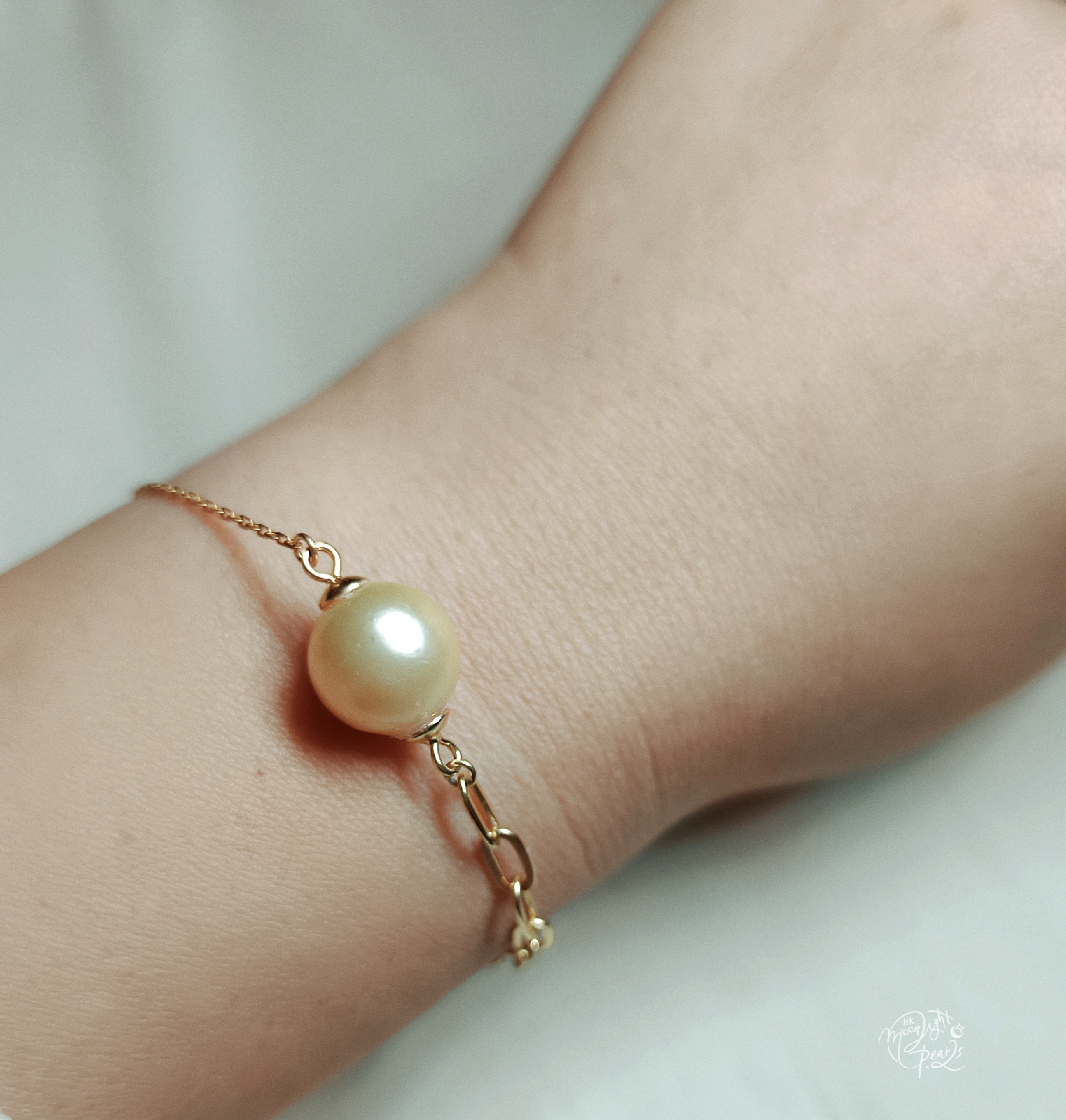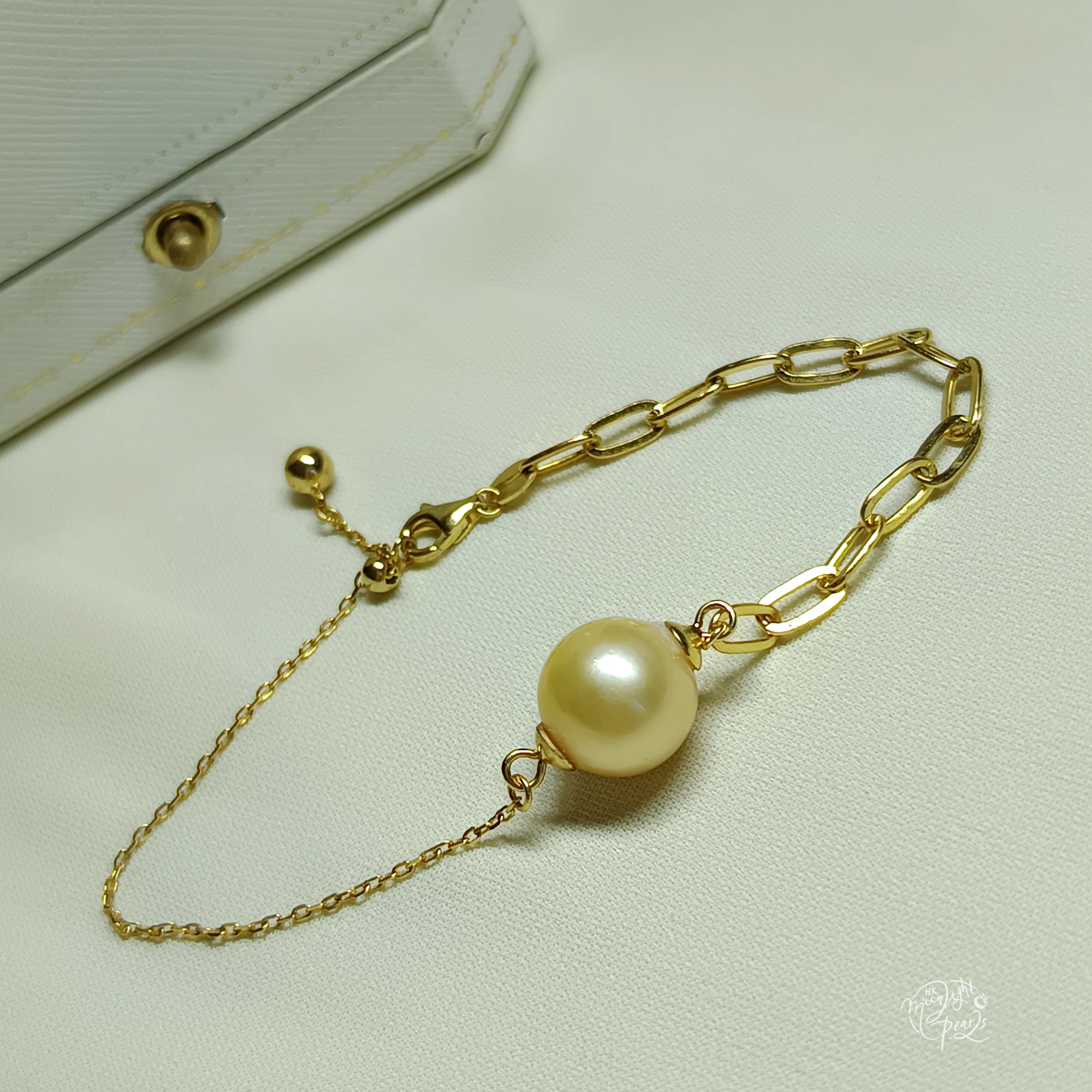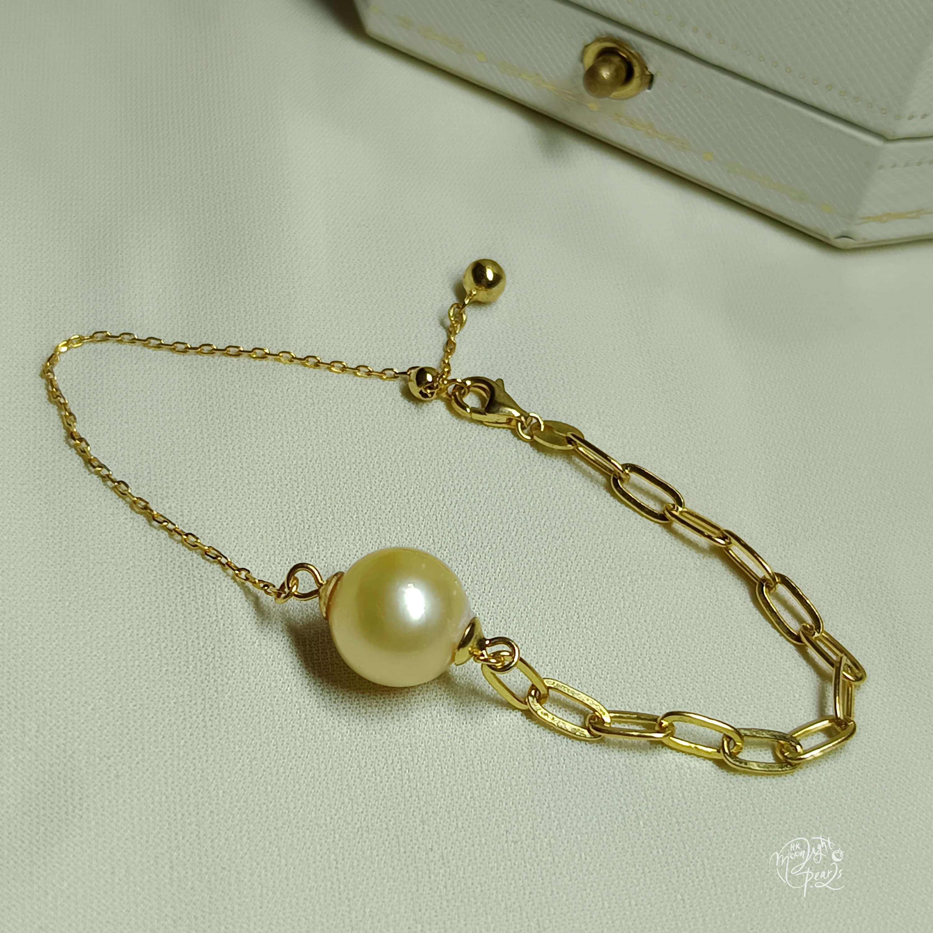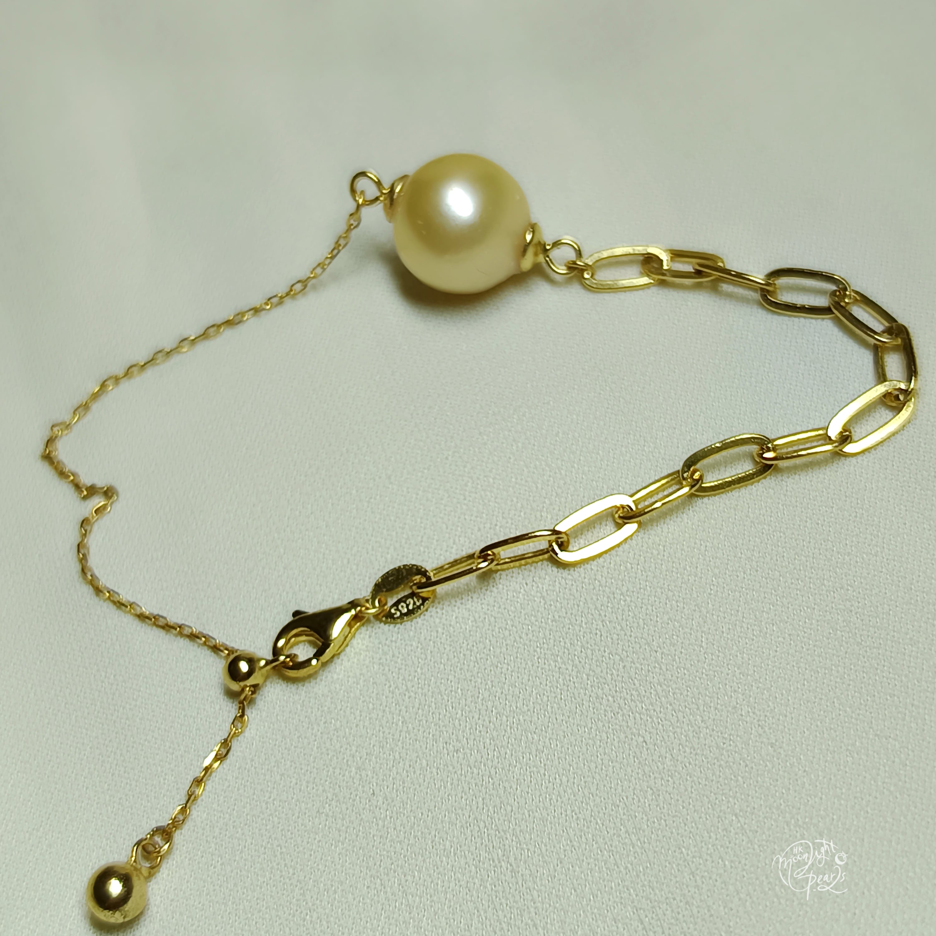 正圓強光南洋金海水珍珠精工s925銀鍍金手鍊