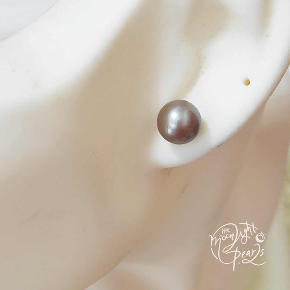 正圓強光大溪地古銅色海水珍珠s925銀針耳釘