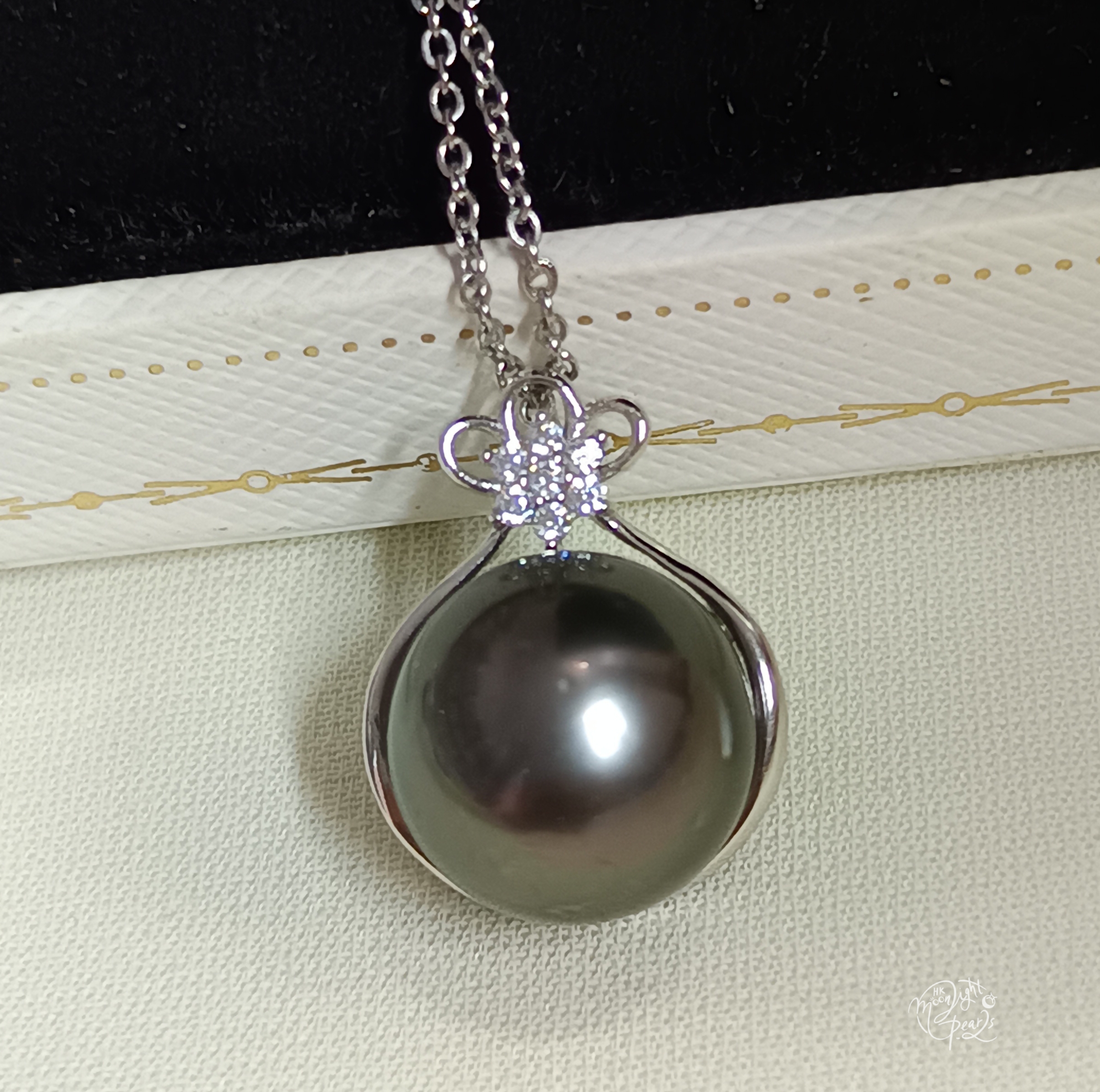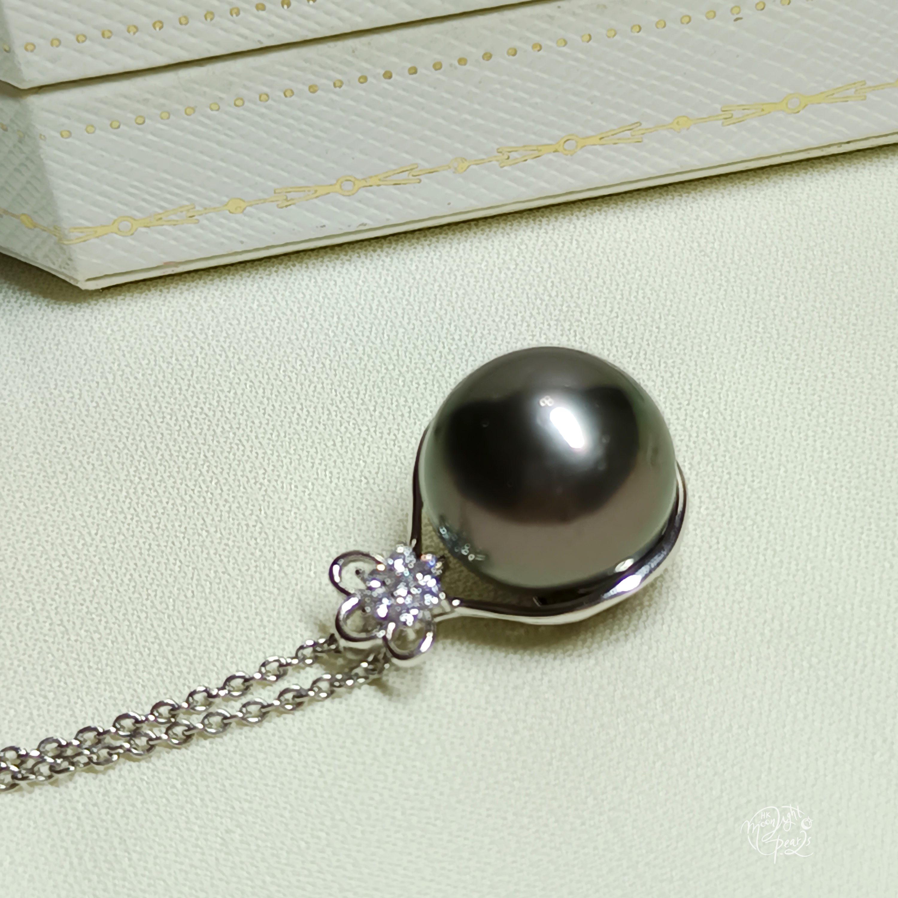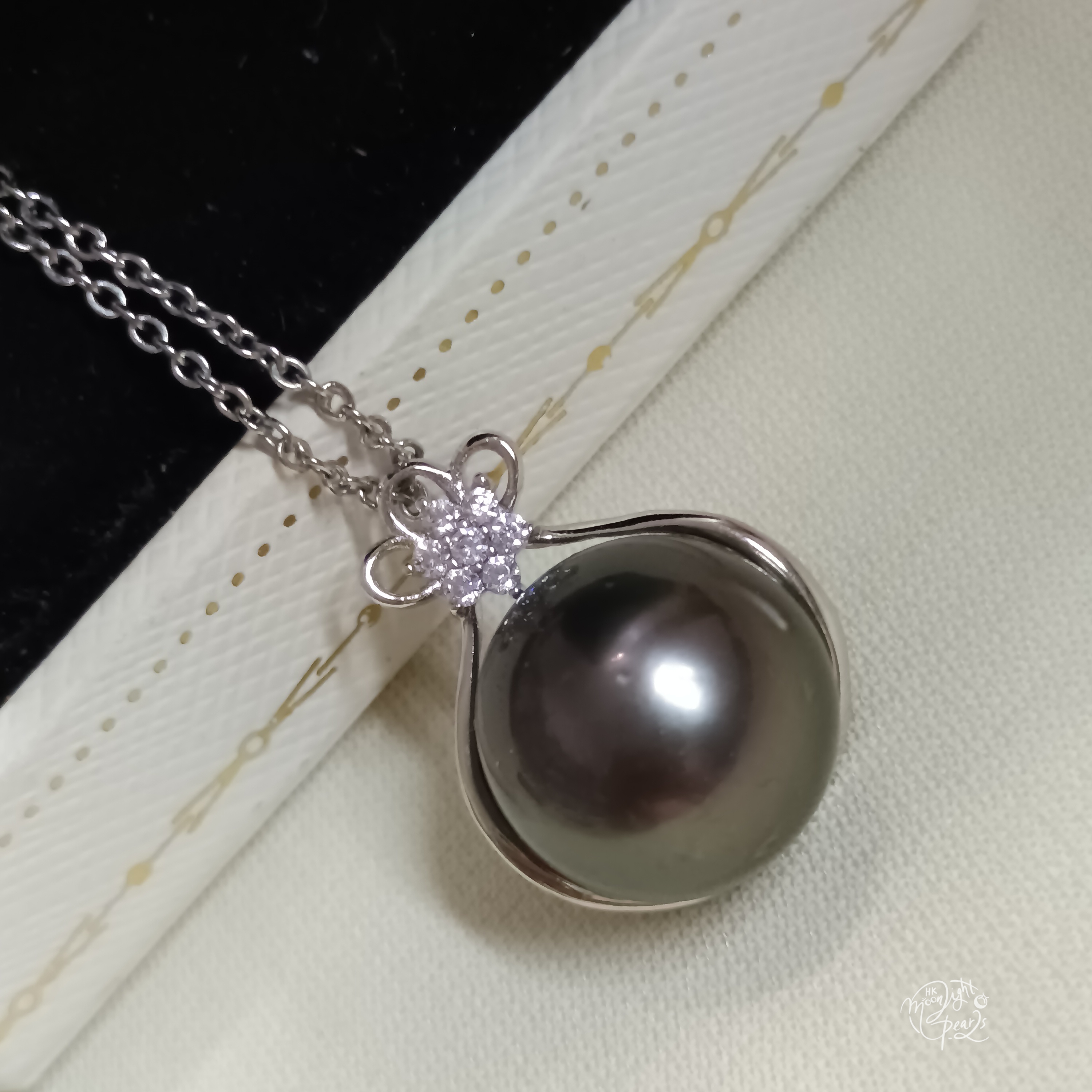 正圓強光大溪地海水珍珠精工s925銀微鑲鋯石吊墜(送注白金鍊)