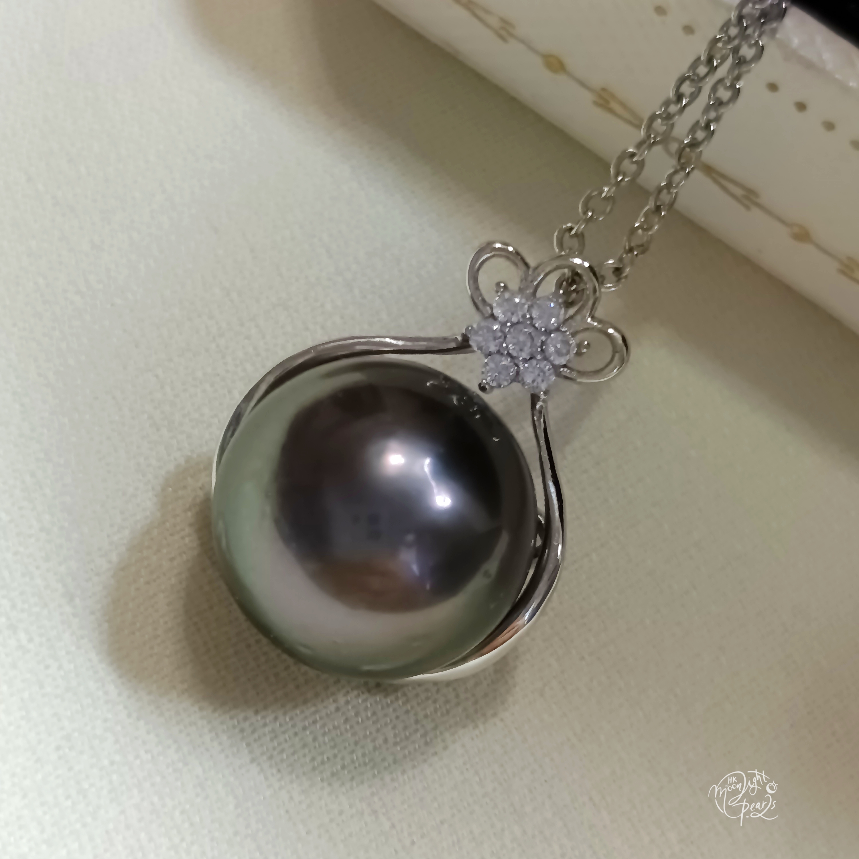 珍珠尺寸12.7mm 正圓強光大溪地海水珍珠,微透孔雀綠,整粒珠有瑕疵,正面瑕疵不明顯基本看不清,小價位靚貨!