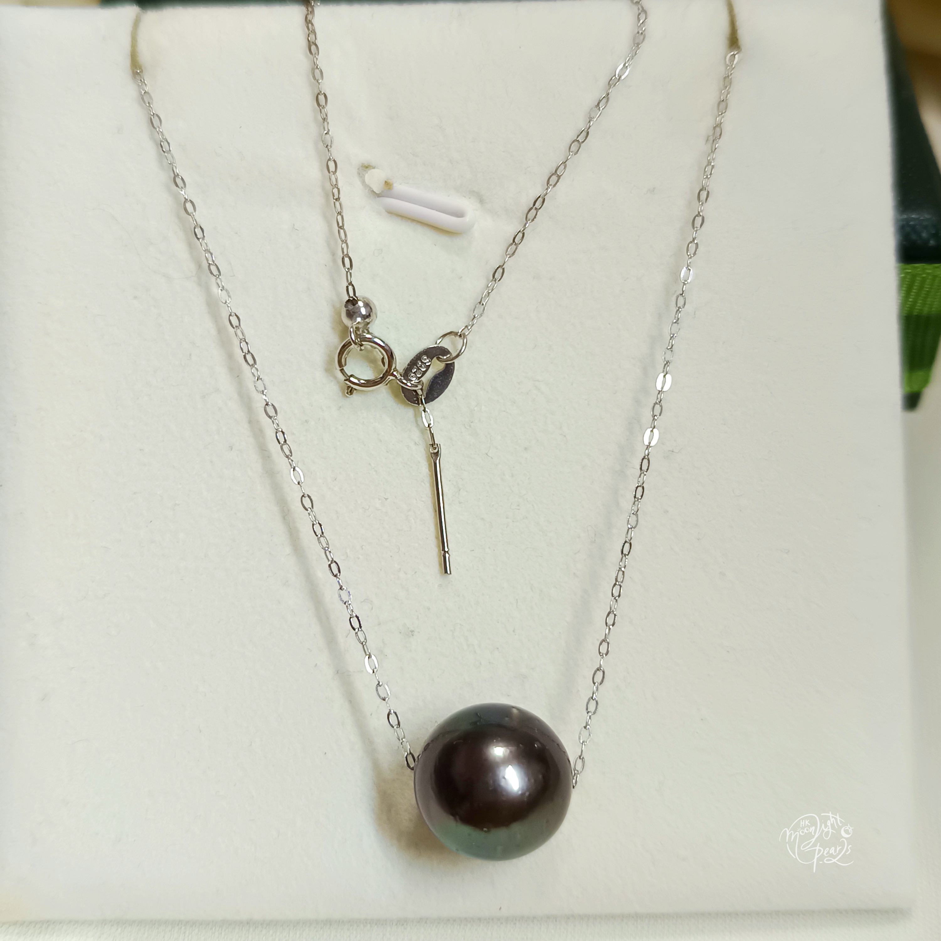 正圓強光大溪地海水珍珠路路通+s925銀萬能針鍊