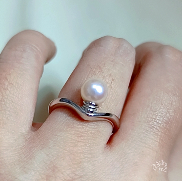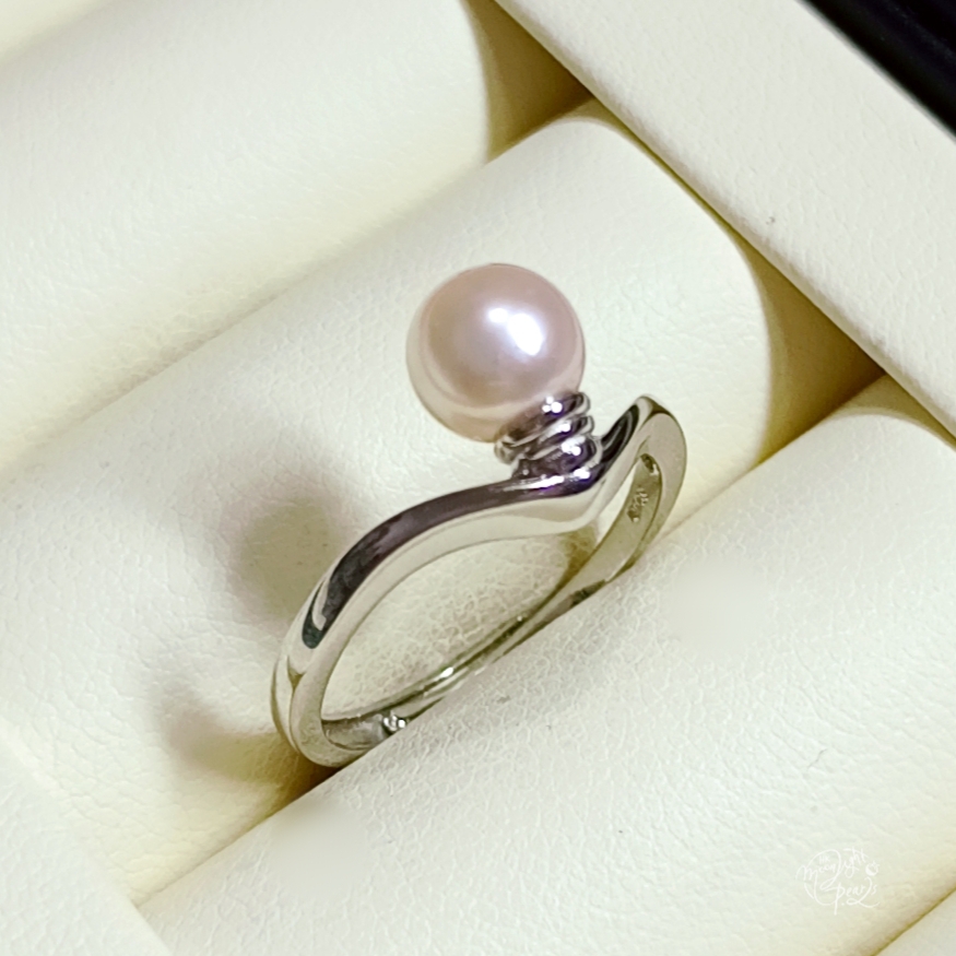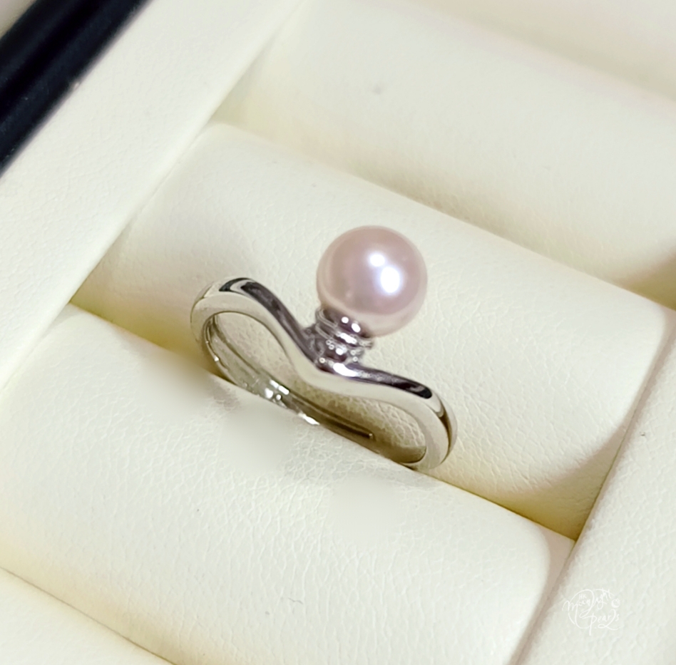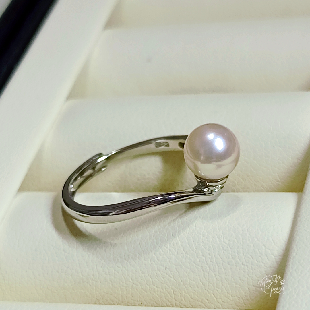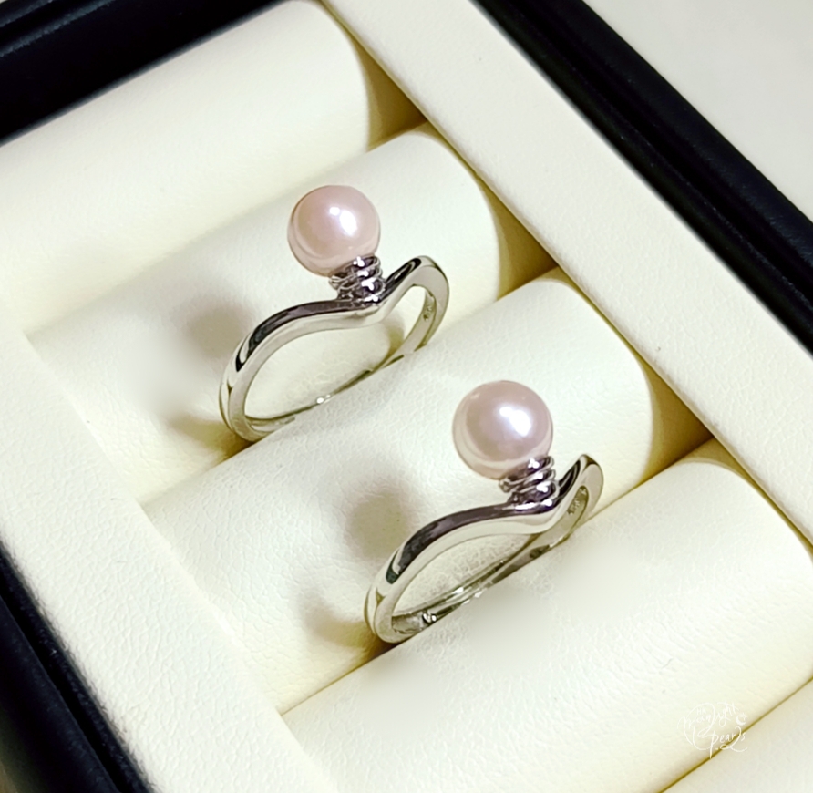 正圓極光日本koya櫻花粉海水珍珠精工s925銀小燈泡開口戒指