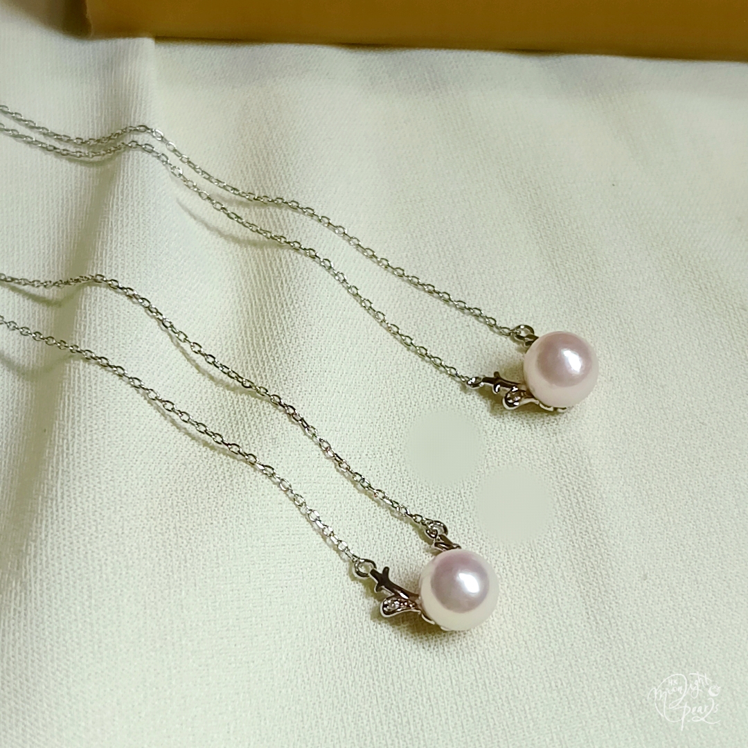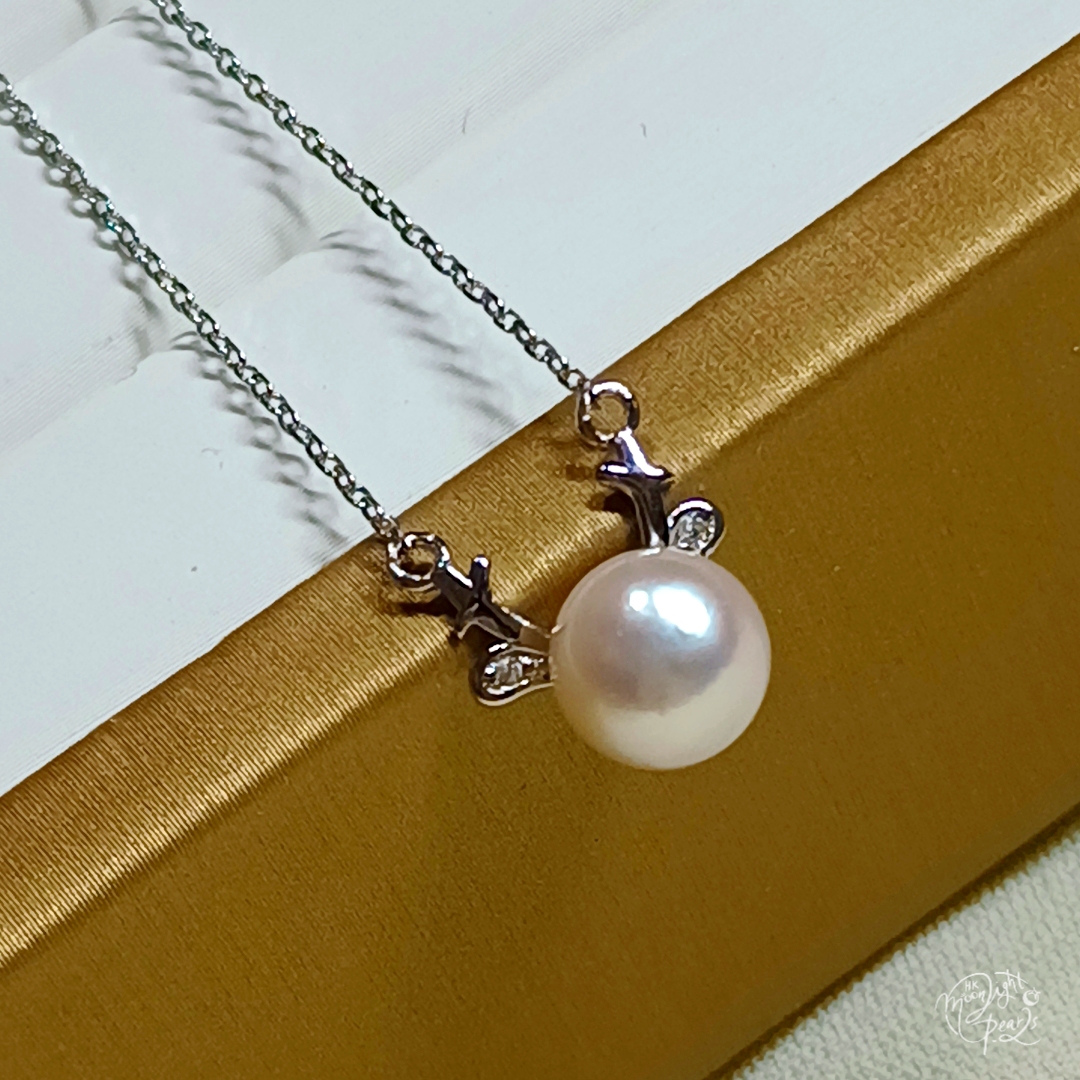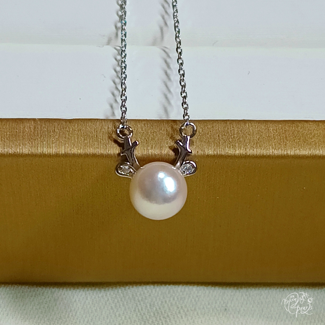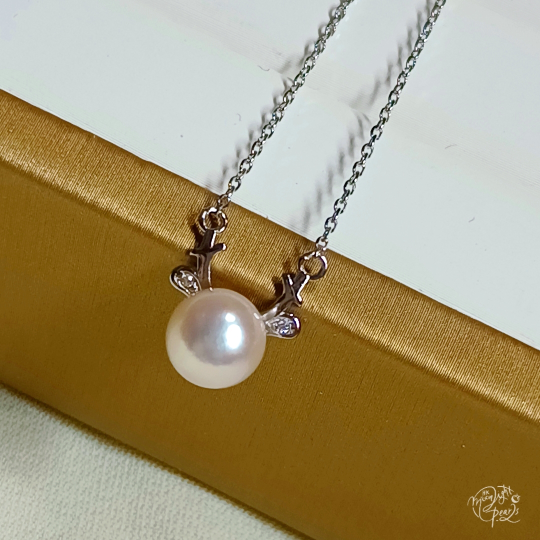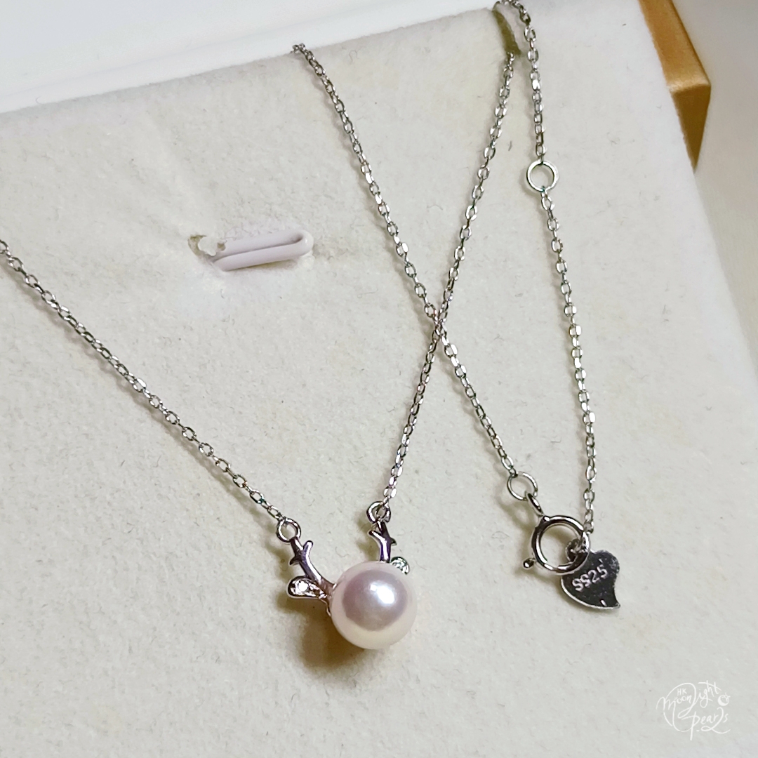 正圓極光日本koya櫻花粉海水珍珠精工s925銀聖誕小鹿套鍊