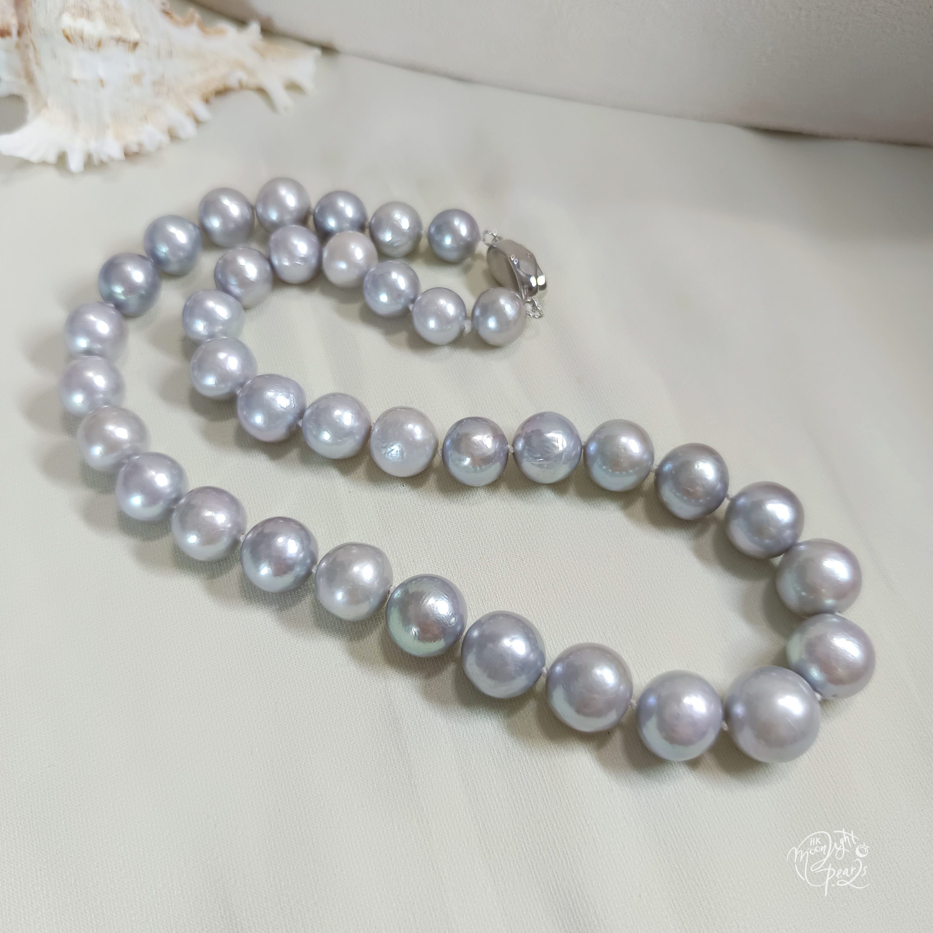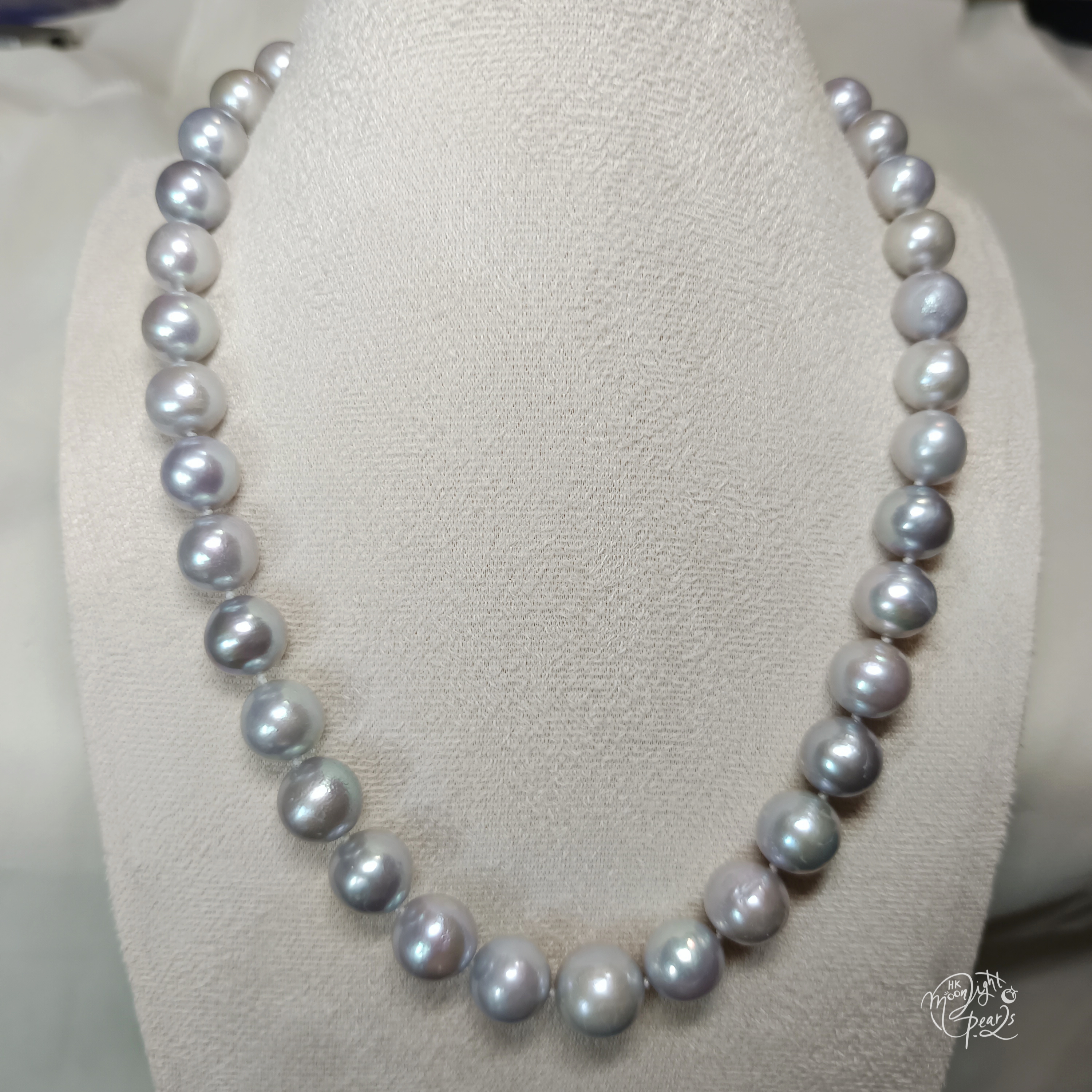 珍珠尺寸10-13mm 項鍊長度45cm 精品正圓極強光淡水愛迪生珍珠,皮光絲滑,極細微瑕/生長紋佩戴不顯,配衫百搭,上身時尚氣質!