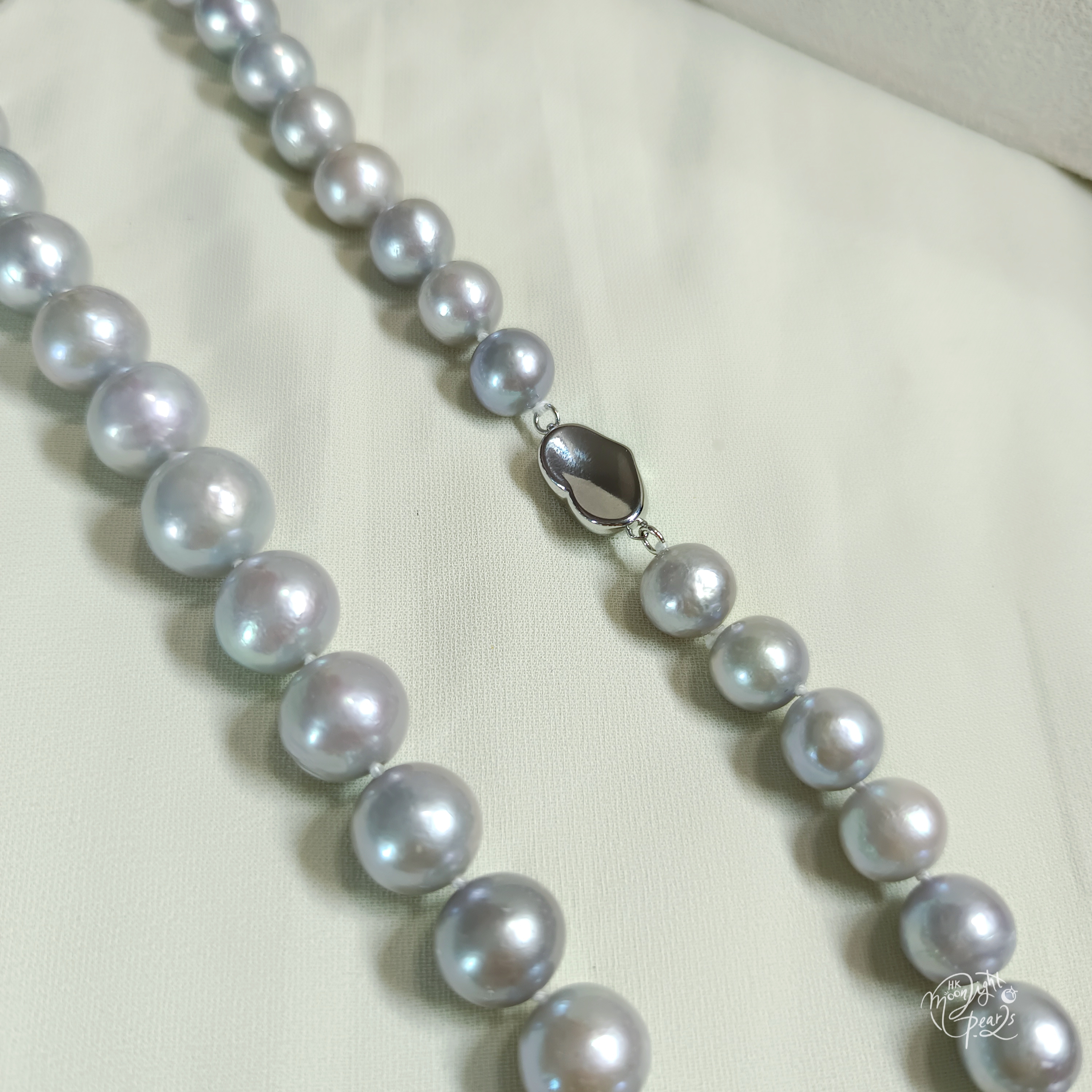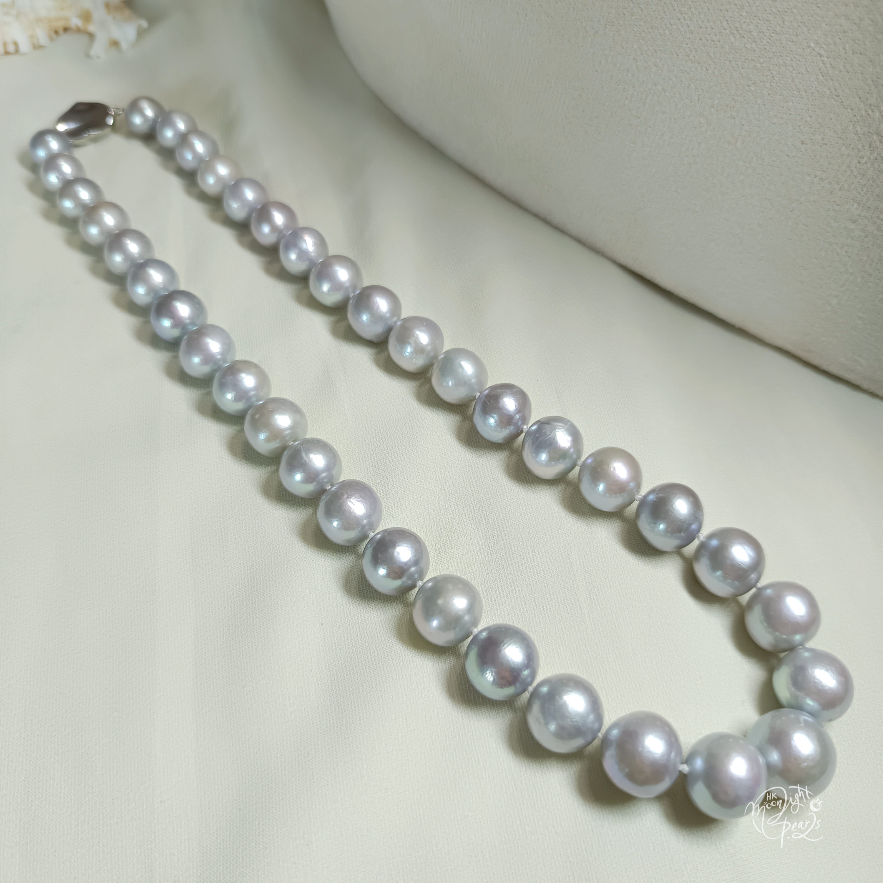 正圓極強光愛迪生銀灰藍色珍珠925銀扣項鍊