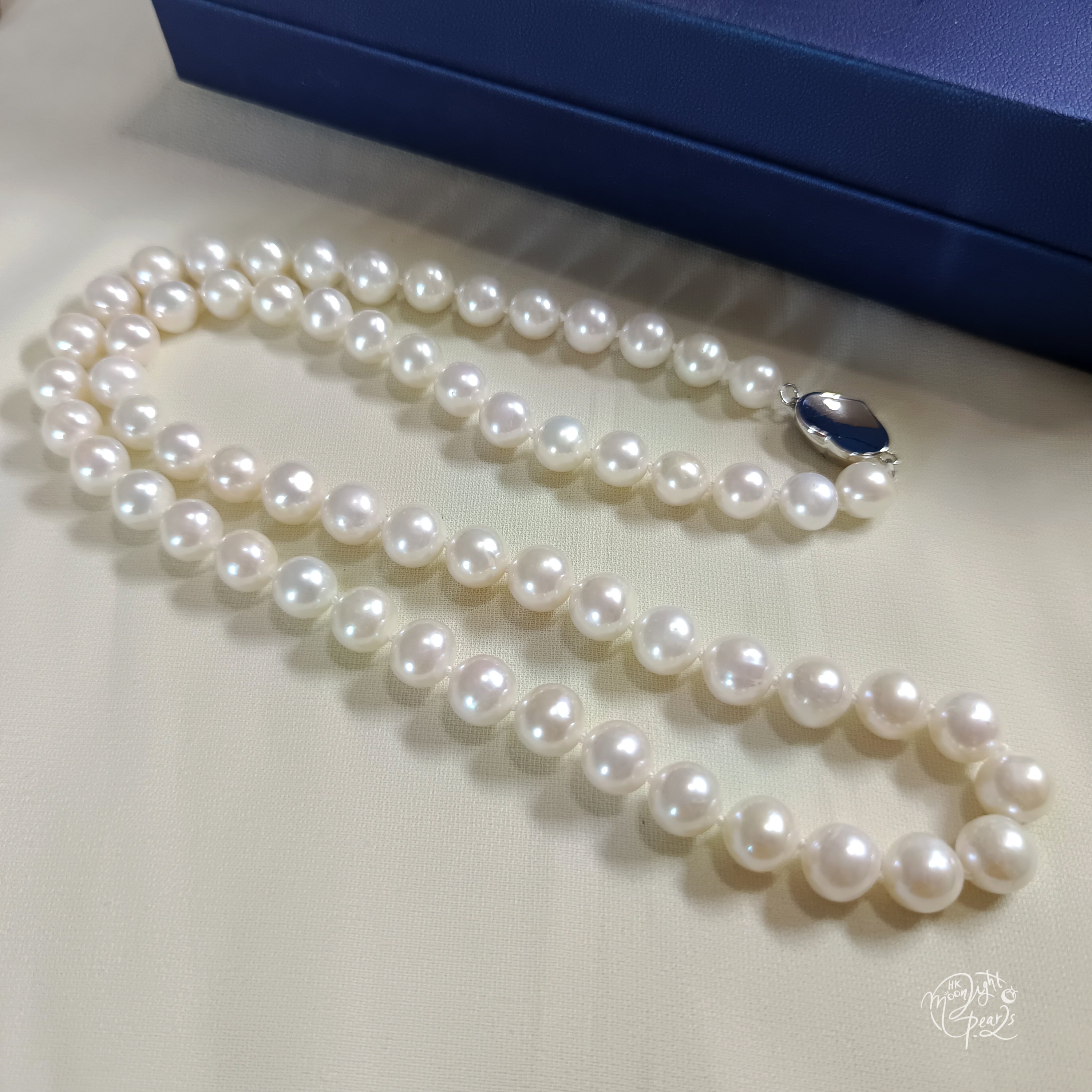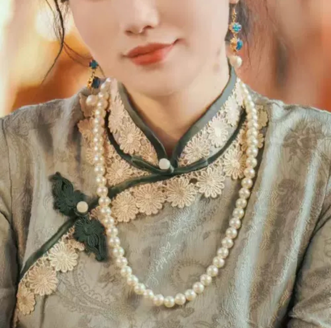 正圓極強光淡水無核珍珠925銀扣中長款旗袍項鍊