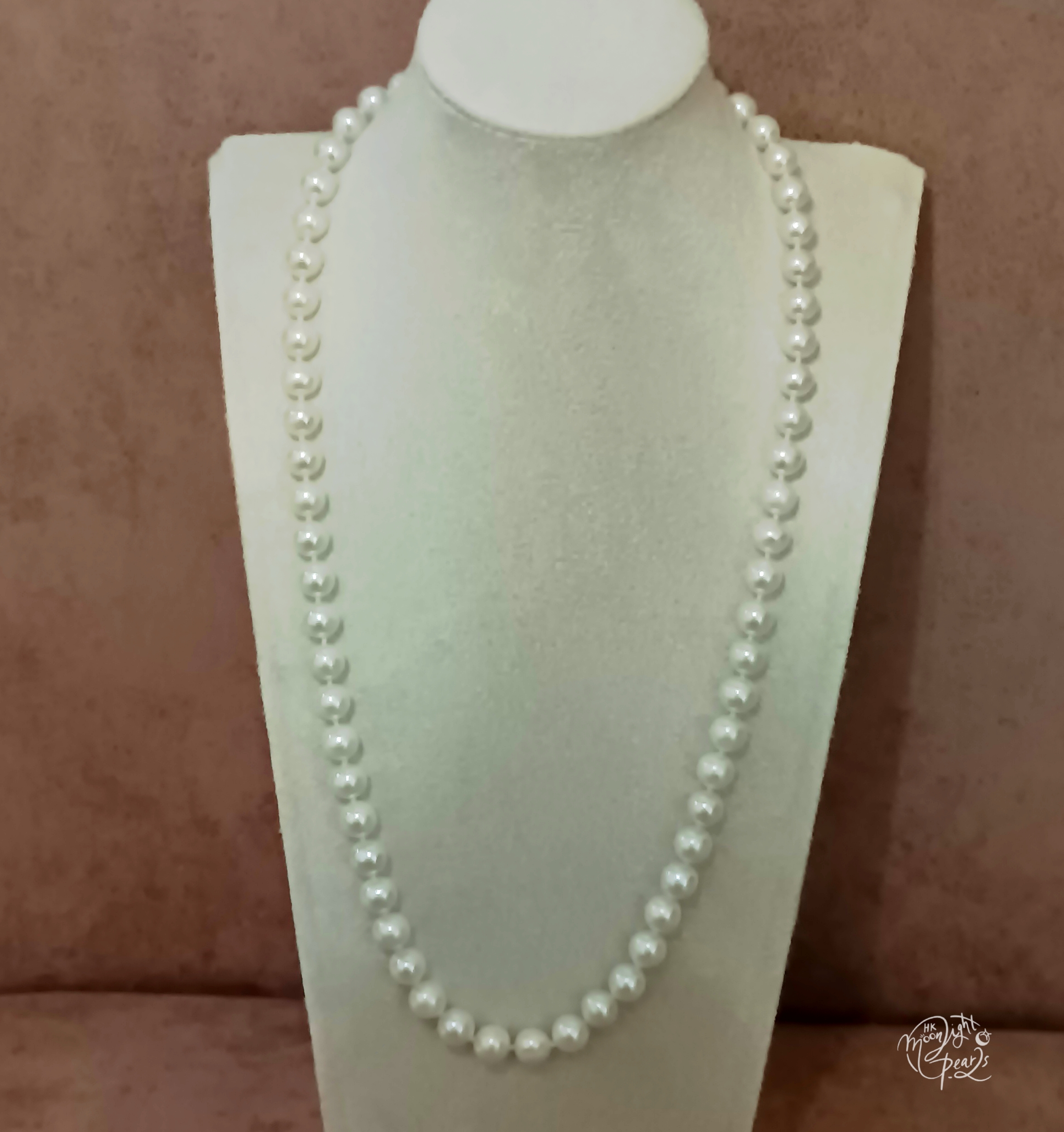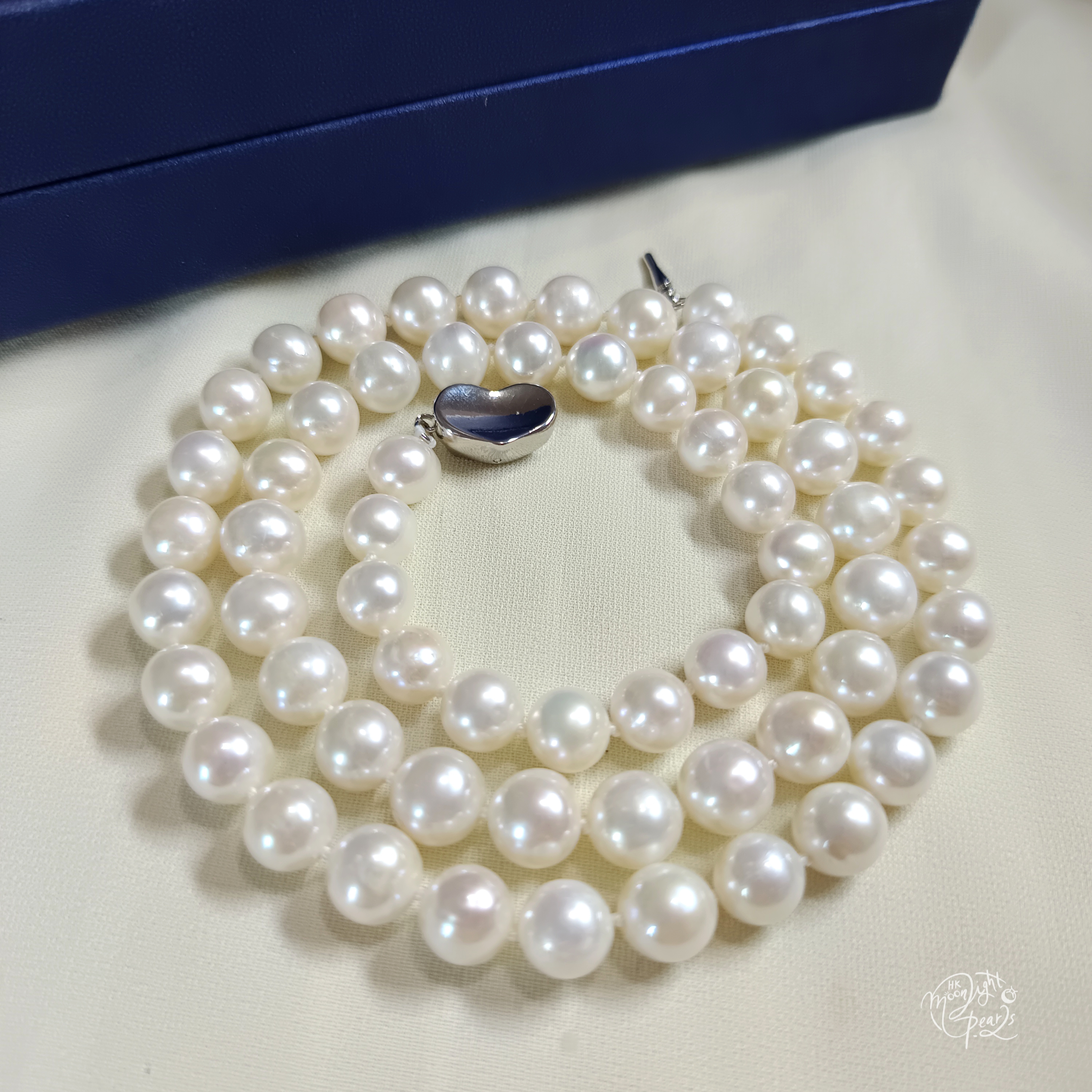 珍珠尺寸9-10mm 項鍊長度60cm 精品正圓極強光淡水無核珍珠,皮光絲滑,基本無明顯瑕疵,配旗袍超美!