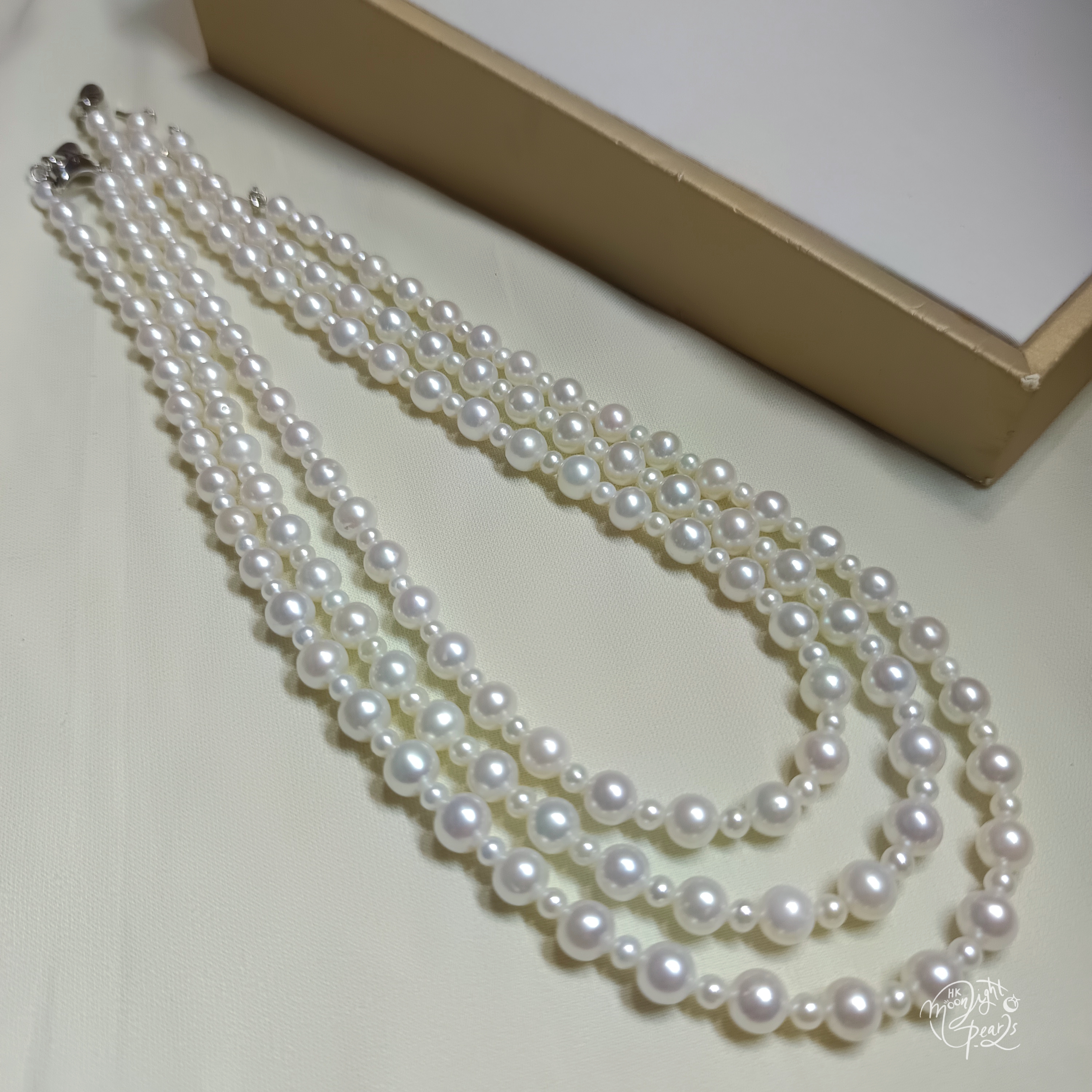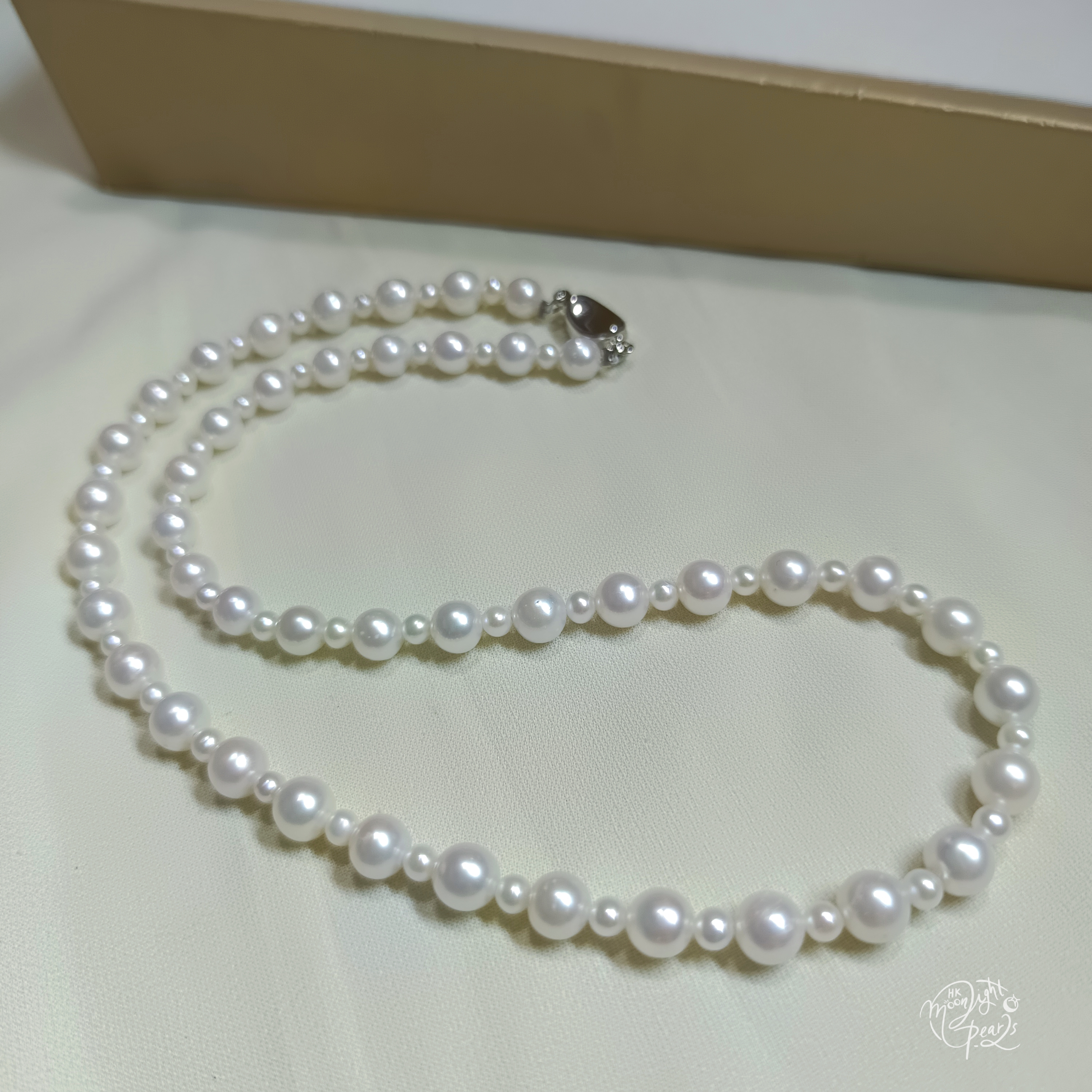 珍珠尺寸3-4mm,6-7mm 項鍊連扣總長度45cm左右 正圓極強光淡水AK珍珠,皮光絲滑透亮,基本無明顯瑕疵,佩戴時尚氣質👍