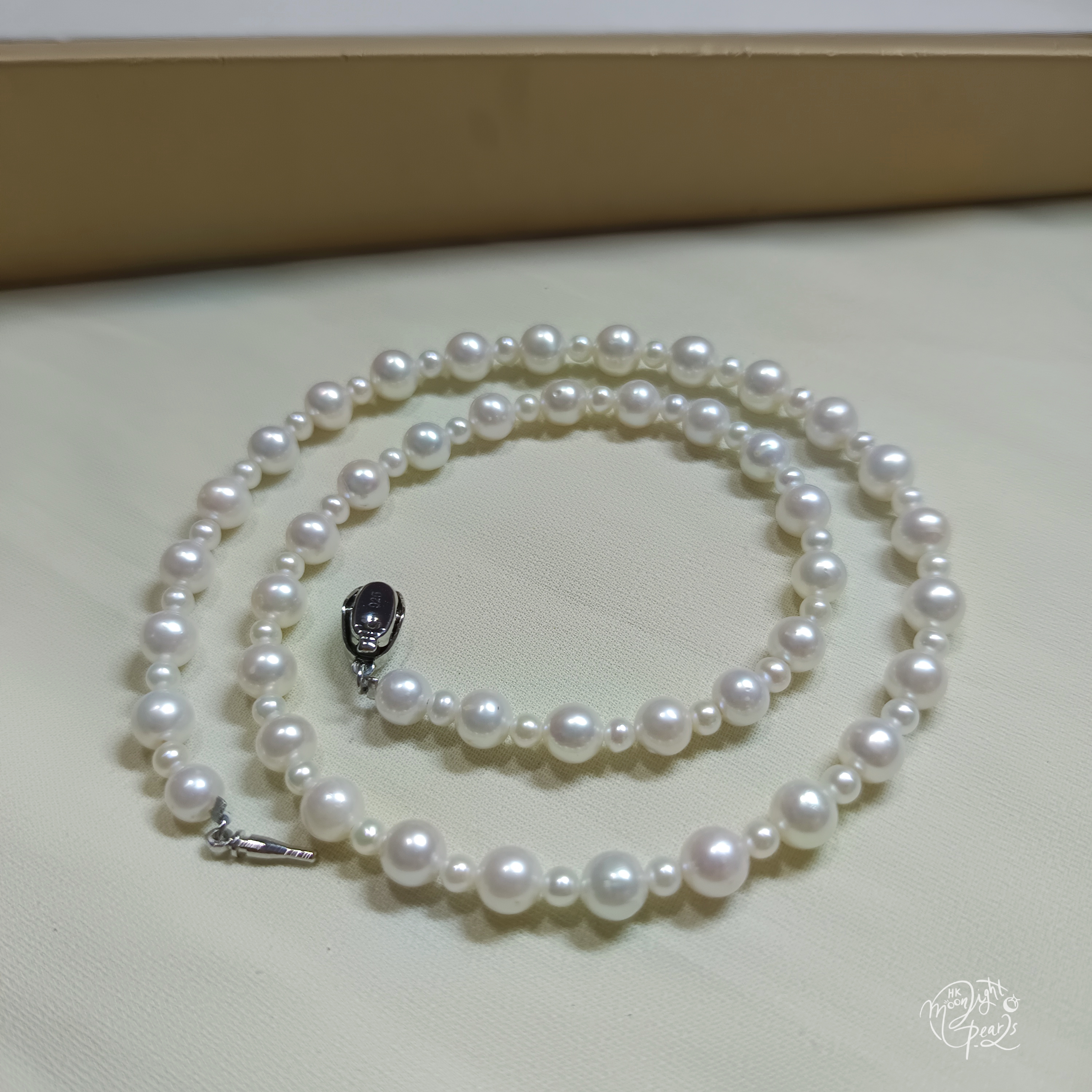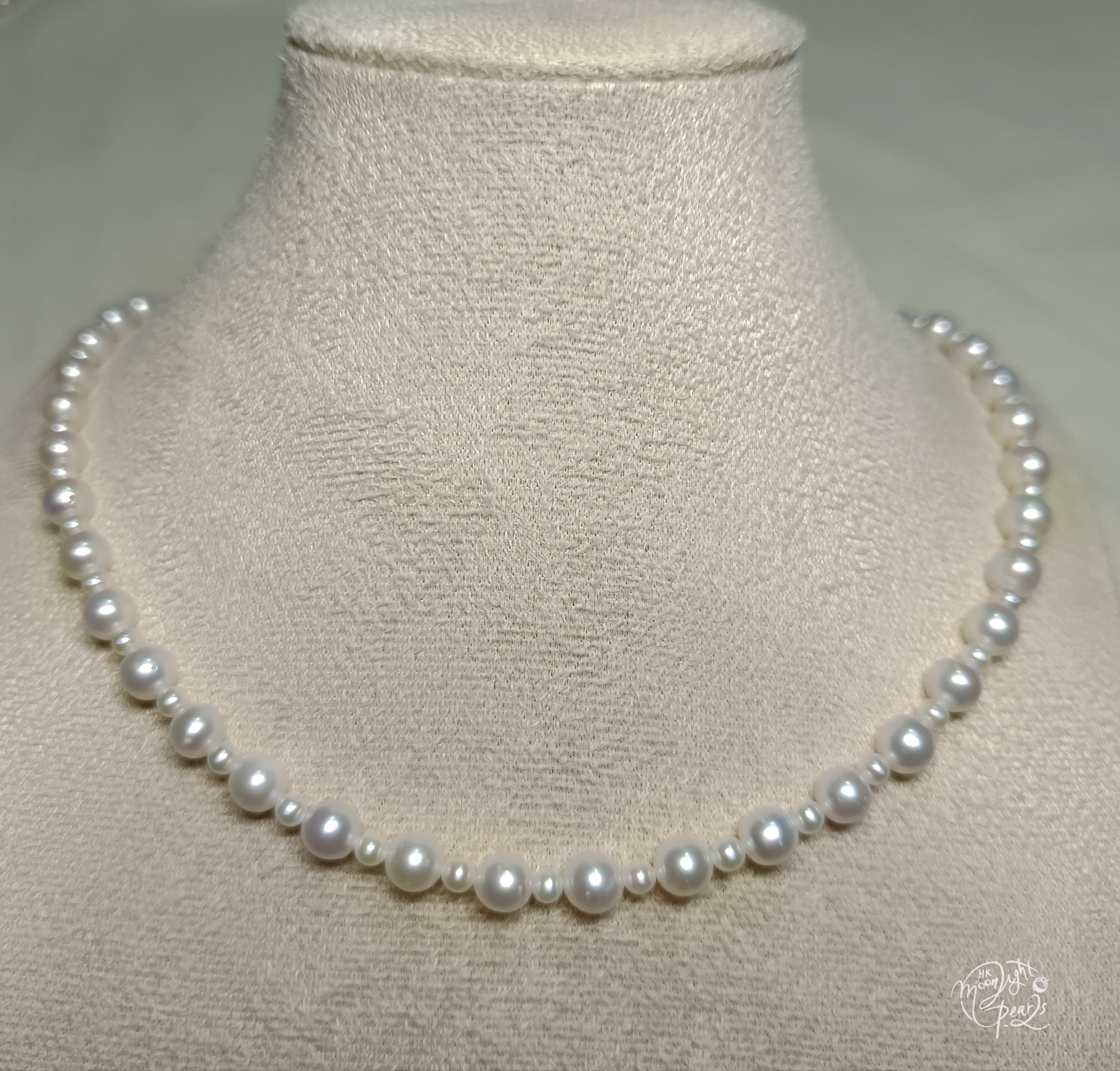 正圓極強光淡水AK 大小間隔珍珠925銀扣時尚項鍊