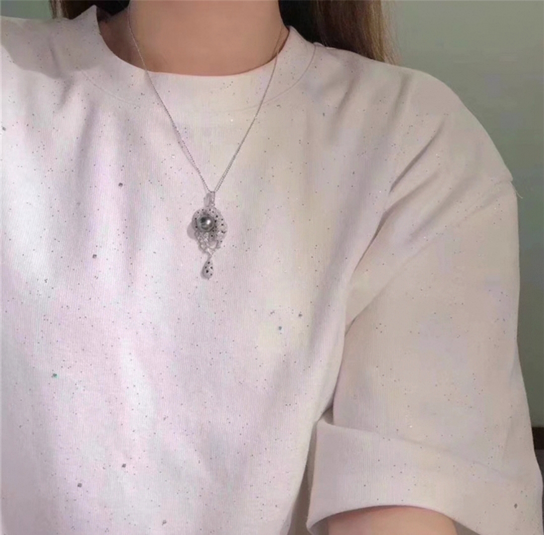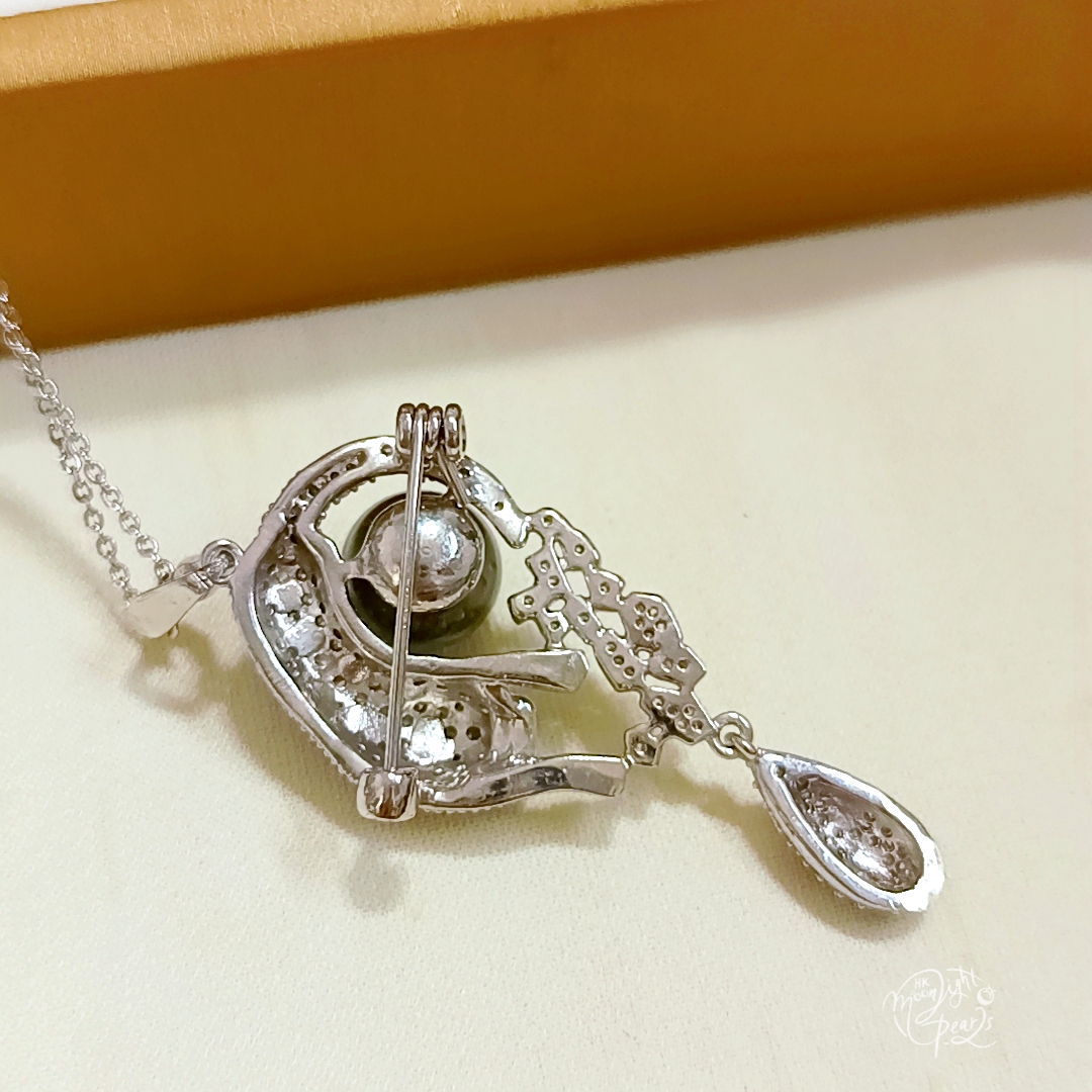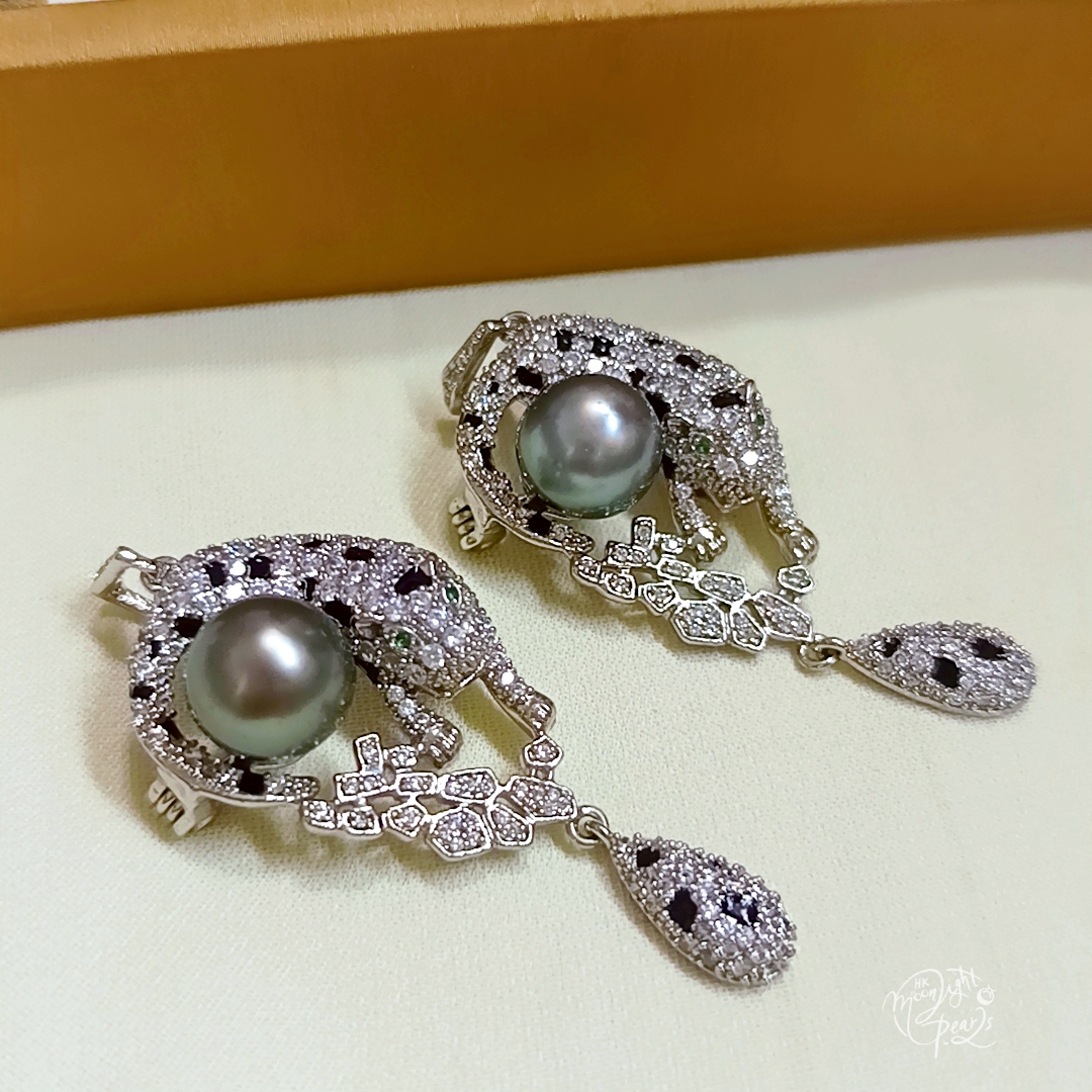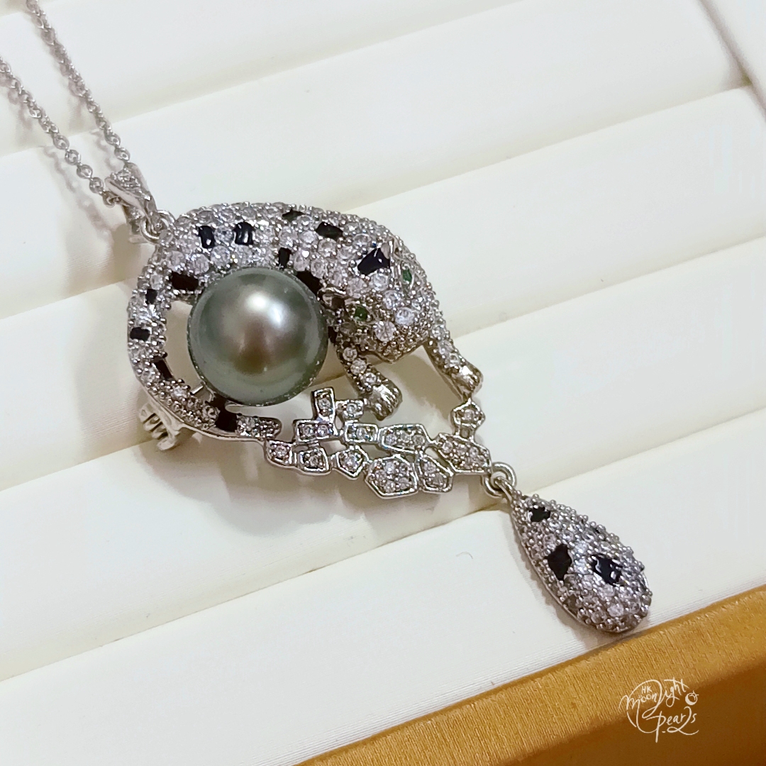 特惠產品‼️近圓強光大溪地微透孔雀綠海水珍珠注白金美洲豹吊墜/胸針兩用(不含鍊)