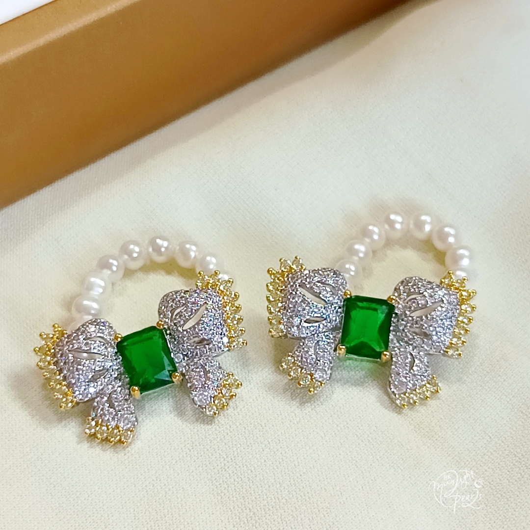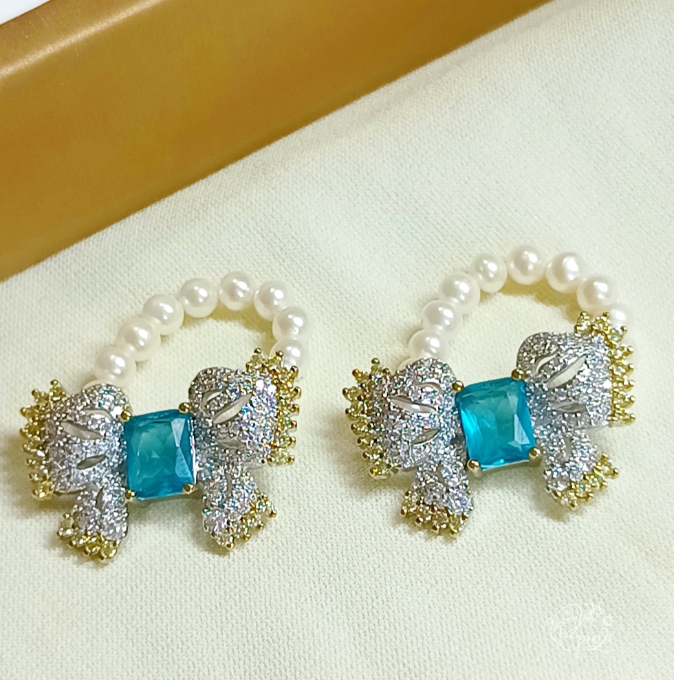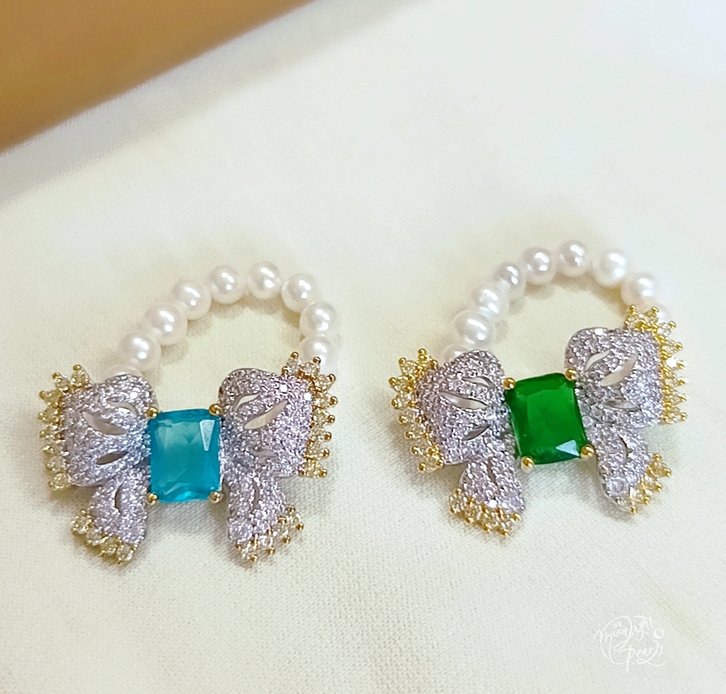 珍珠尺寸4mm 近圓強光淡水baby珍珠,皮滑光亮無瑕疵,配時尚型爆蝴蝶結裝飾,上手時尚個性氣質
