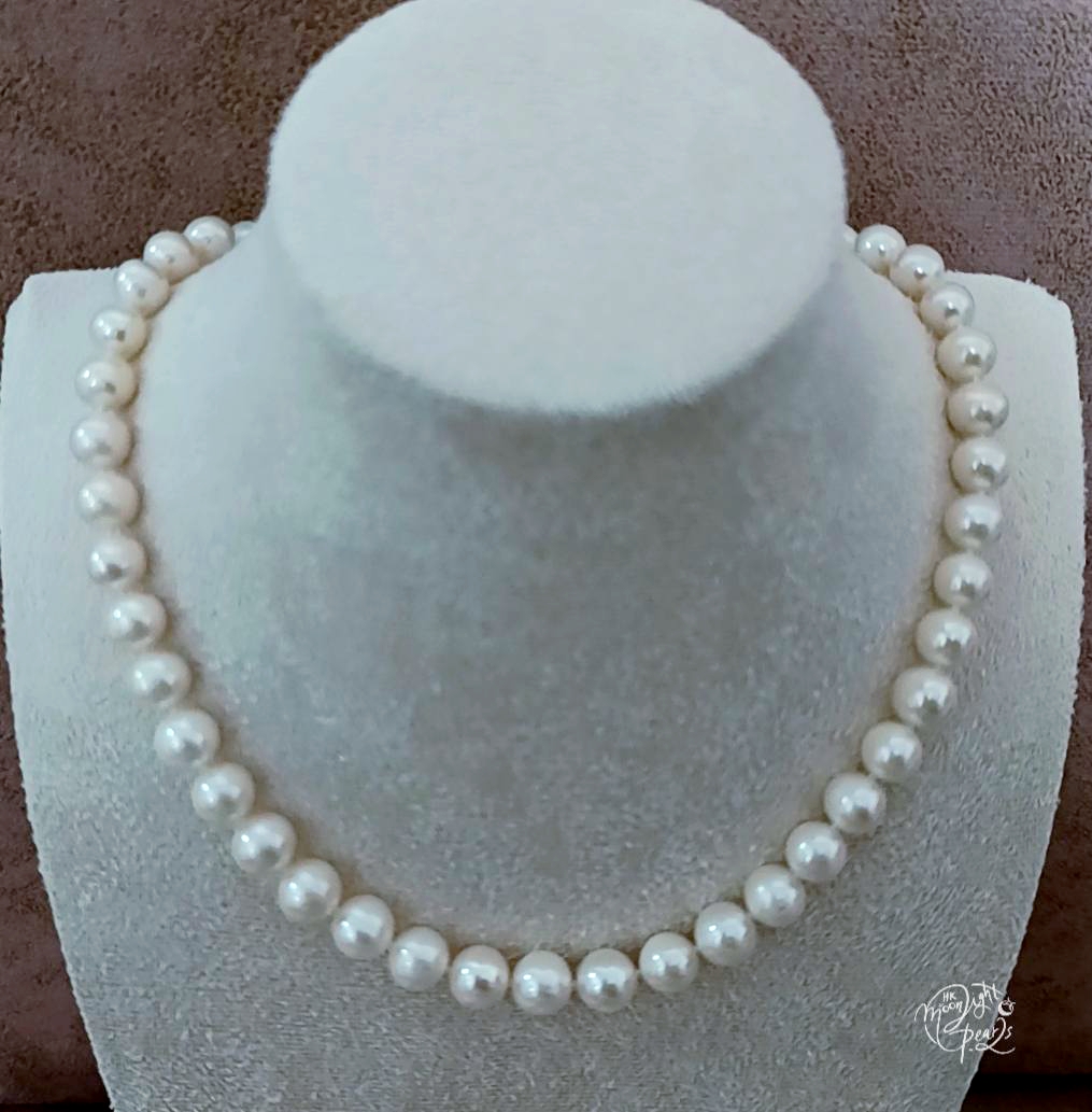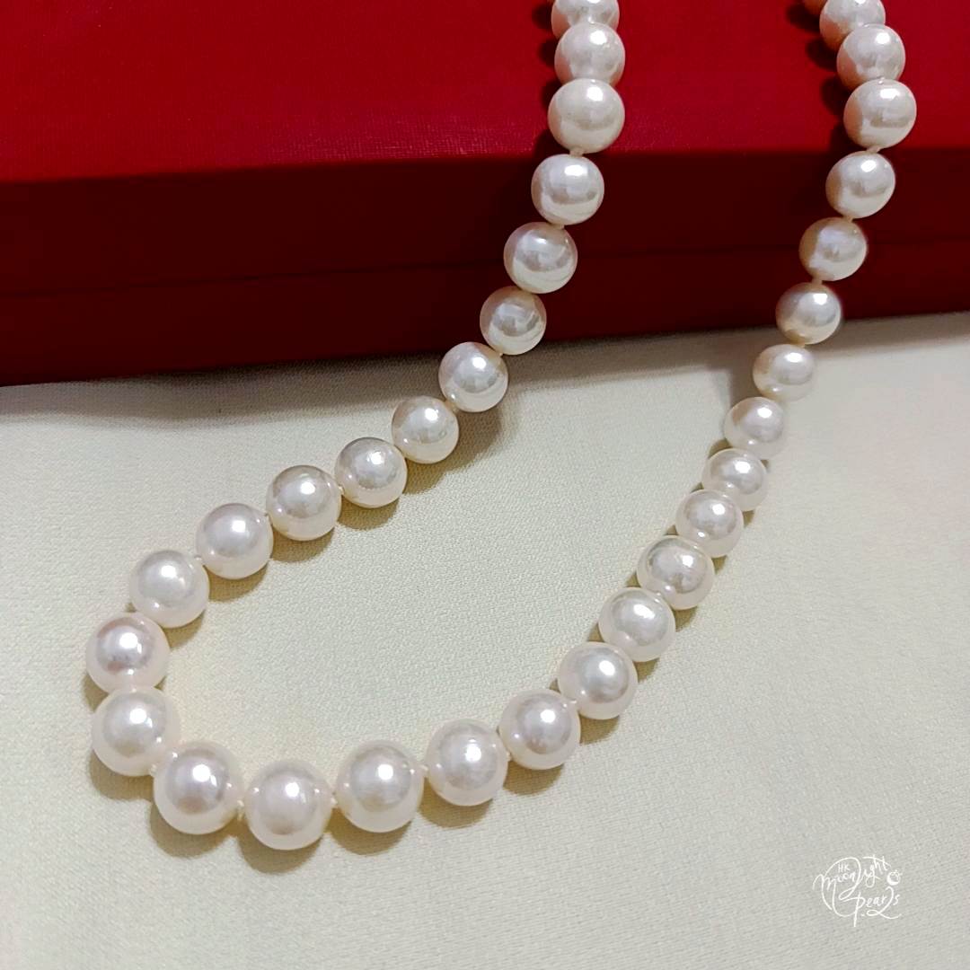 珍珠尺寸8-9mm 項鍊長度44cm 精品淡水近正圓無核珍珠,超亮珠光,基本無瑕,配衫百搭,佩戴時尚氣質!