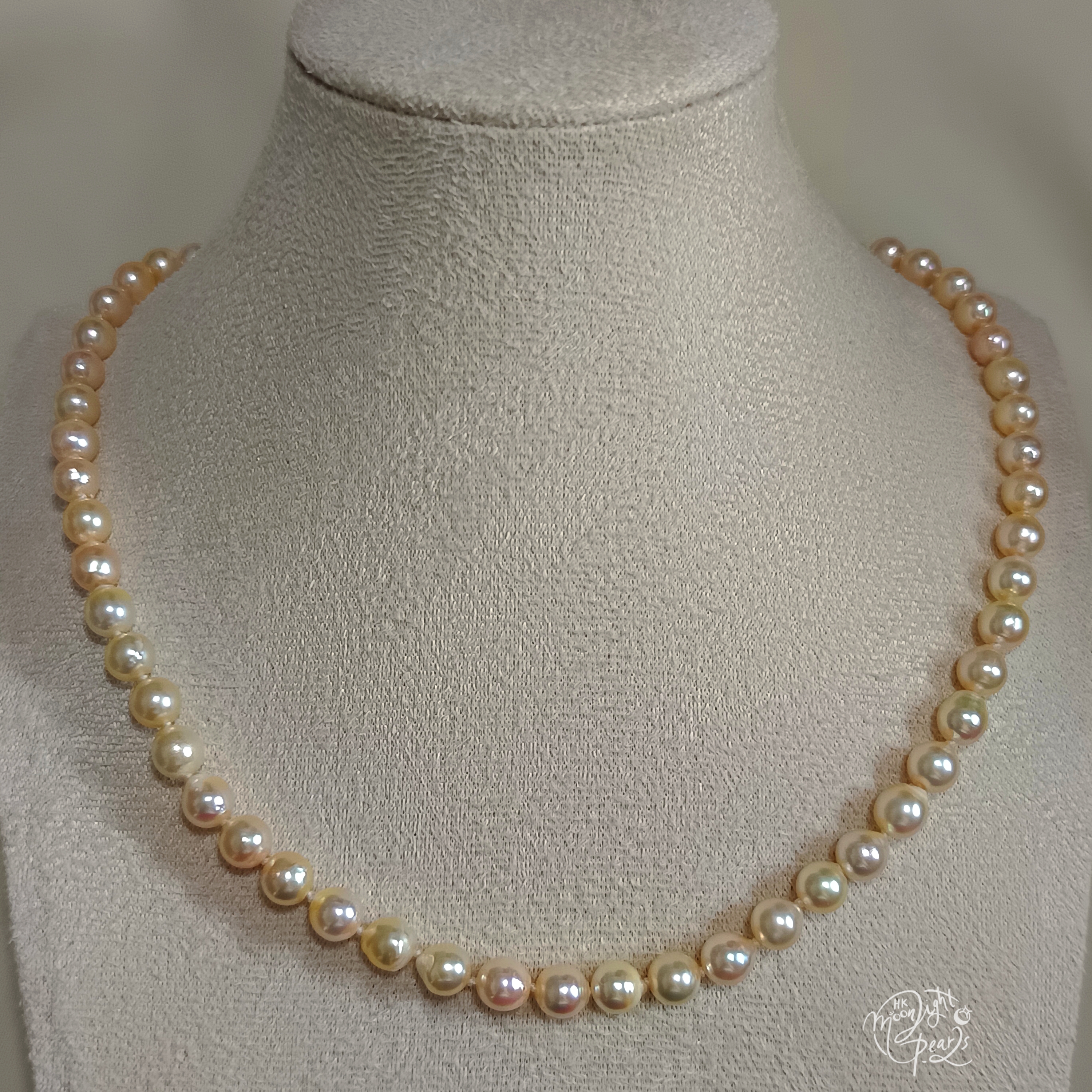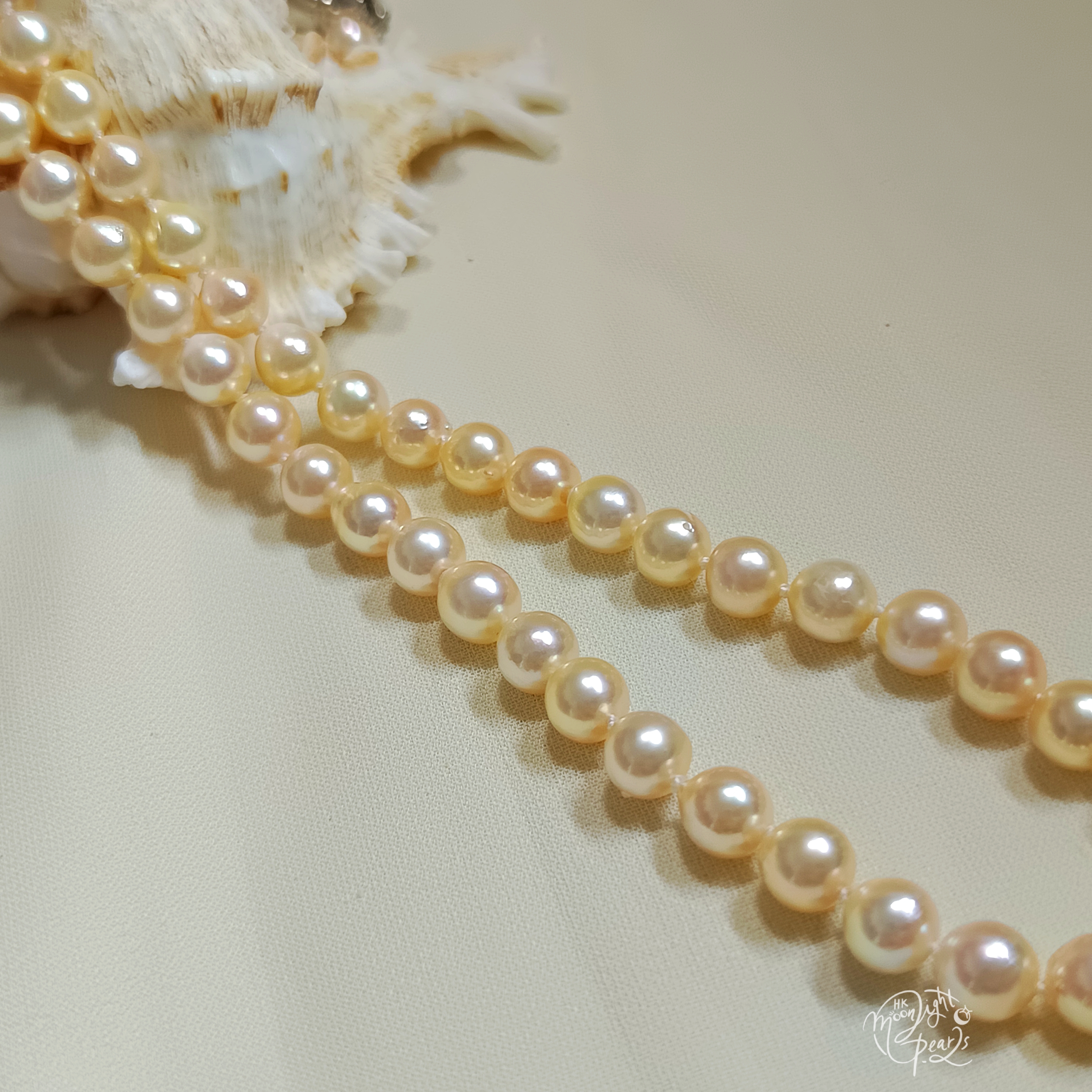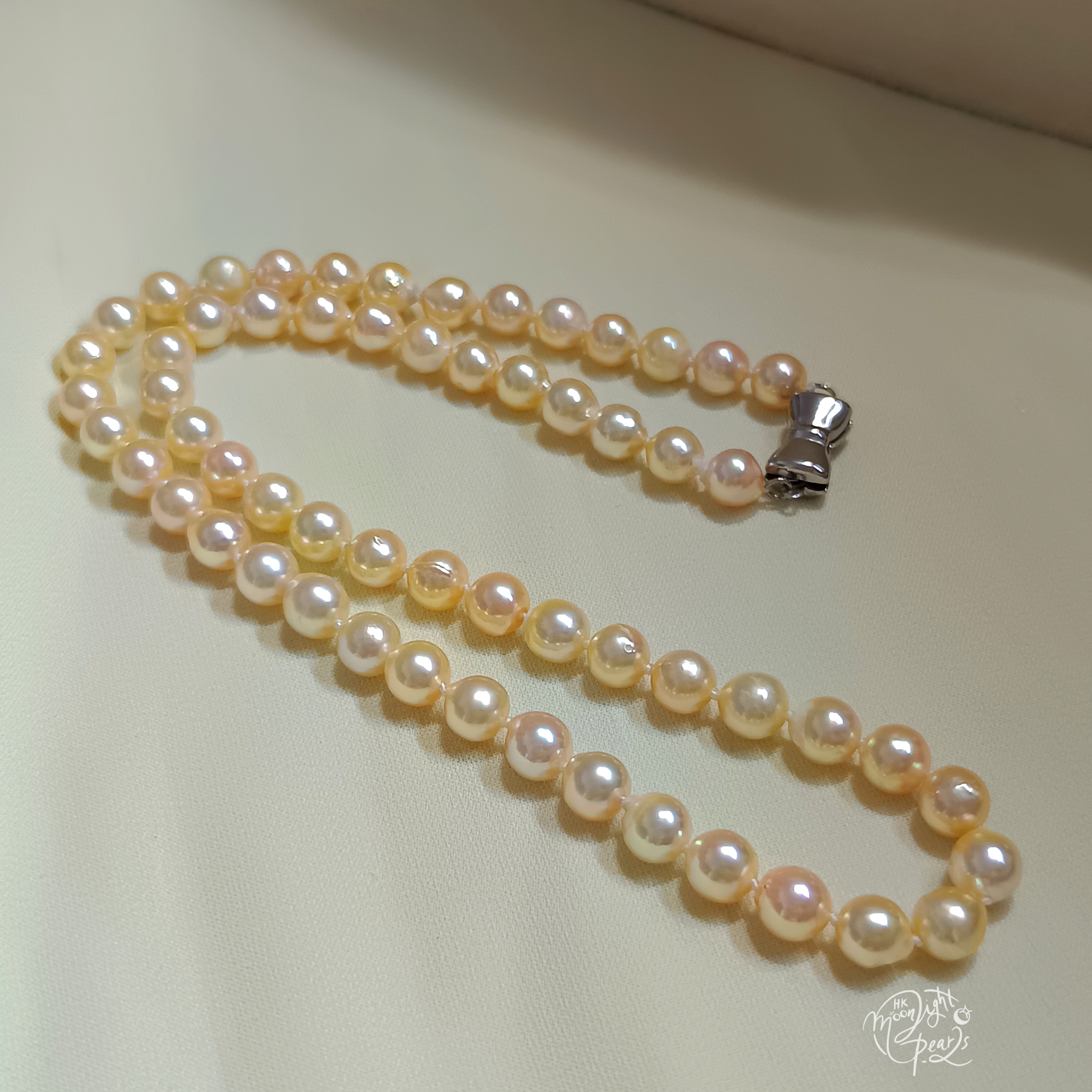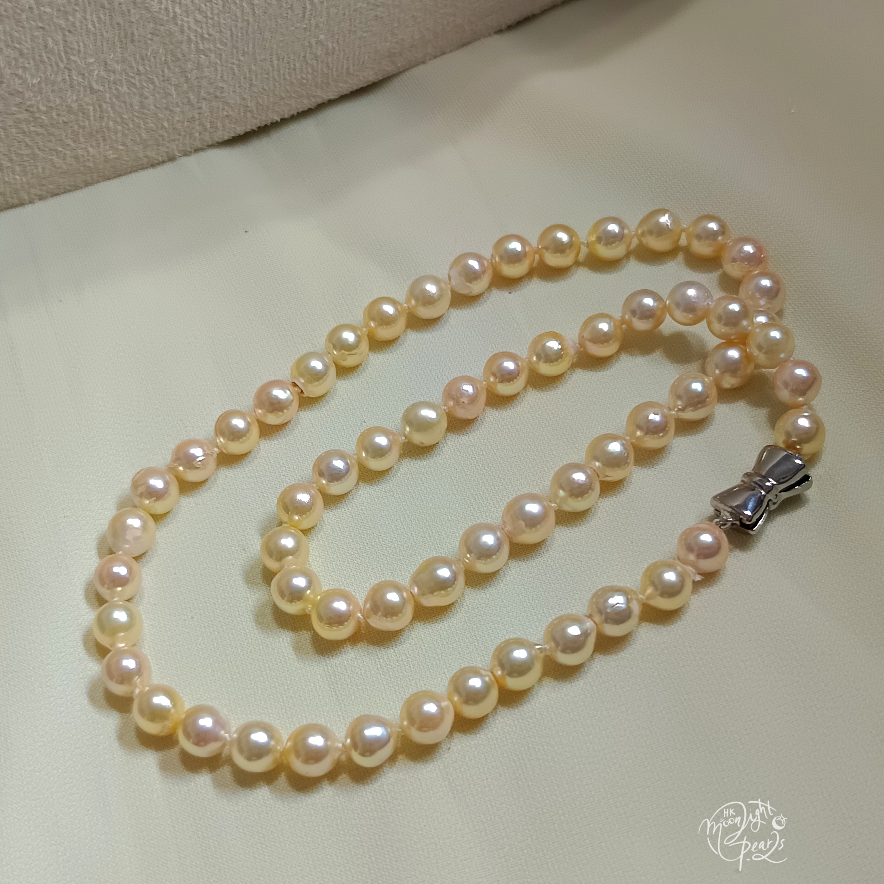 近正圓極光日本akoya金粉光海水珍珠日式不鏽鋼蝴蝶結扣項鍊