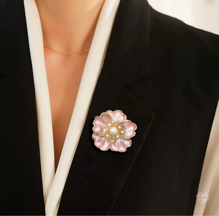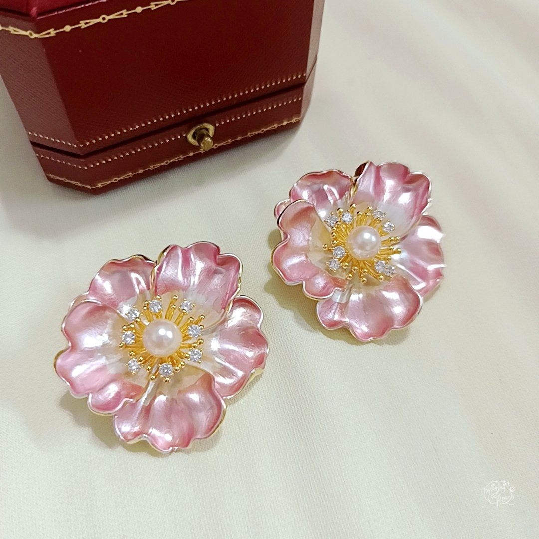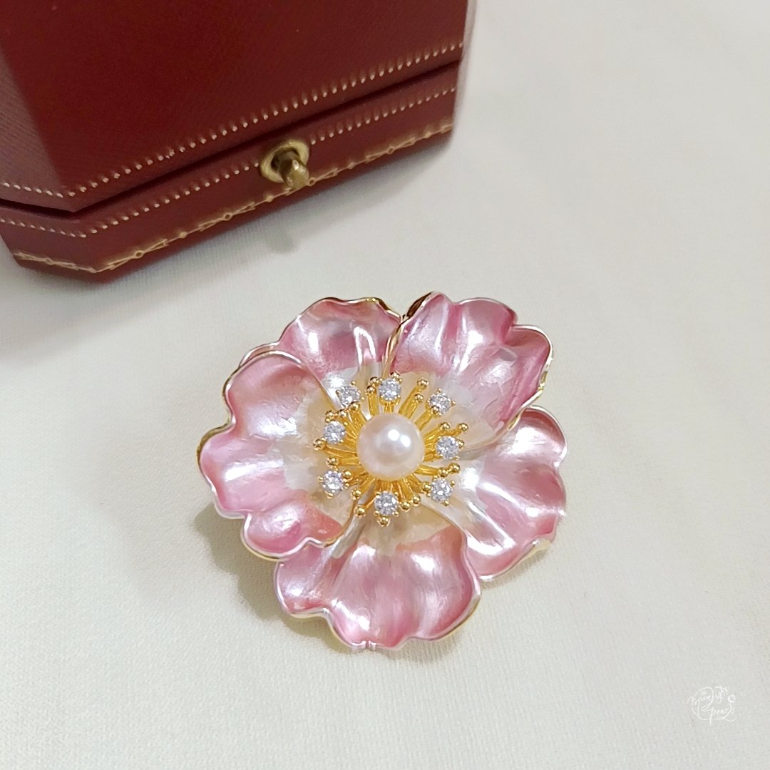近正圓極強光日本akoya櫻花粉色海水珍珠銅底厚鍍金氣質牡丹胸花