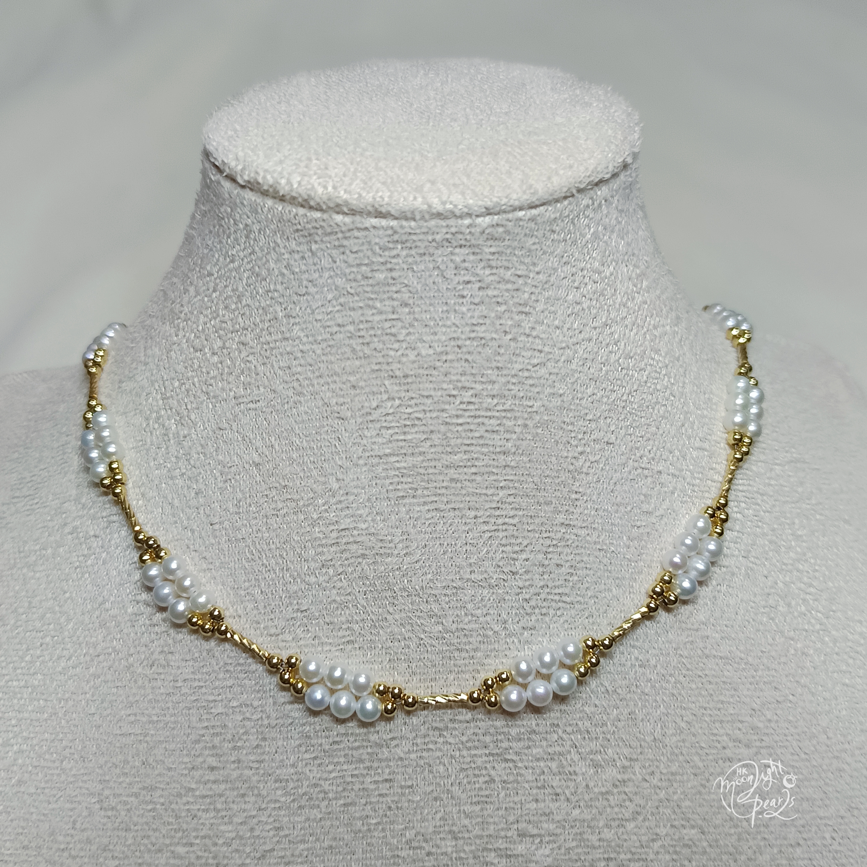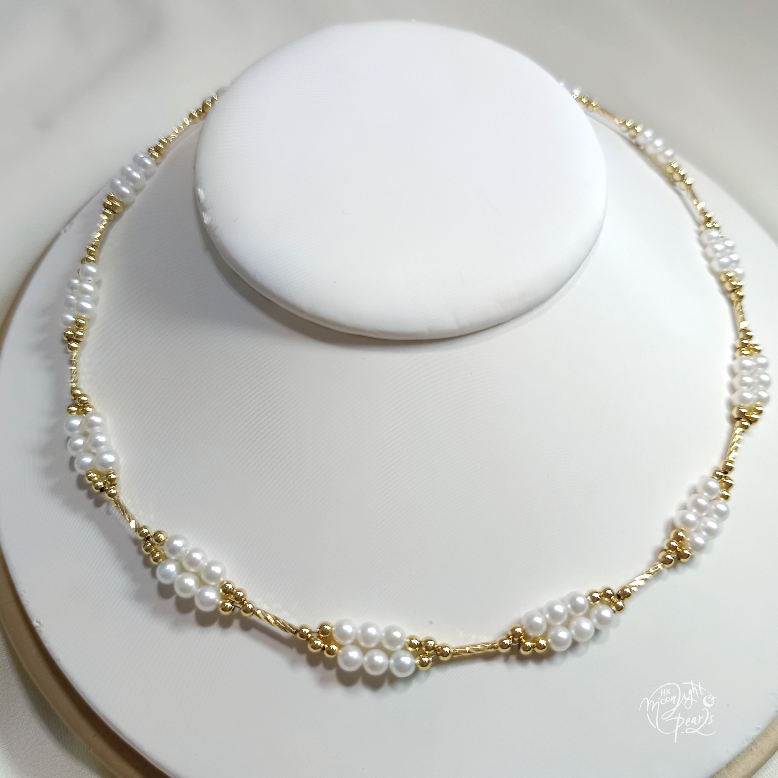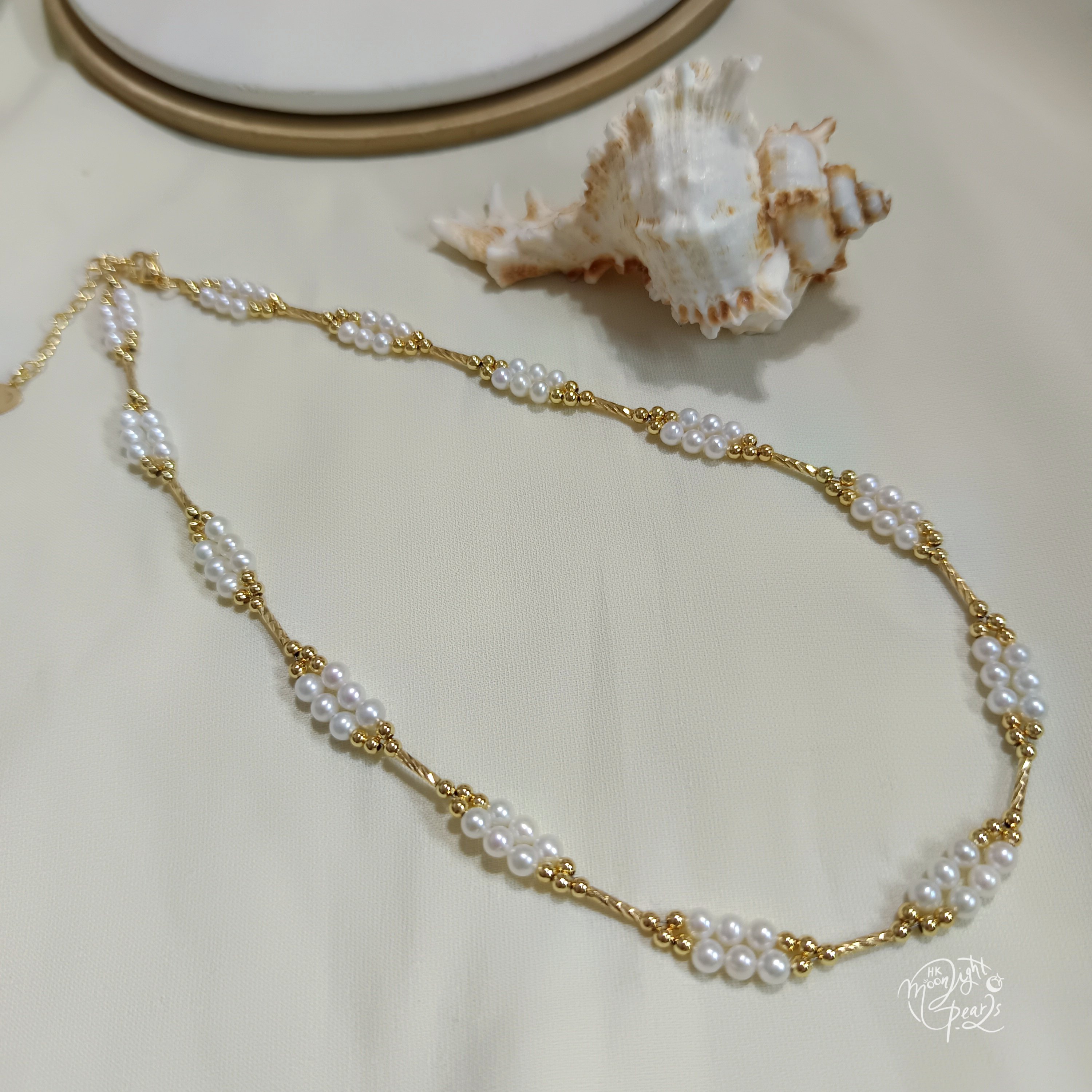近正圓極強光淡水AK白細胞珍珠注金愛心尾鍊扣日式編織鎖骨鍊
