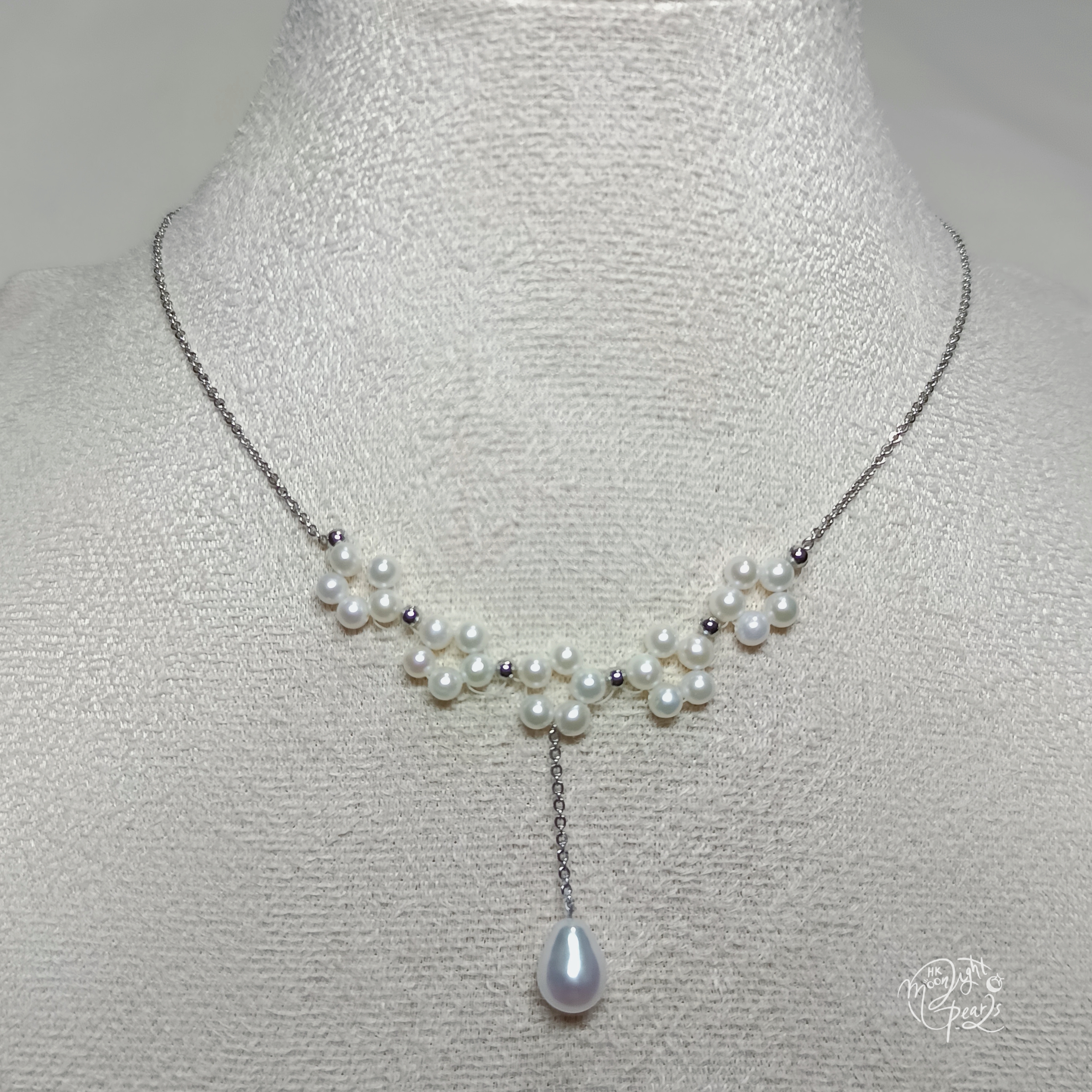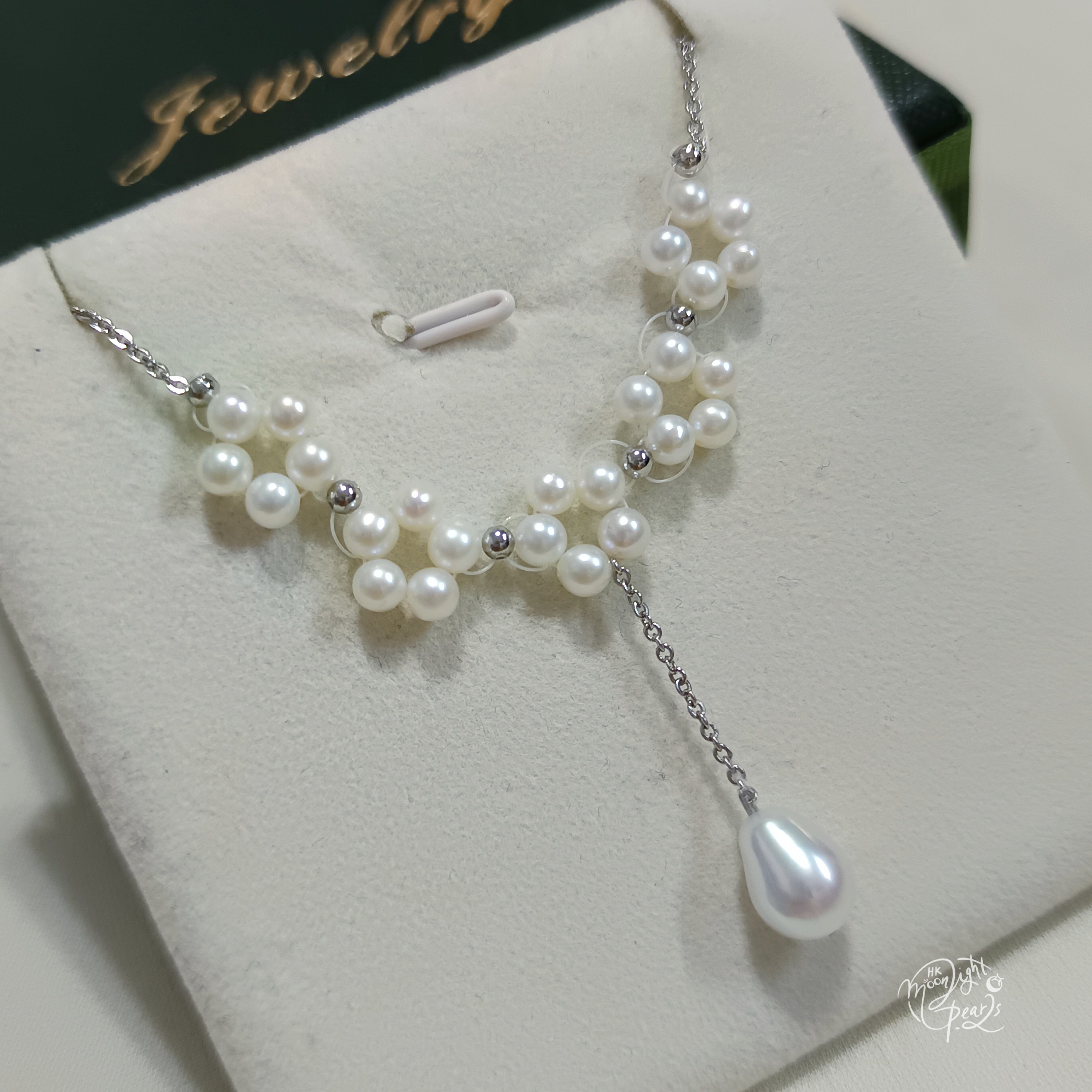小花珍珠尺寸3-4mm 吊墜珍珠7-8mm 項鍊長度40+5cm尾鍊 近正圓極強光淡水AK白細胞珍珠,皮滑透亮,基本無瑕,佩戴時尚甜美氣質