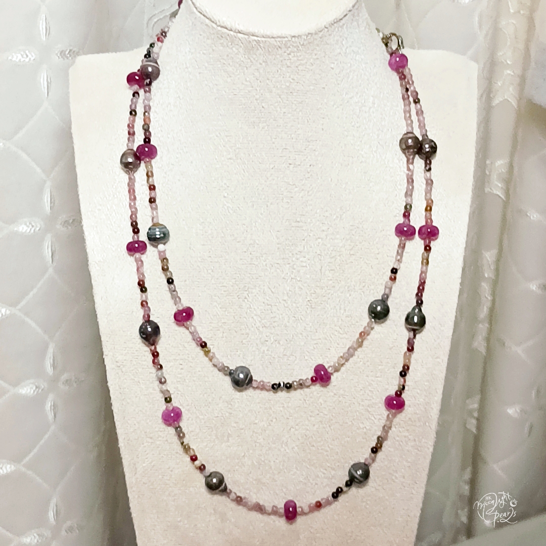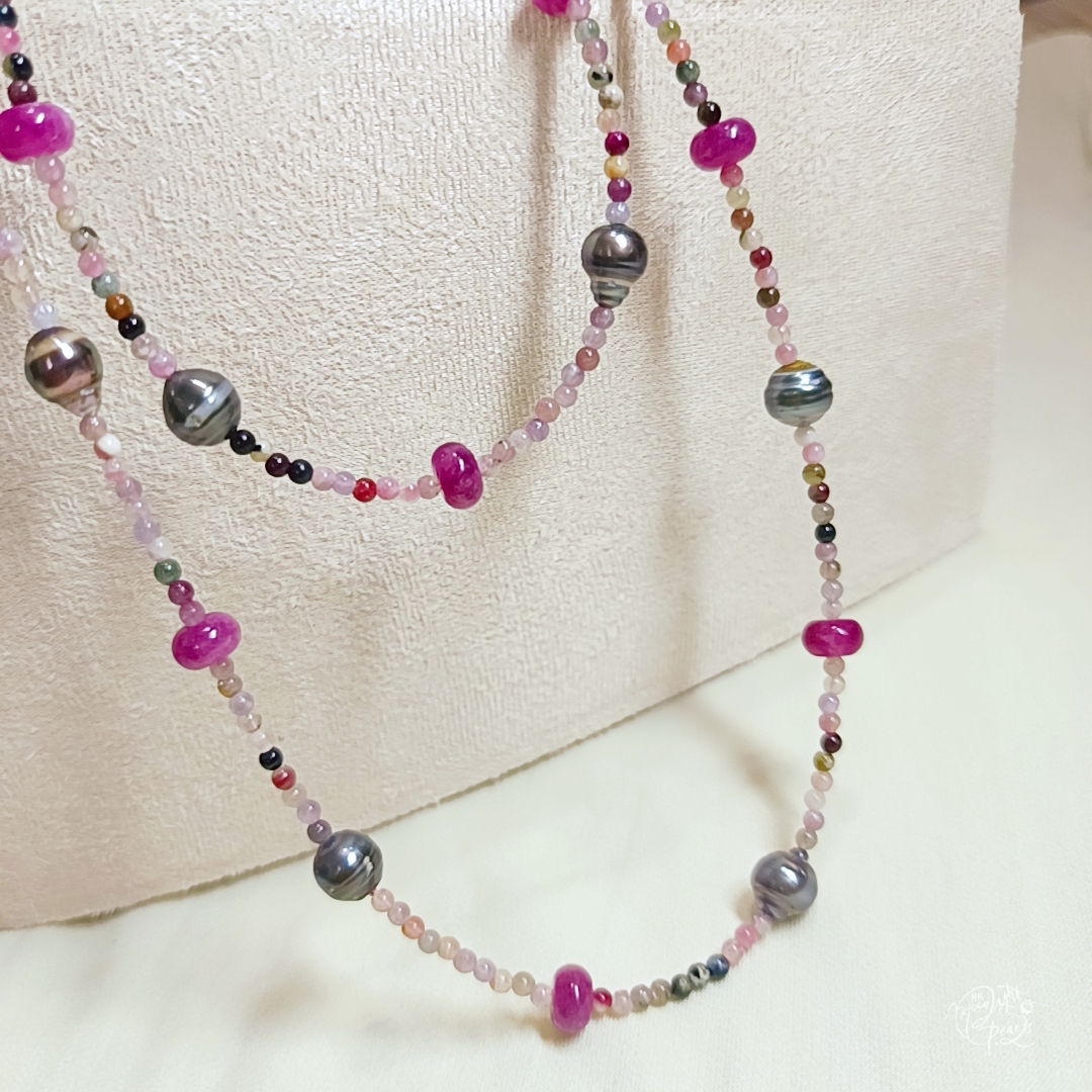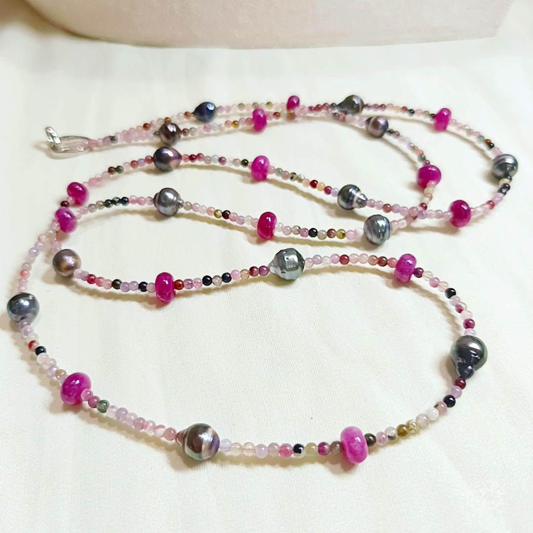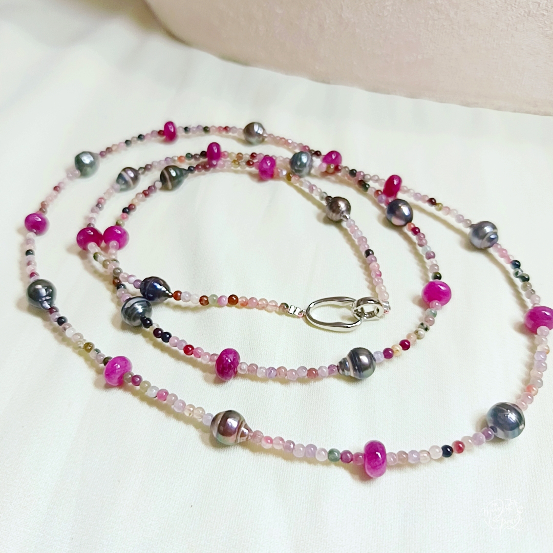 🇨🇳國慶特別款🇭🇰天然糖果色碧璽+大溪地巴洛克海水珍珠注白金扣毛衣鍊
