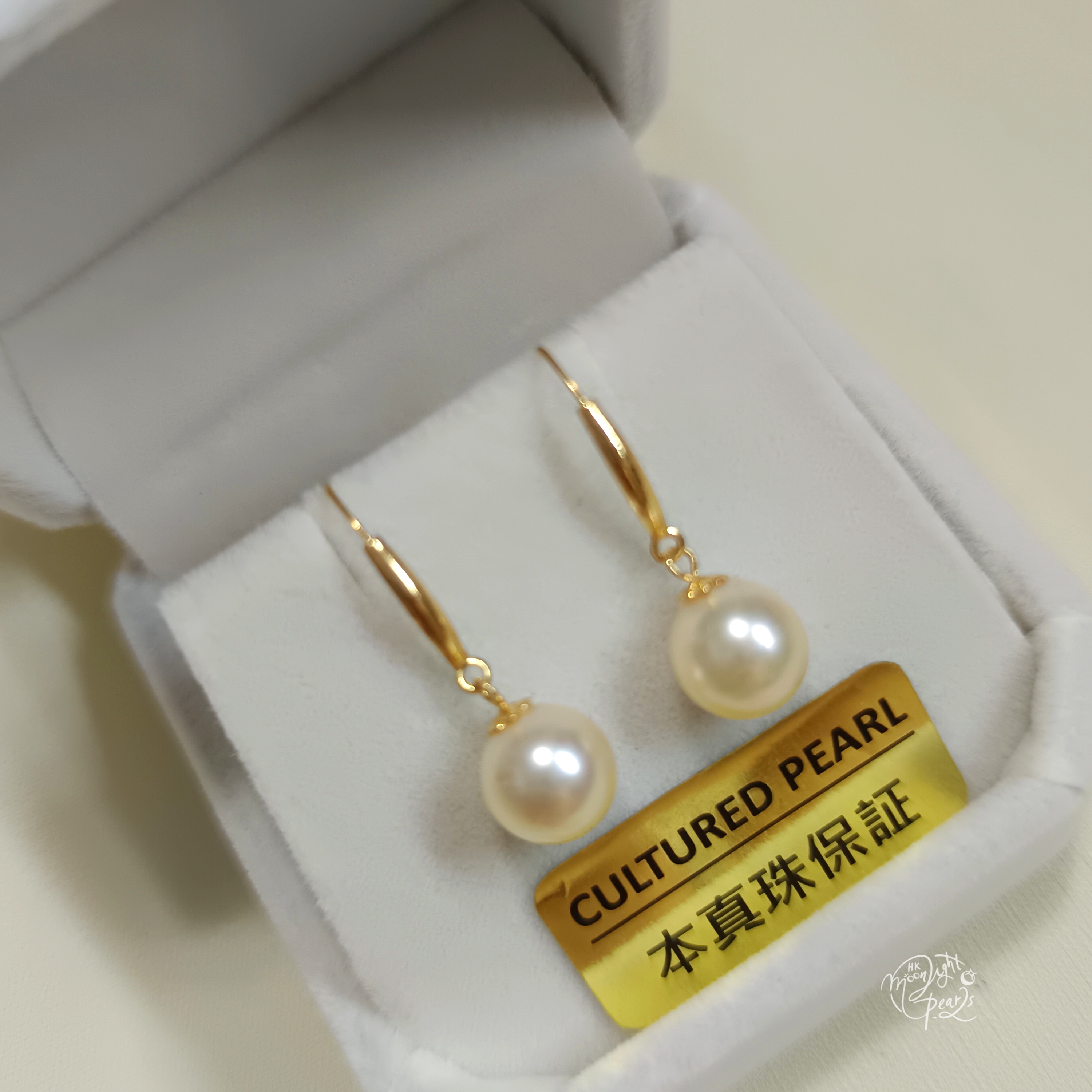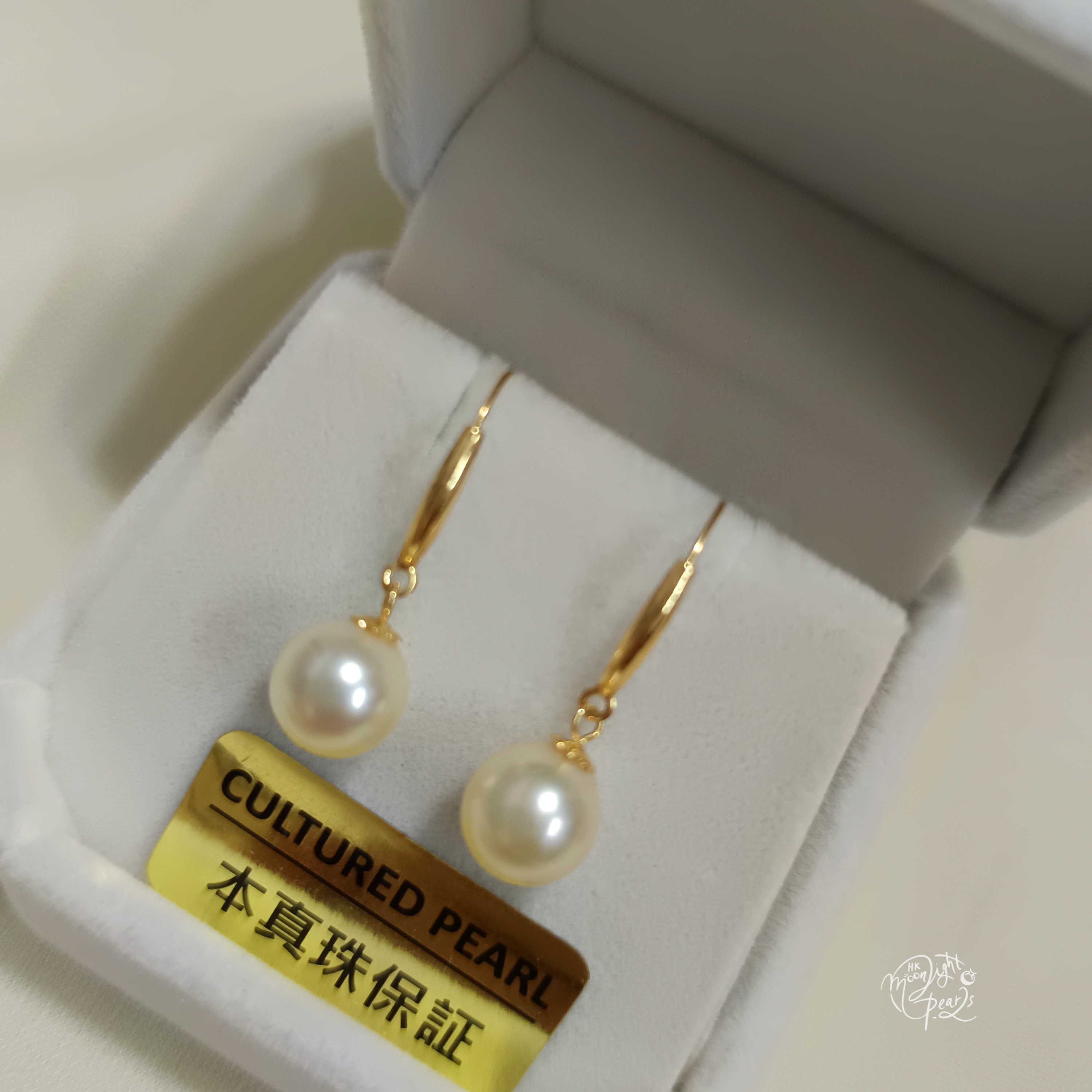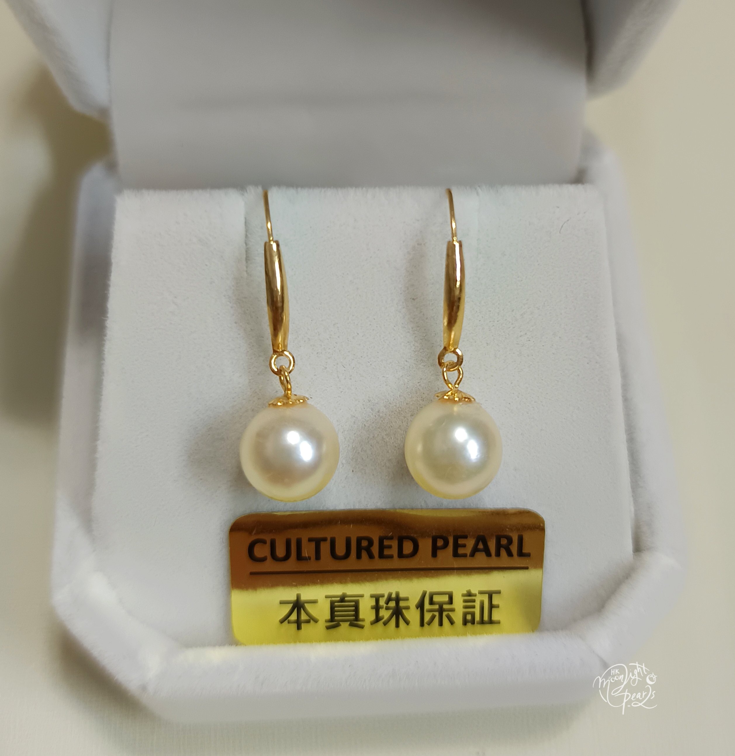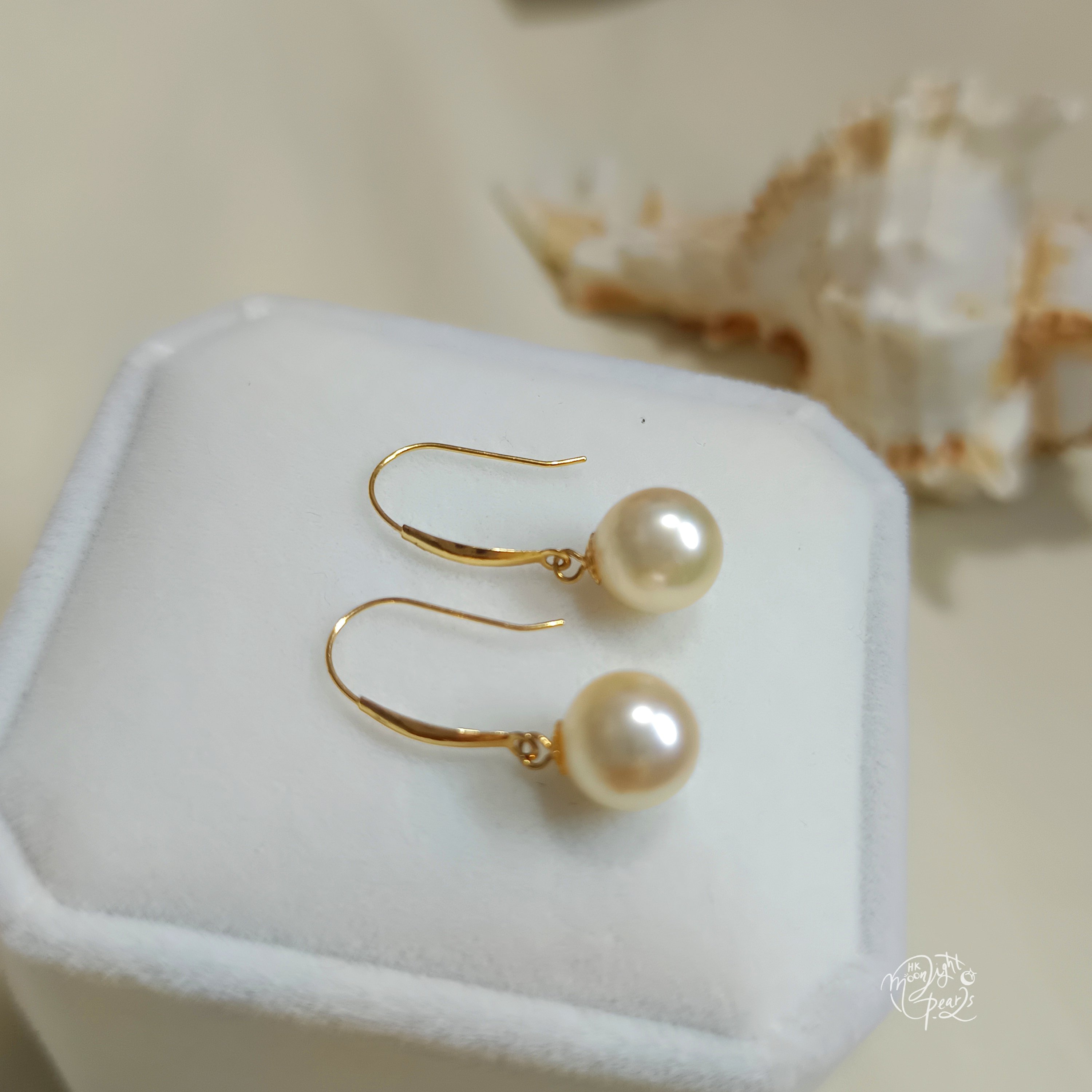 18金近正圓極光日本akoya 羽皇金海水珍珠耳勾
