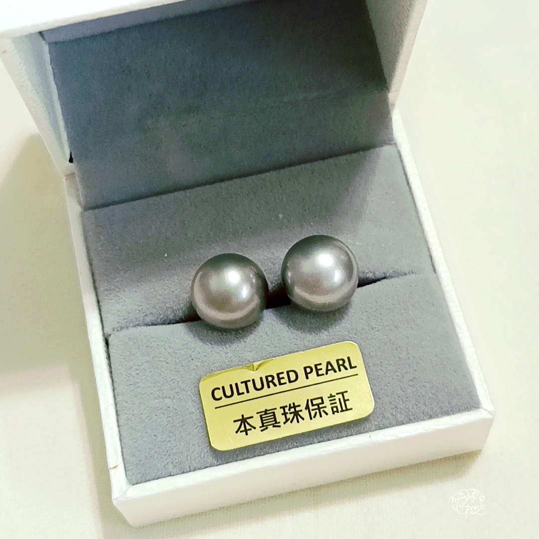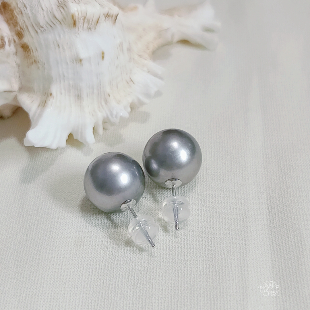 18k白金耳針正圓極強光大溪地鉑金灰海水珠耳釘