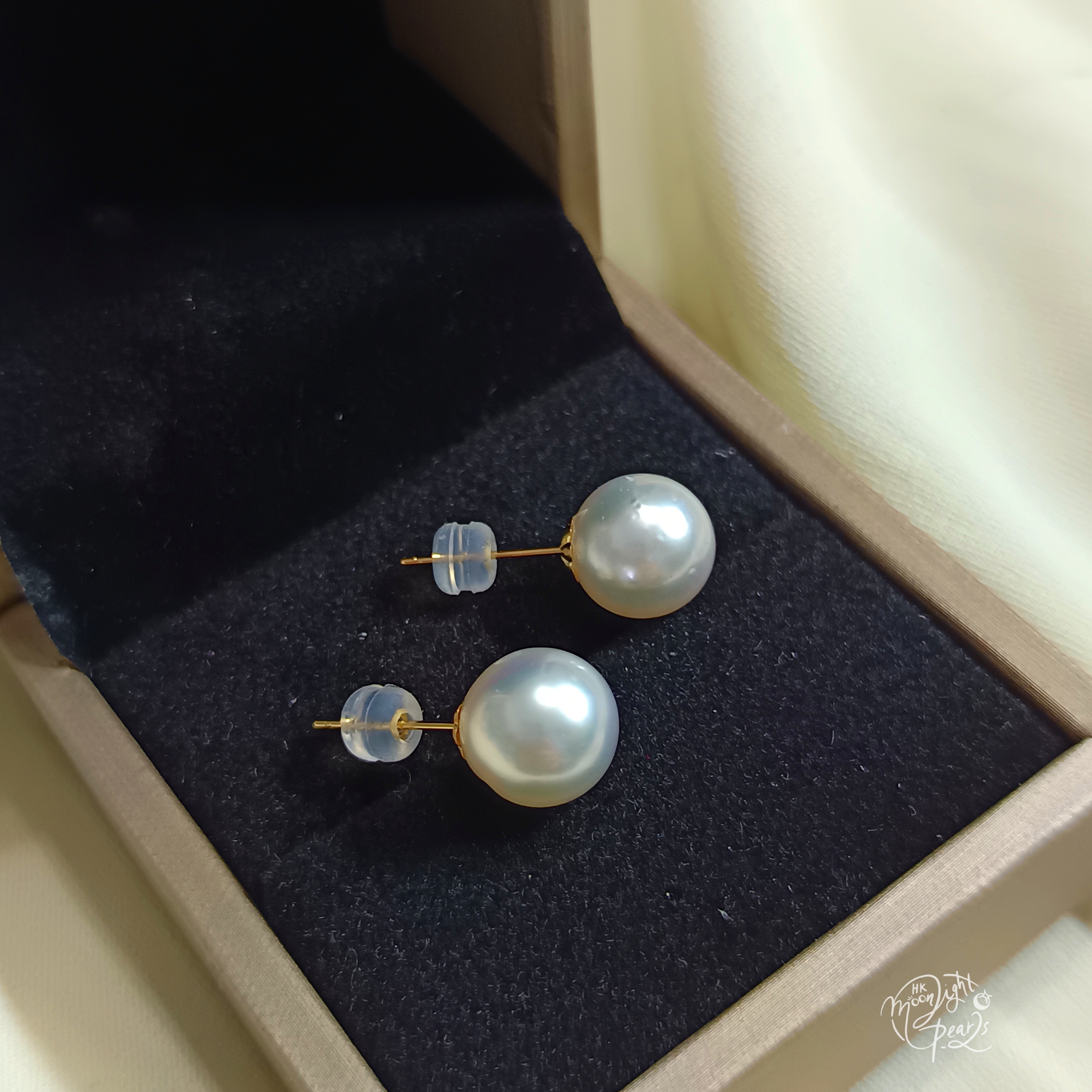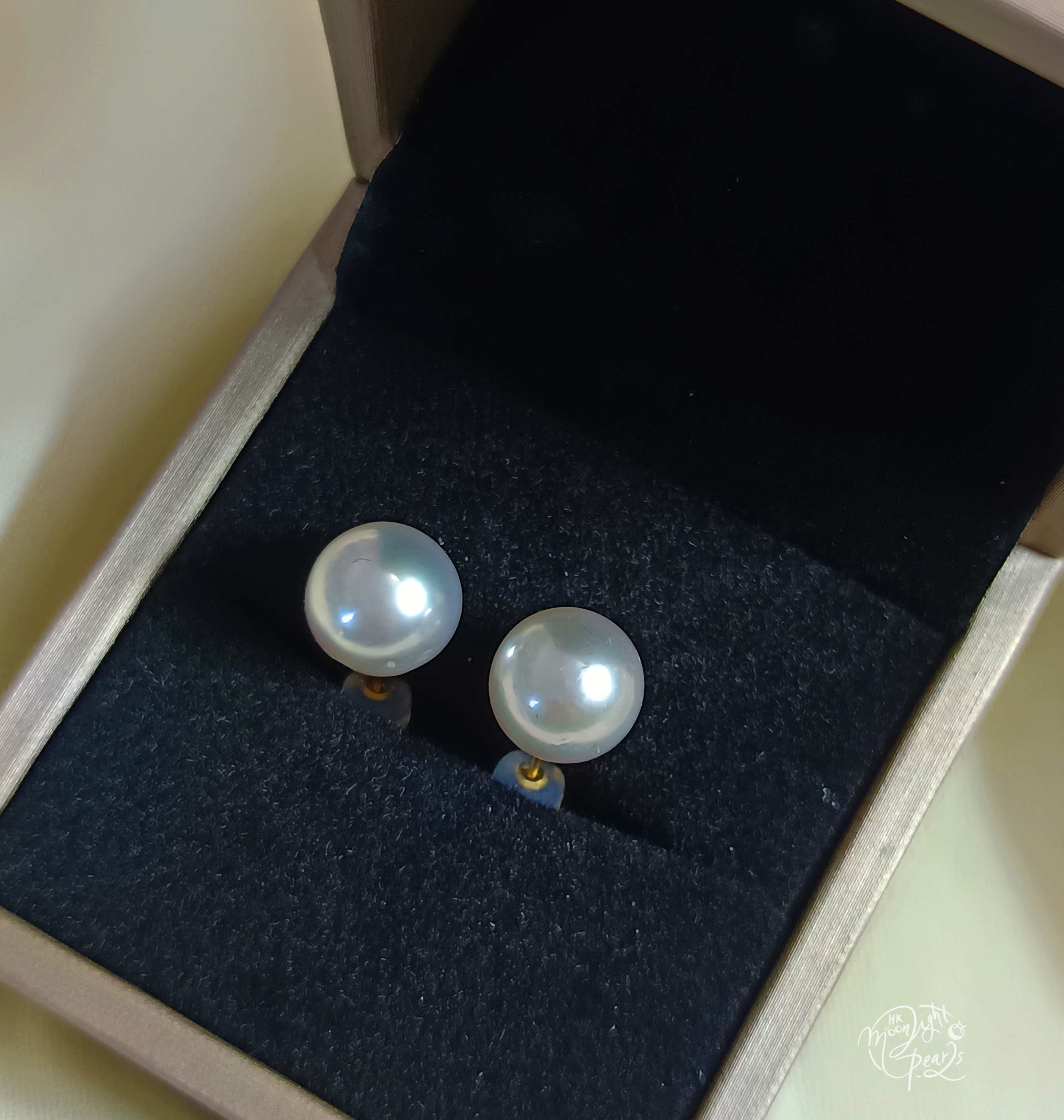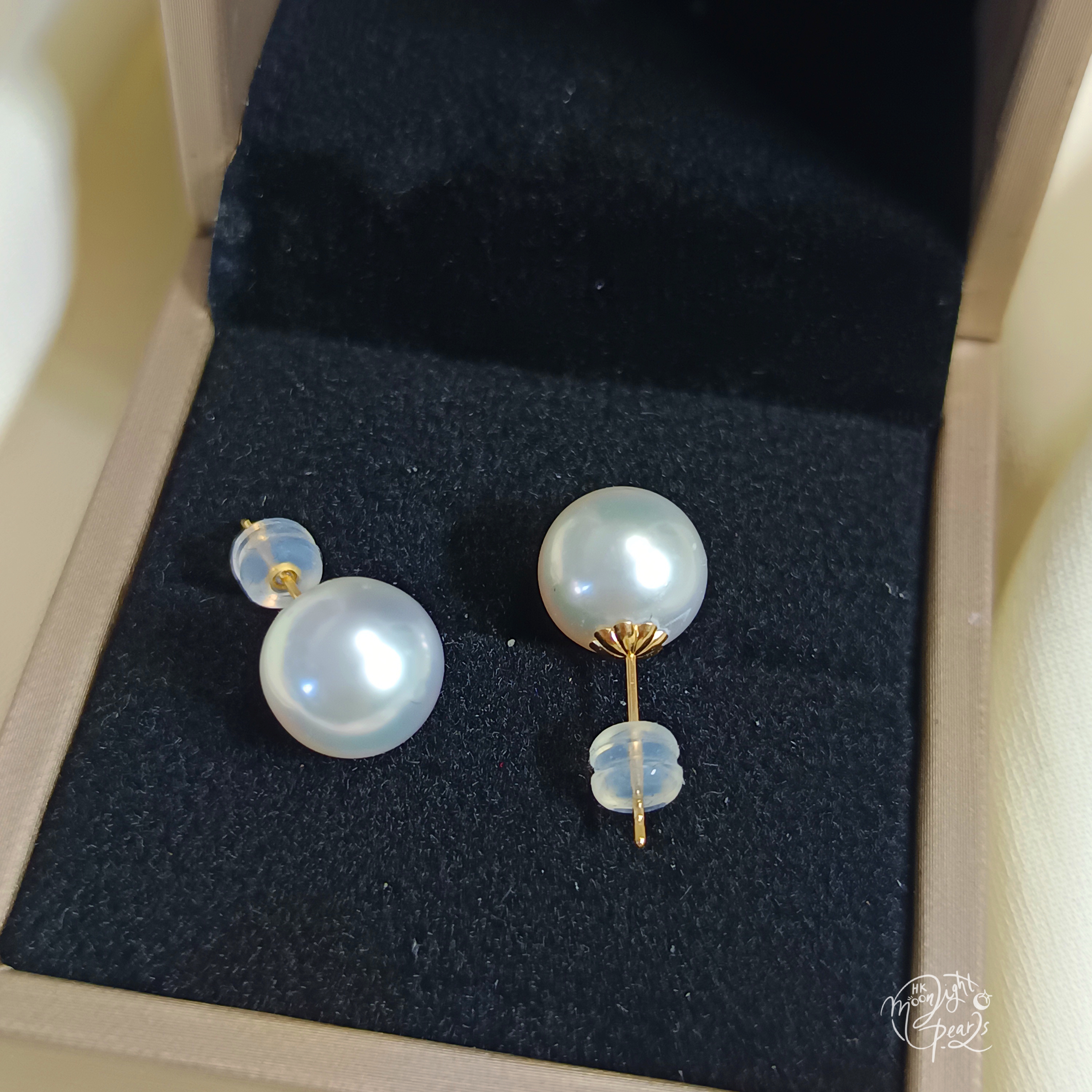 18k金耳針正圓極強光銀白冷光澳白海水珍珠耳釘(含圖片禮盒)