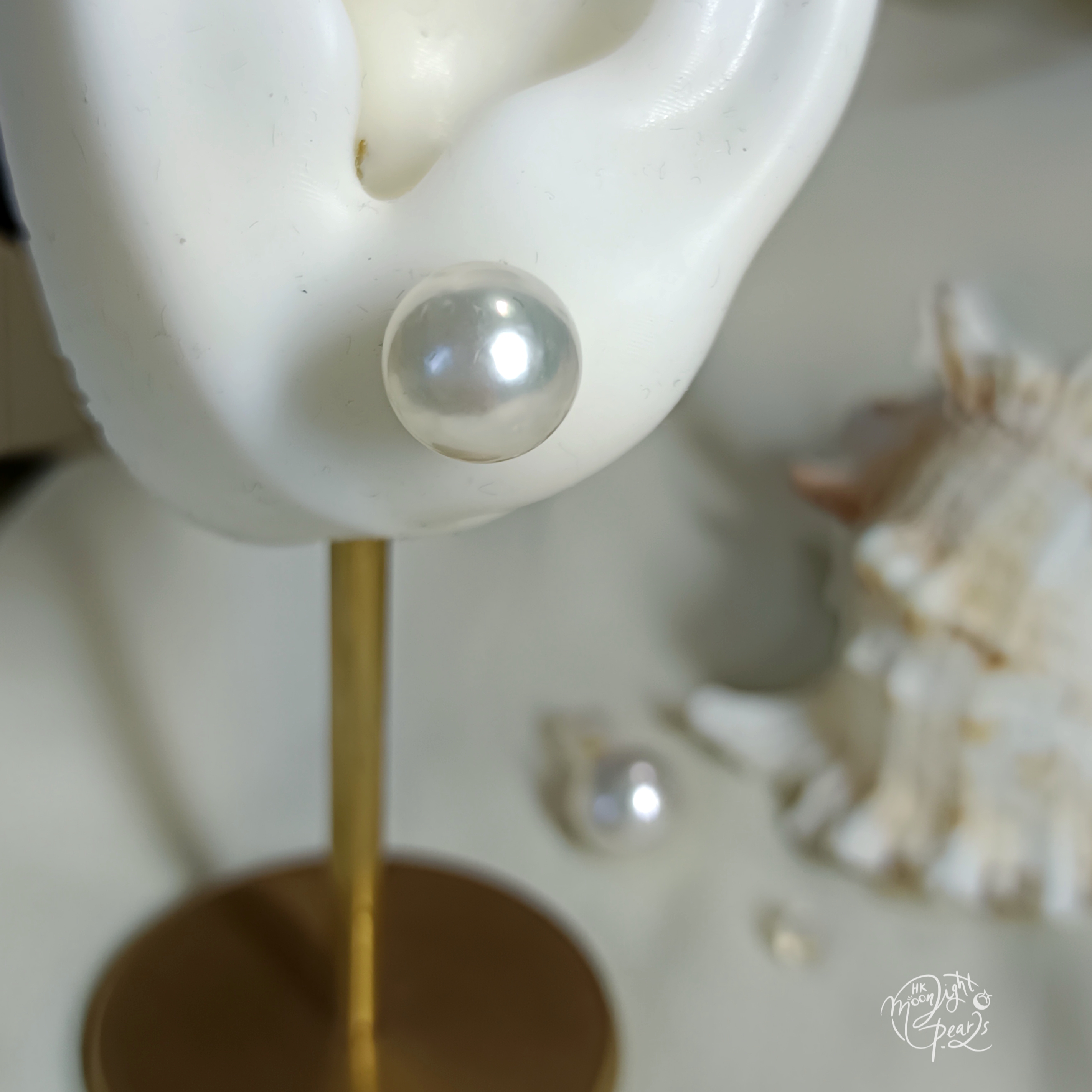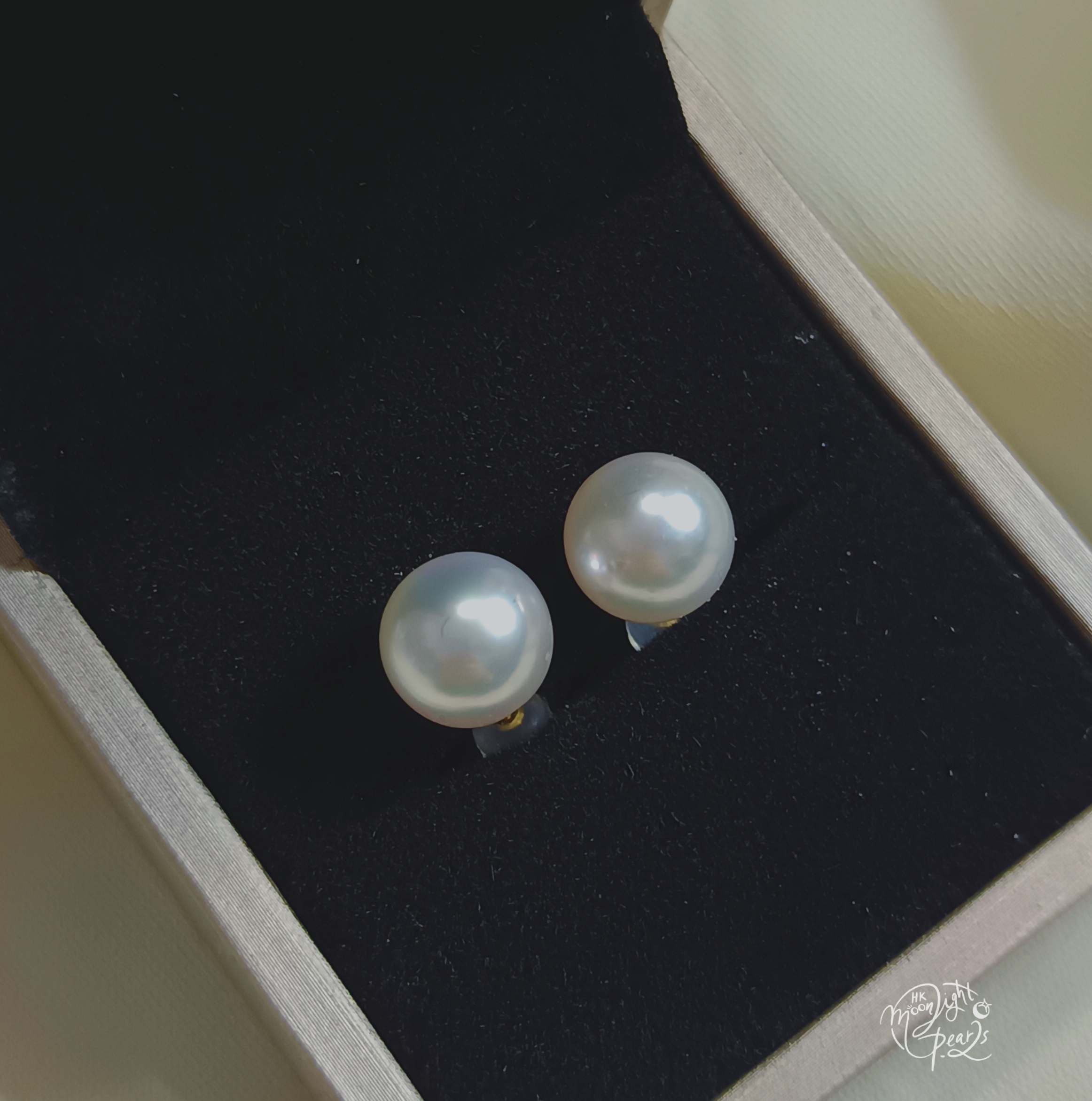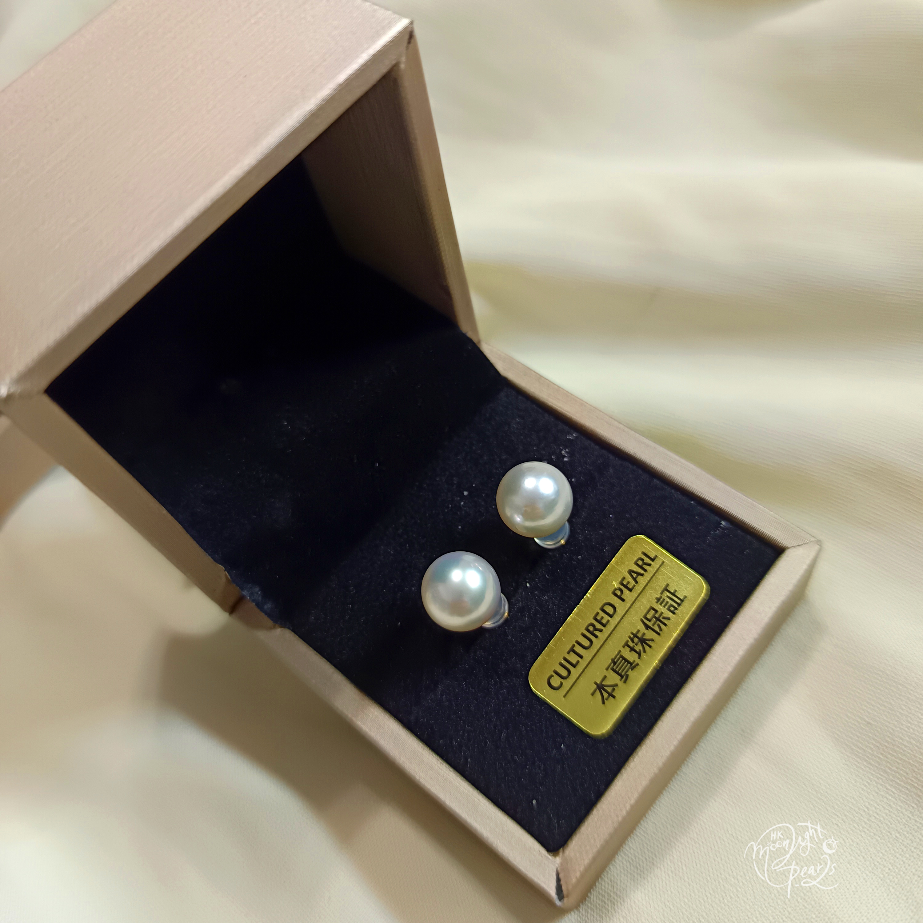 18k金耳針正圓極強光銀白冷光澳白海水珍珠耳釘(含圖片禮盒)