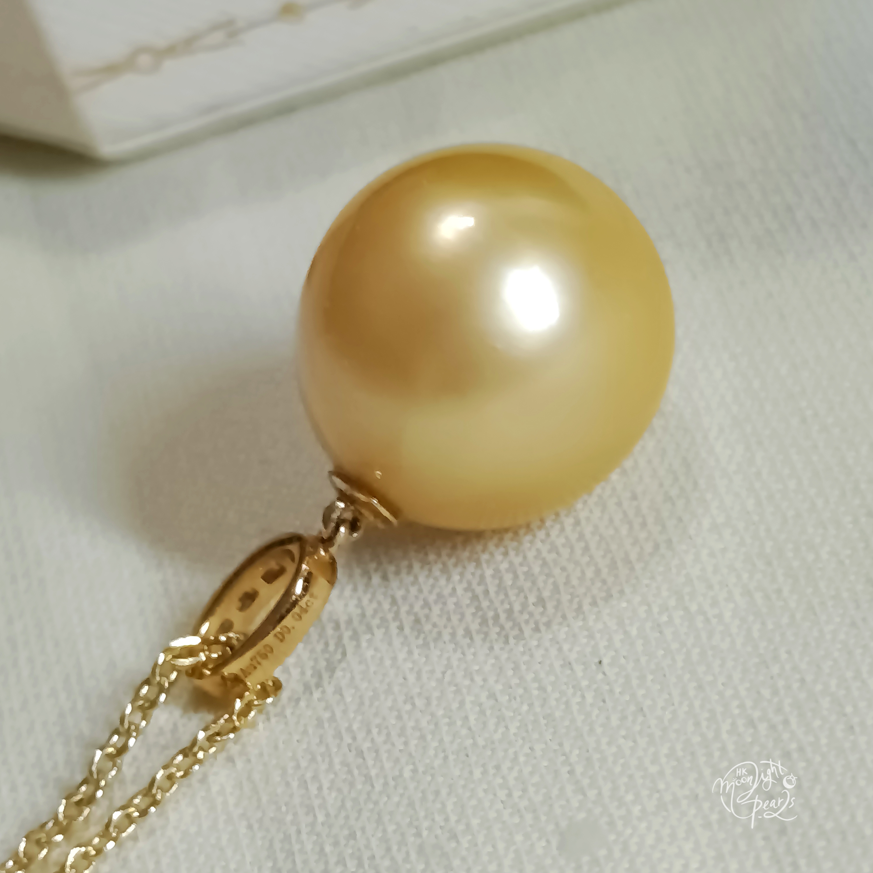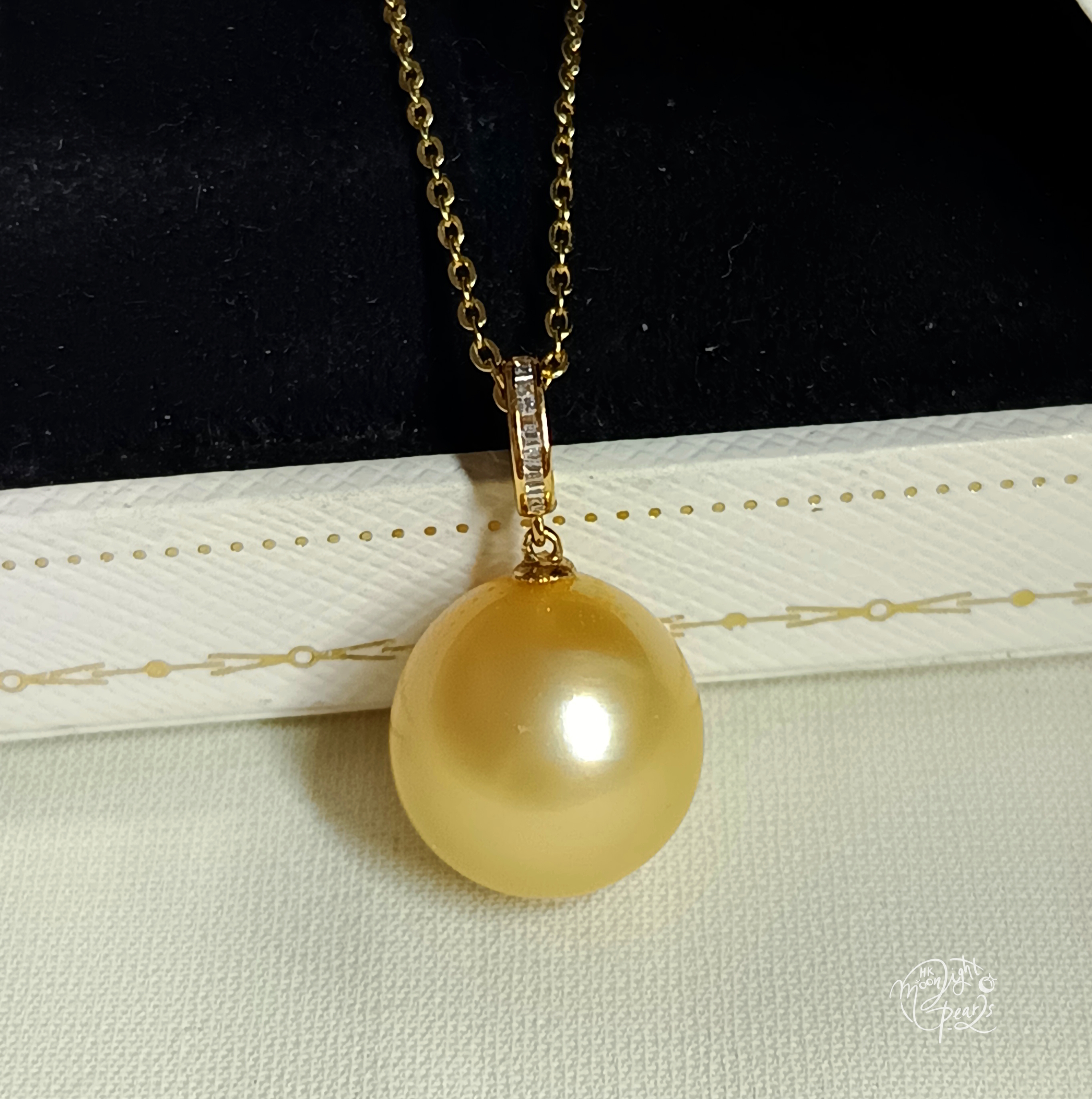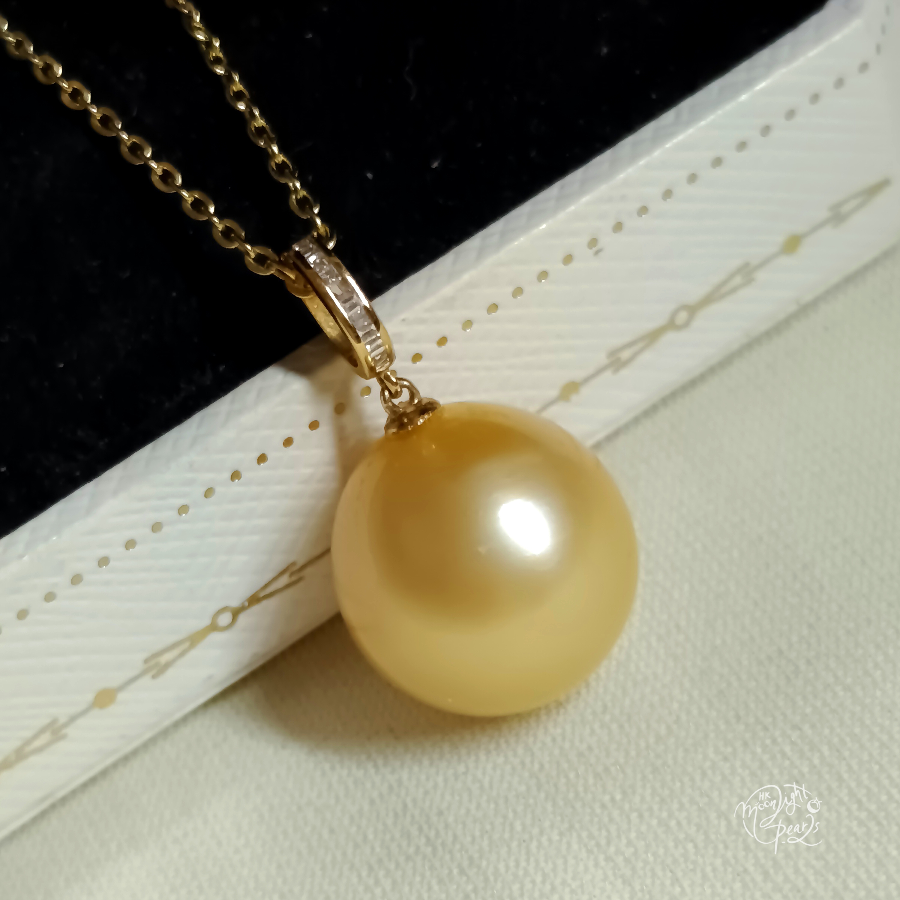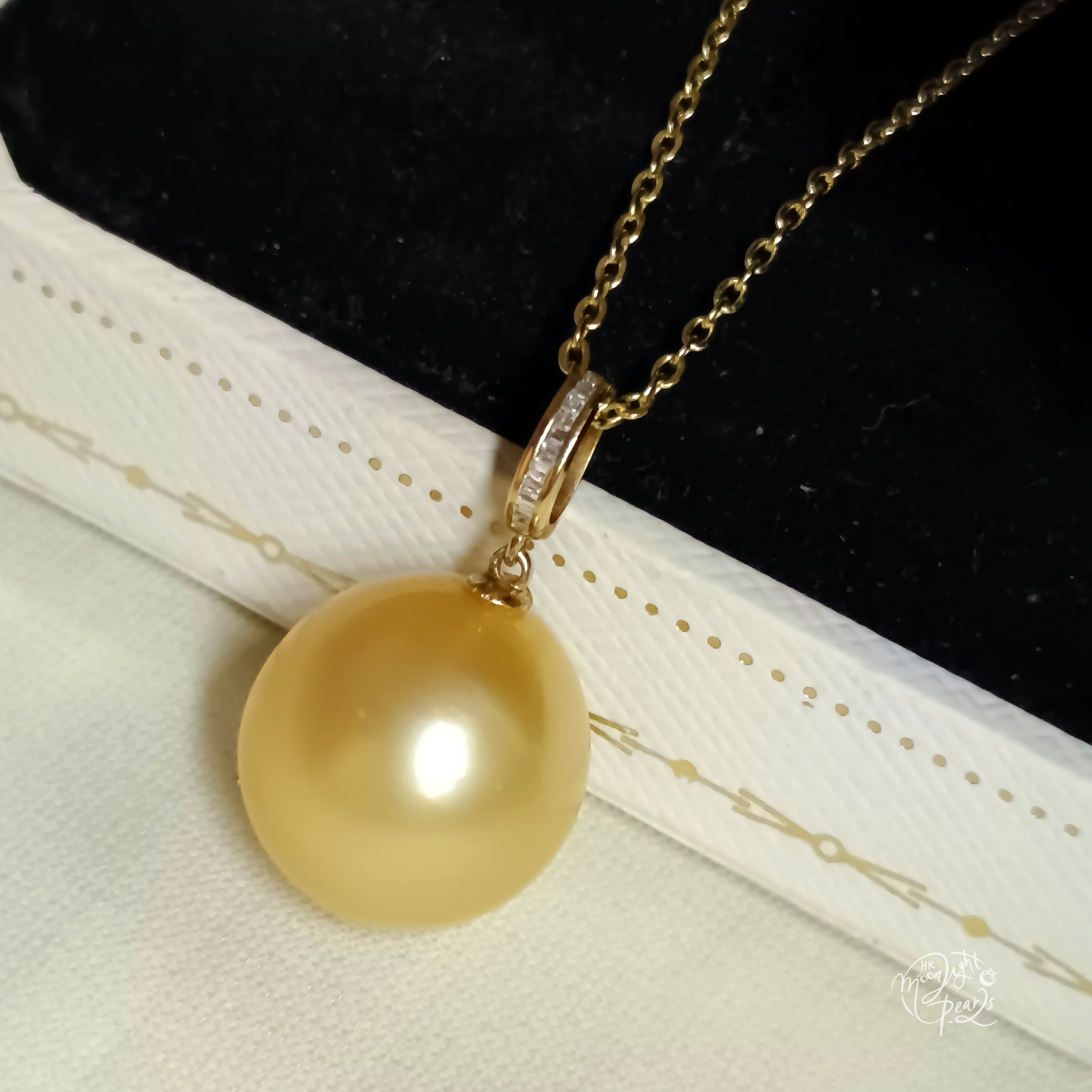 18k金鑽石近正圓極強光南洋濃金海水珍珠簡約吊墜(送注金鍊)